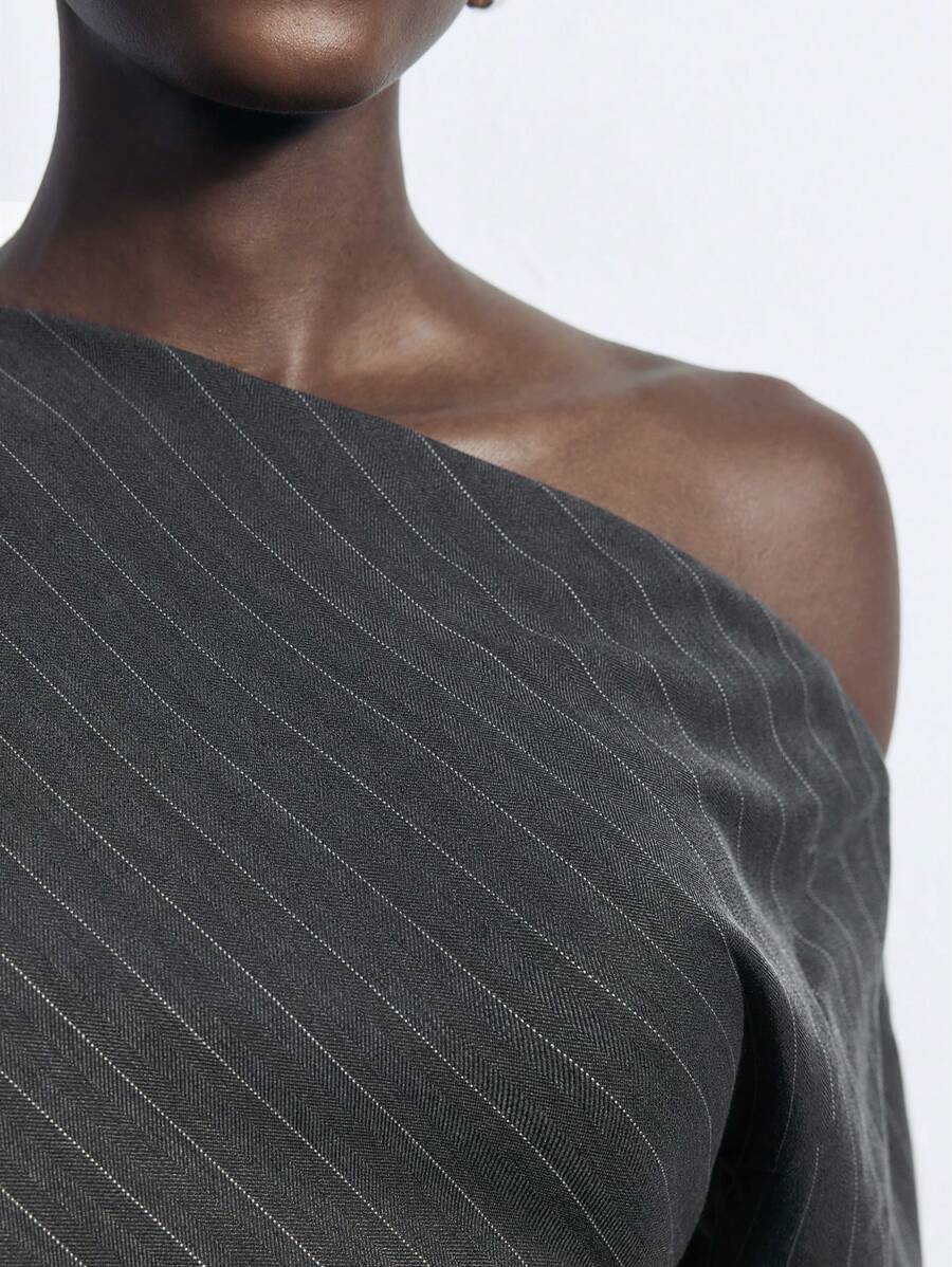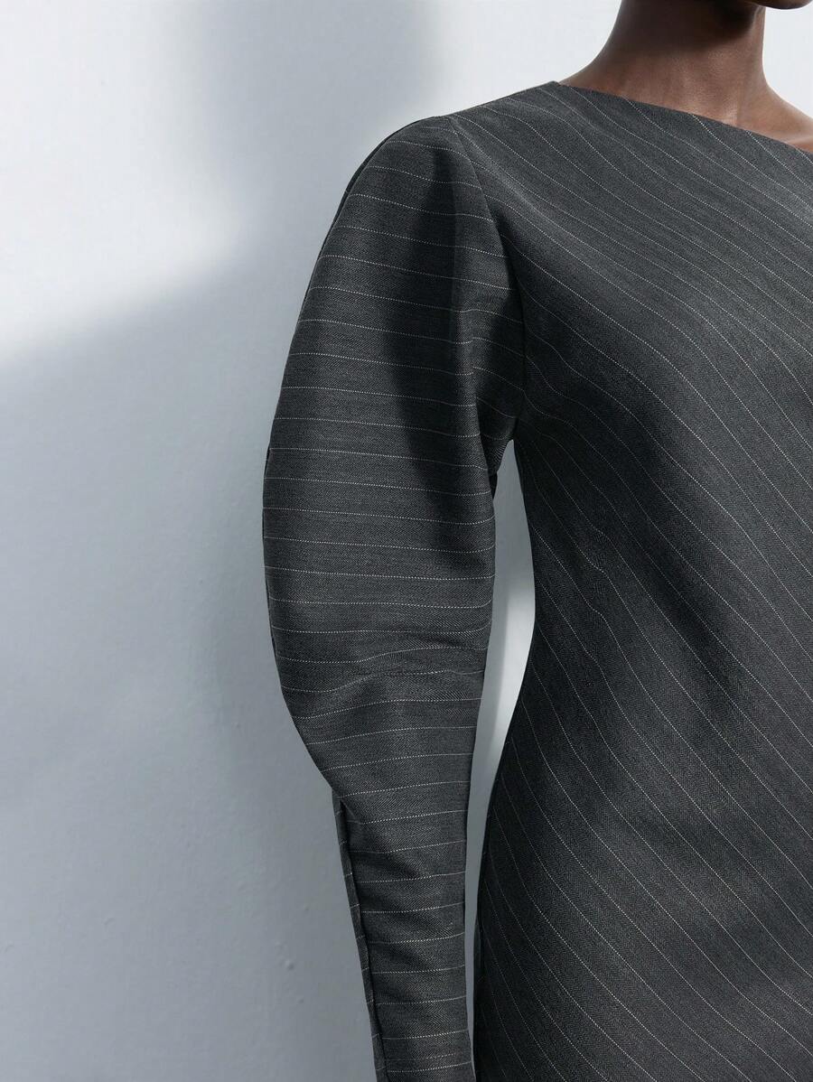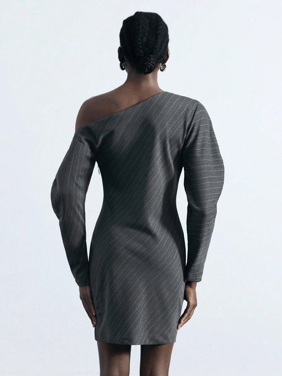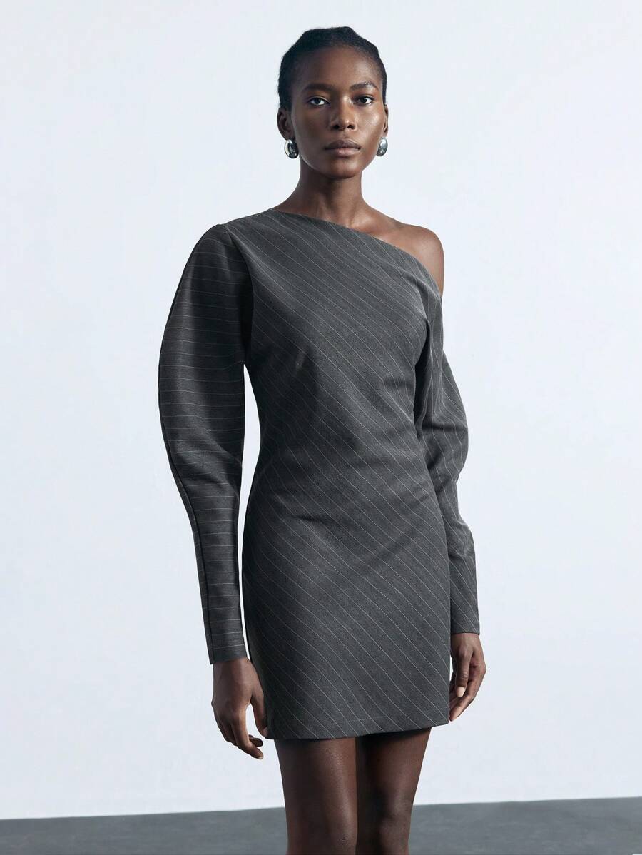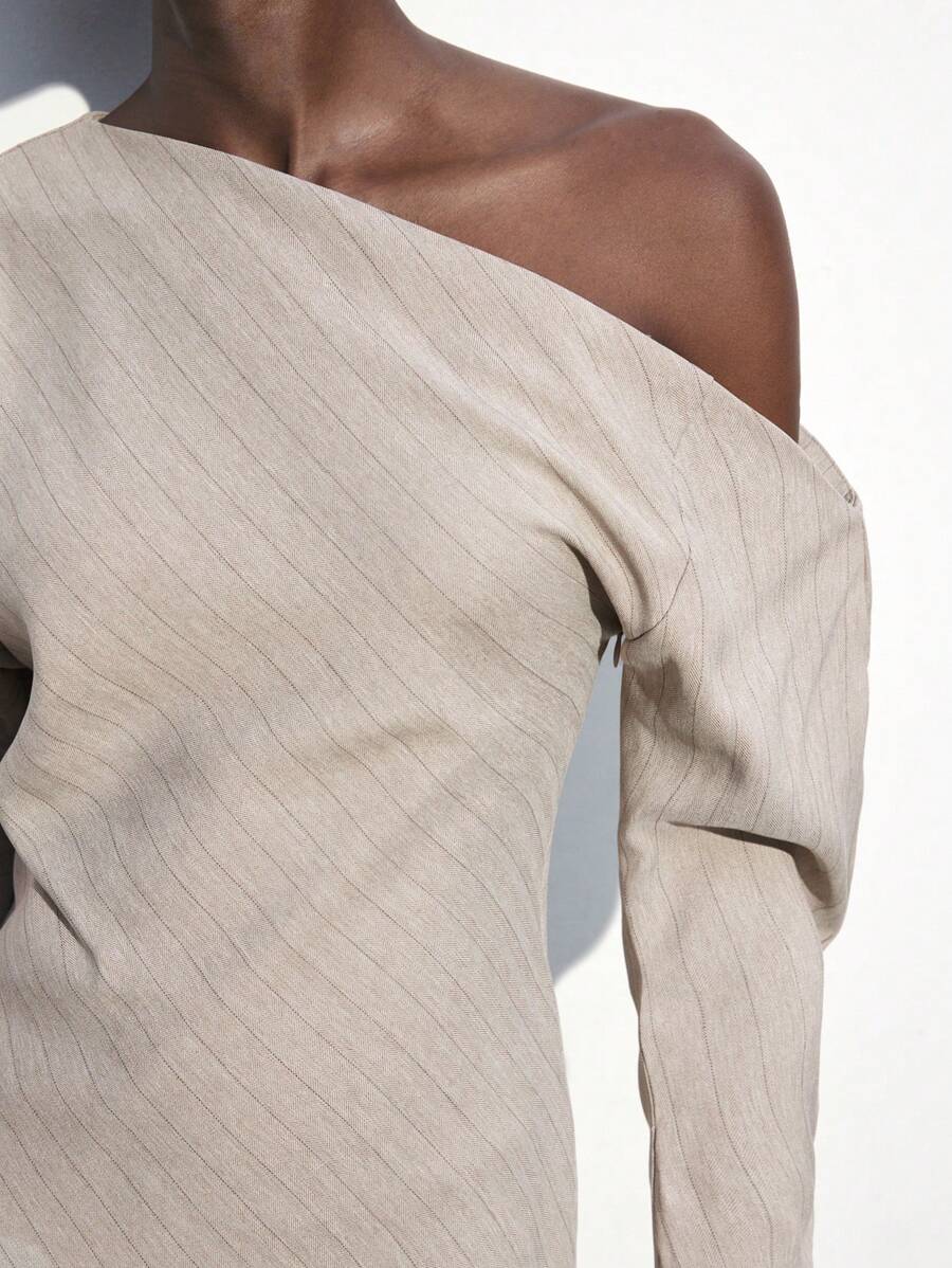 MIU Women's Khaki Modern Elegant Asymmetric Single Sleeve Layerable Short Dress, Versatile For All Seasons