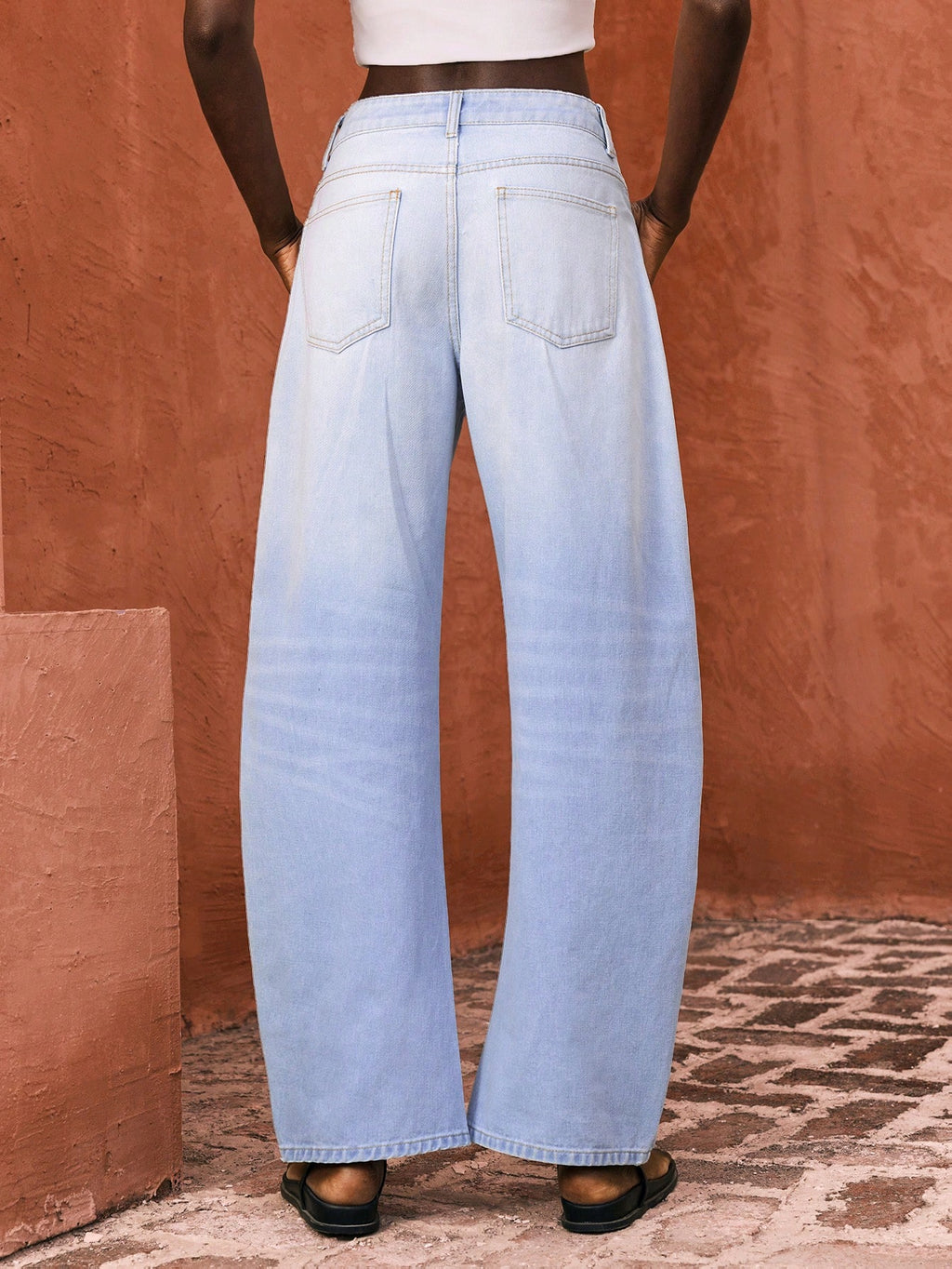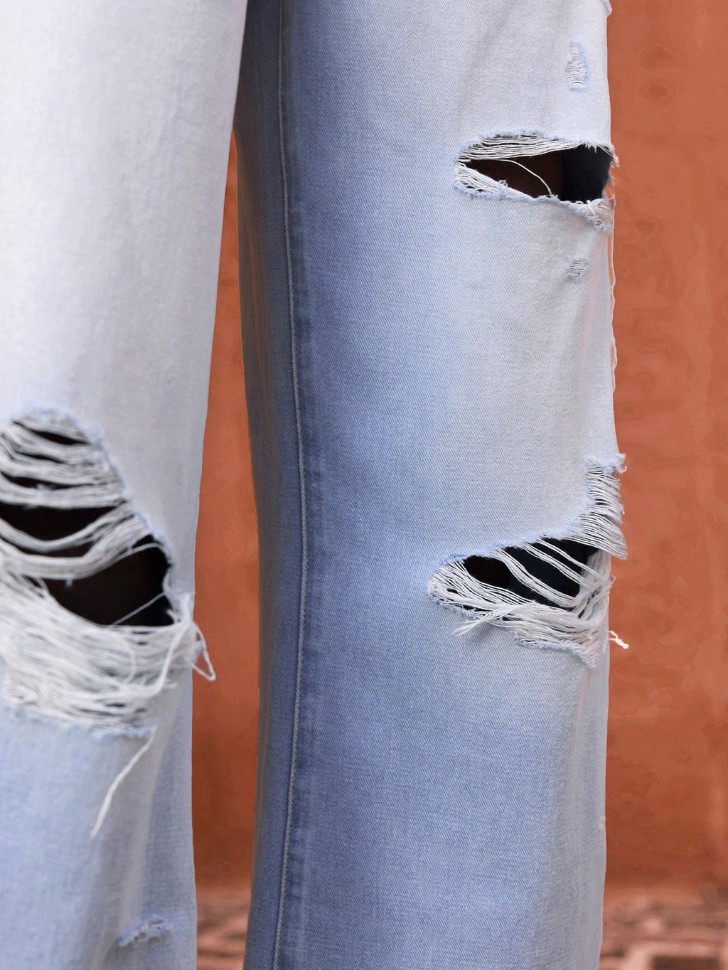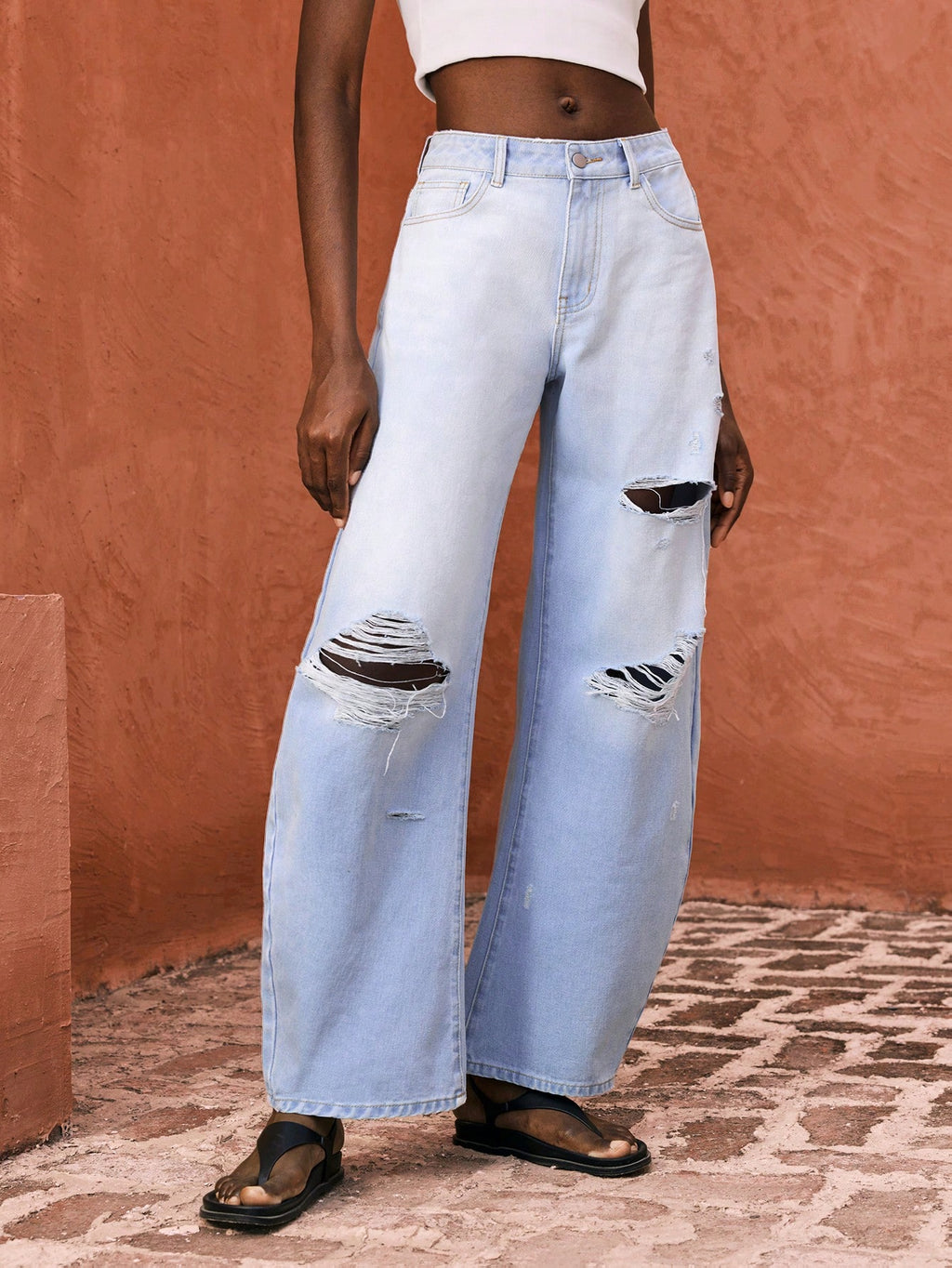 MIU Women's Light Blue Jeans Casual Ripped Banana Pants Summer Outfit