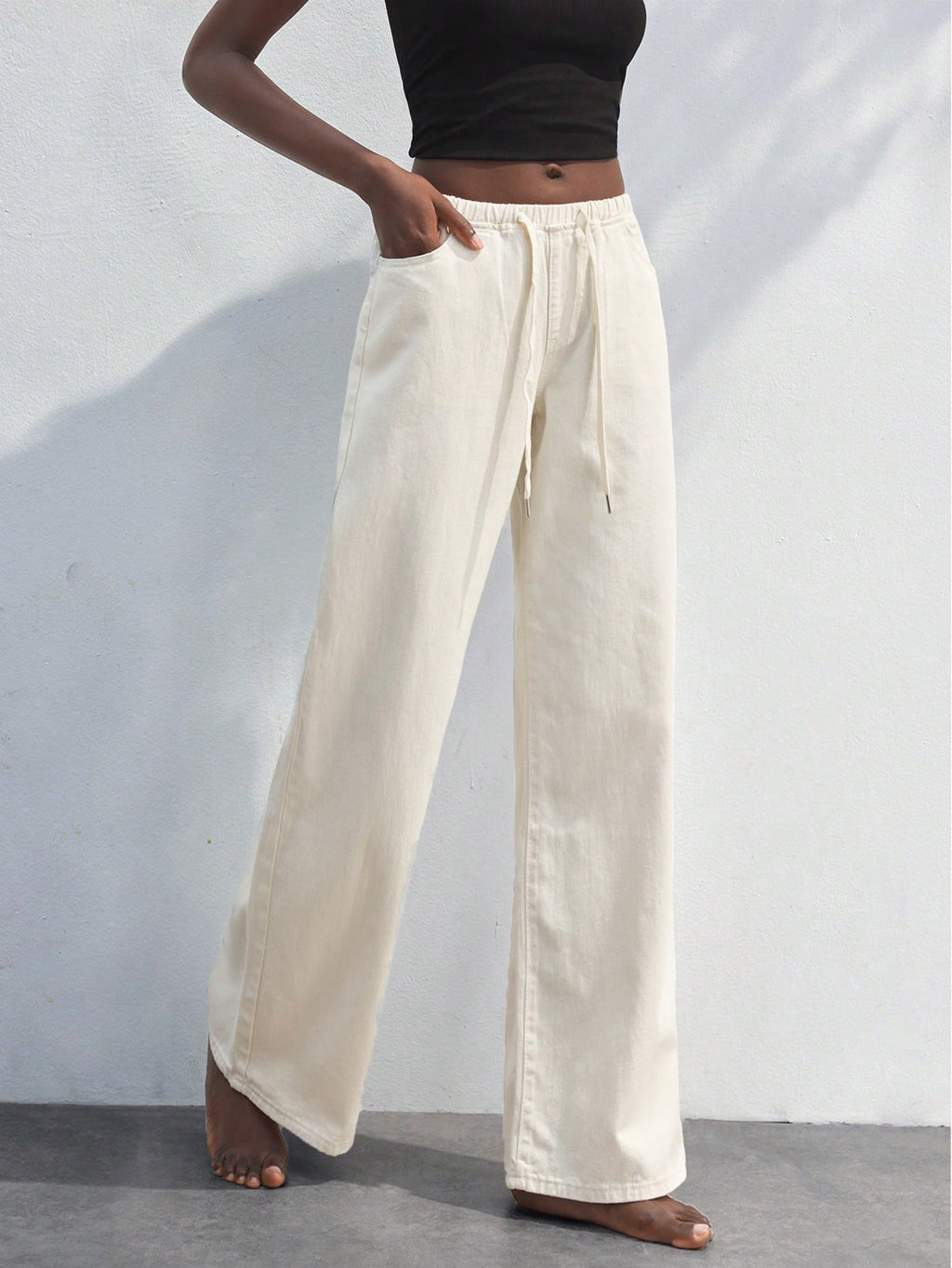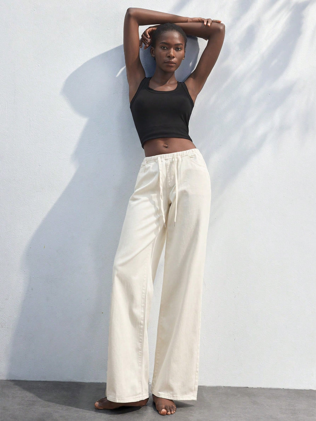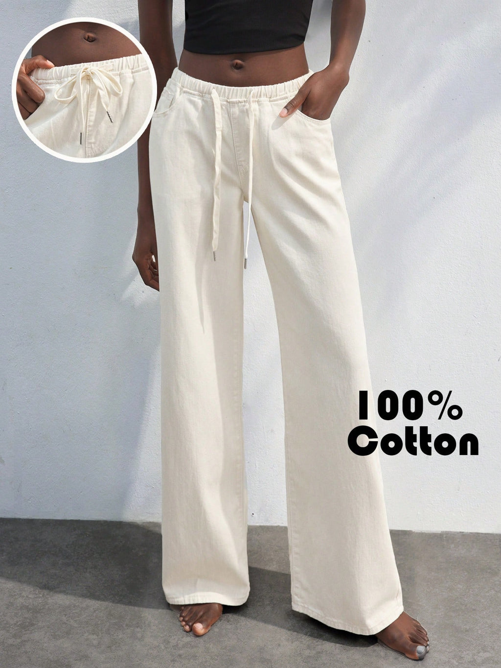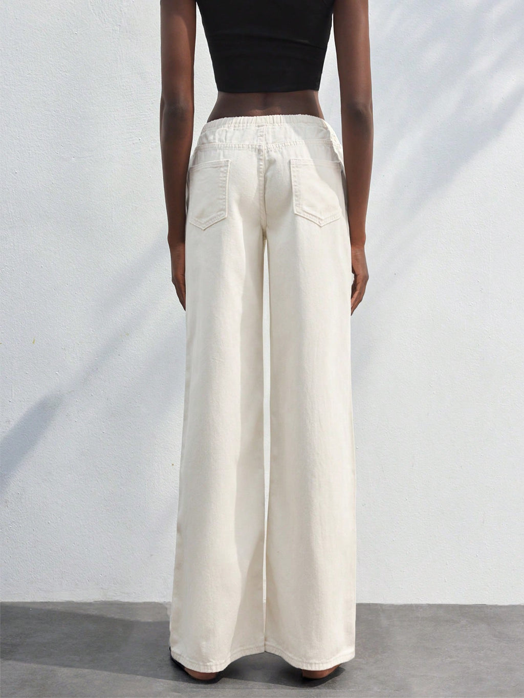 MIU Women's Loose Fit Low-Rise Wide Leg Jeans, Going Out