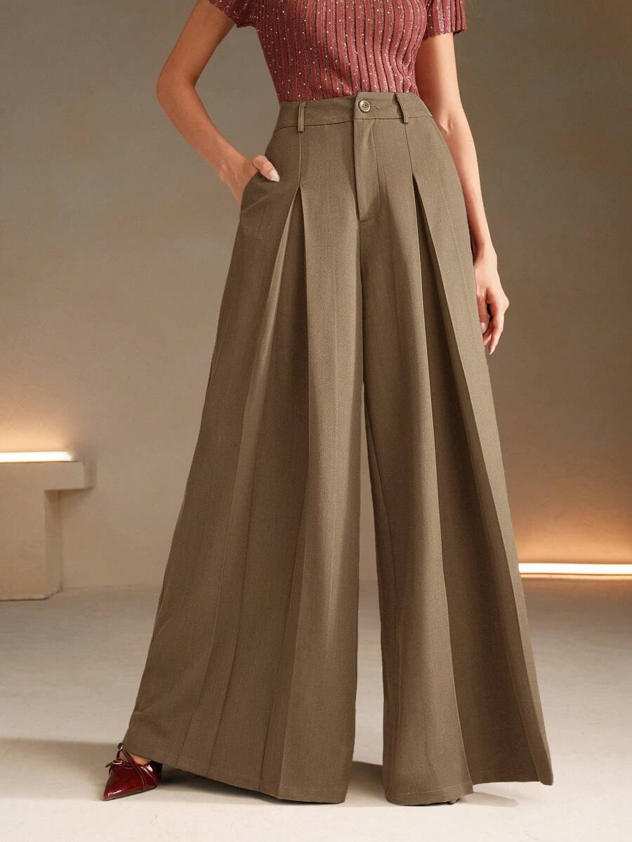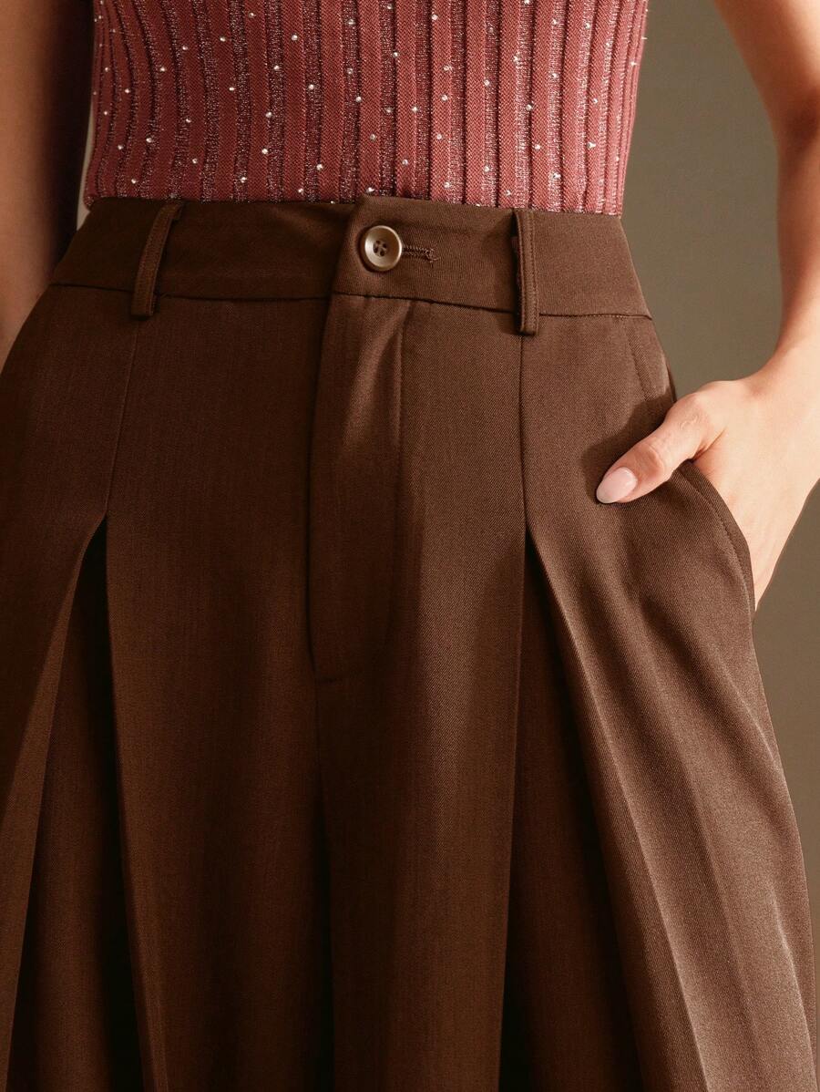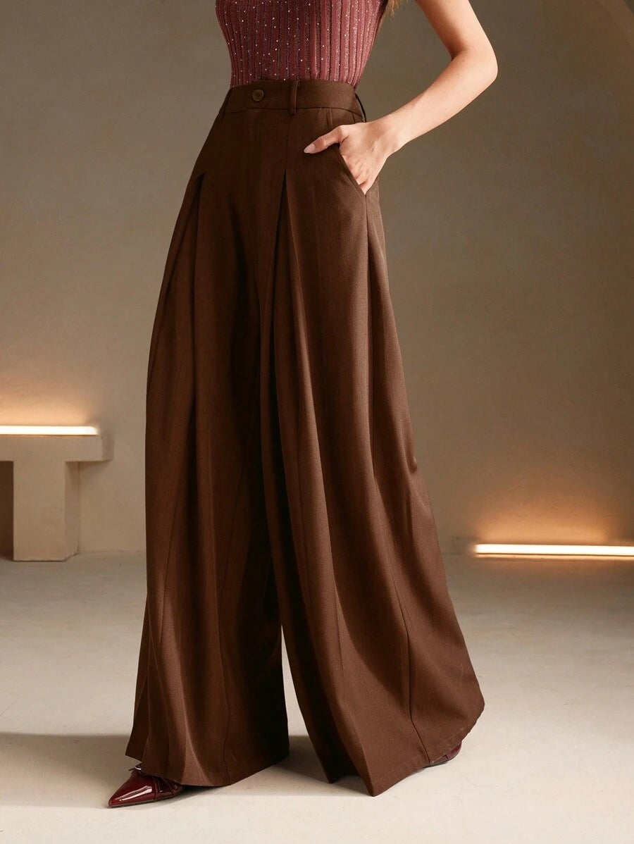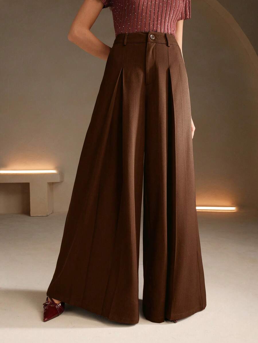 MIU Women's Loose Wide Leg Trousers, Coffee Brown, Relaxed Fit Casual Flared Style Pants, Suitable For Autumn/Winter