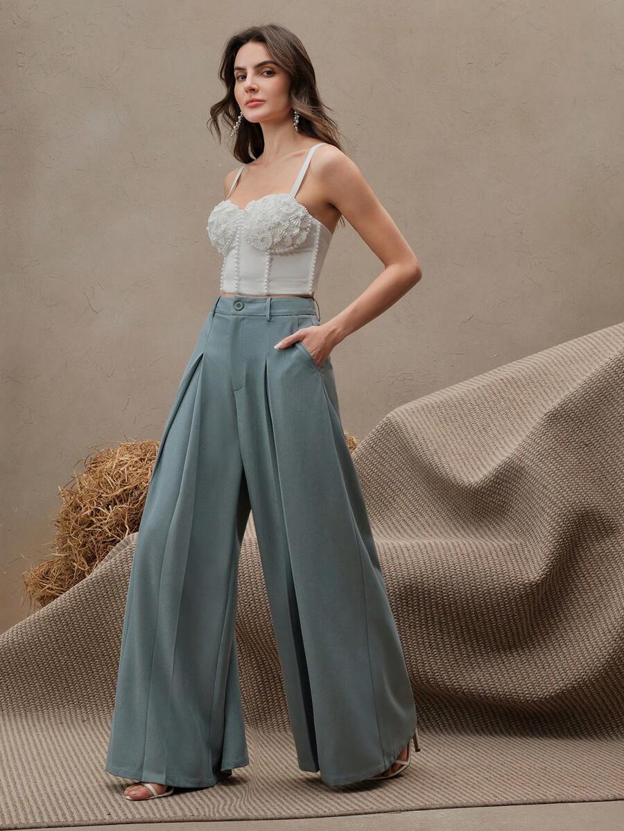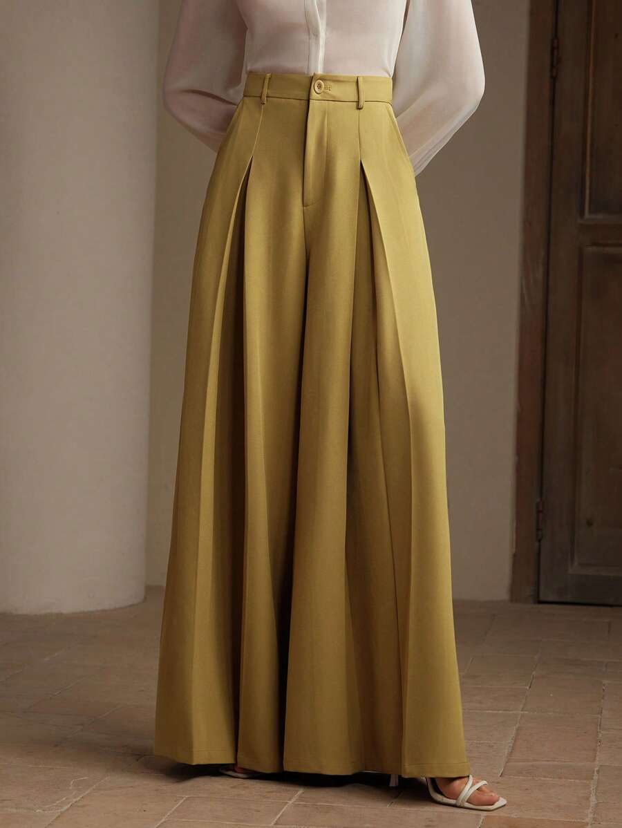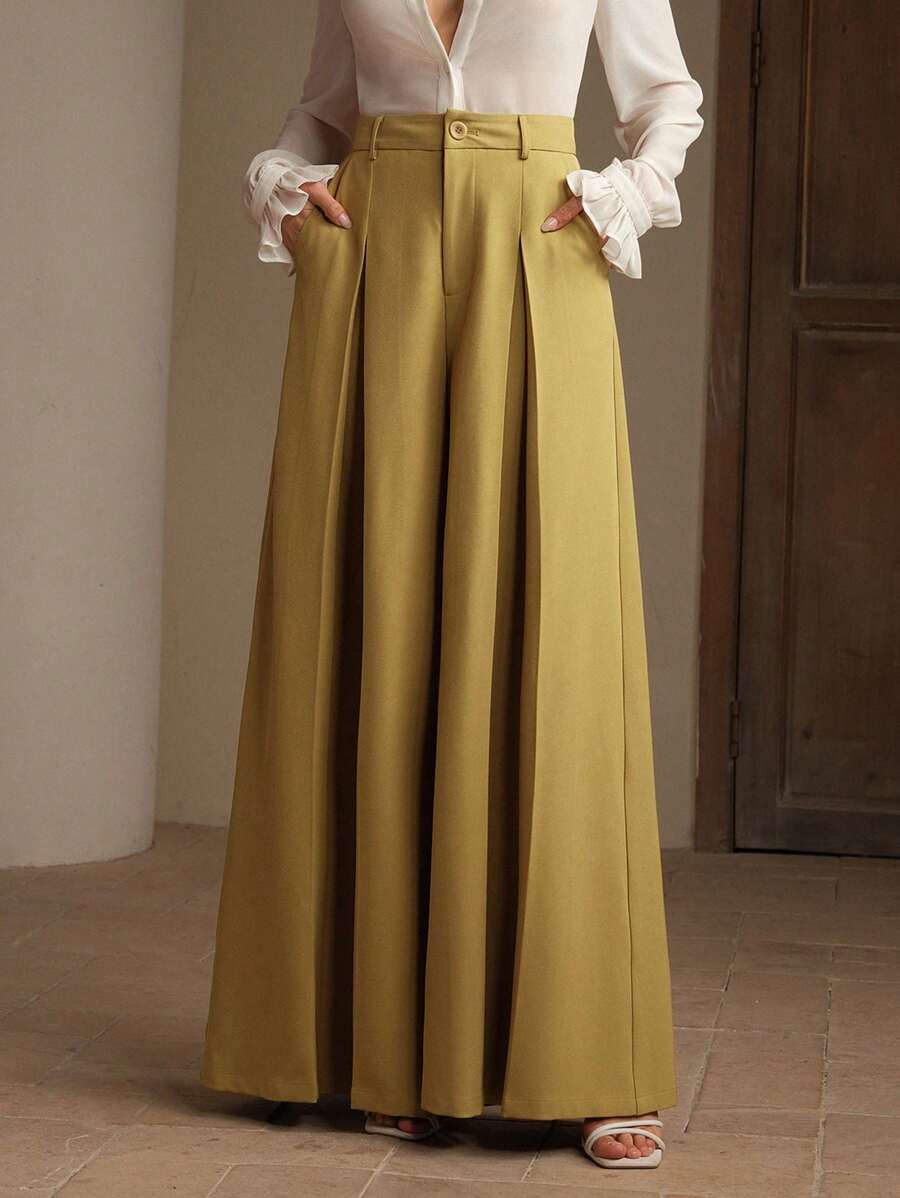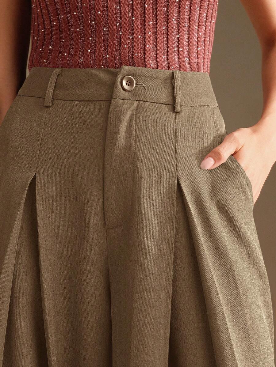 MIU Women's Loose Wide Leg Trousers, Coffee Brown, Relaxed Fit Casual Flared Style Pants, Suitable For Autumn/Winter