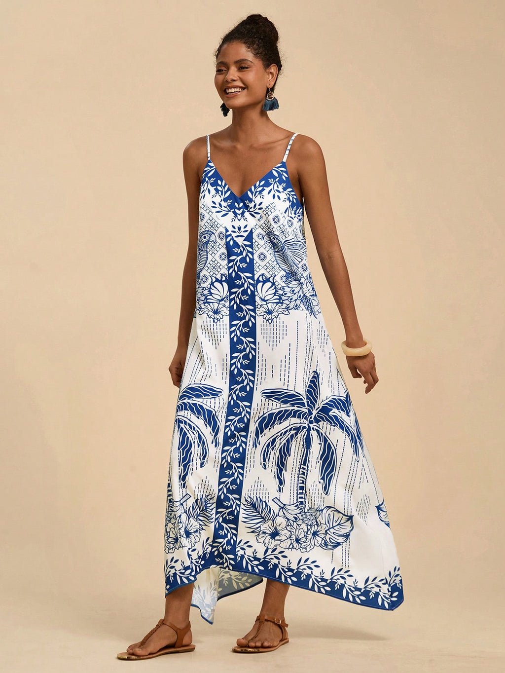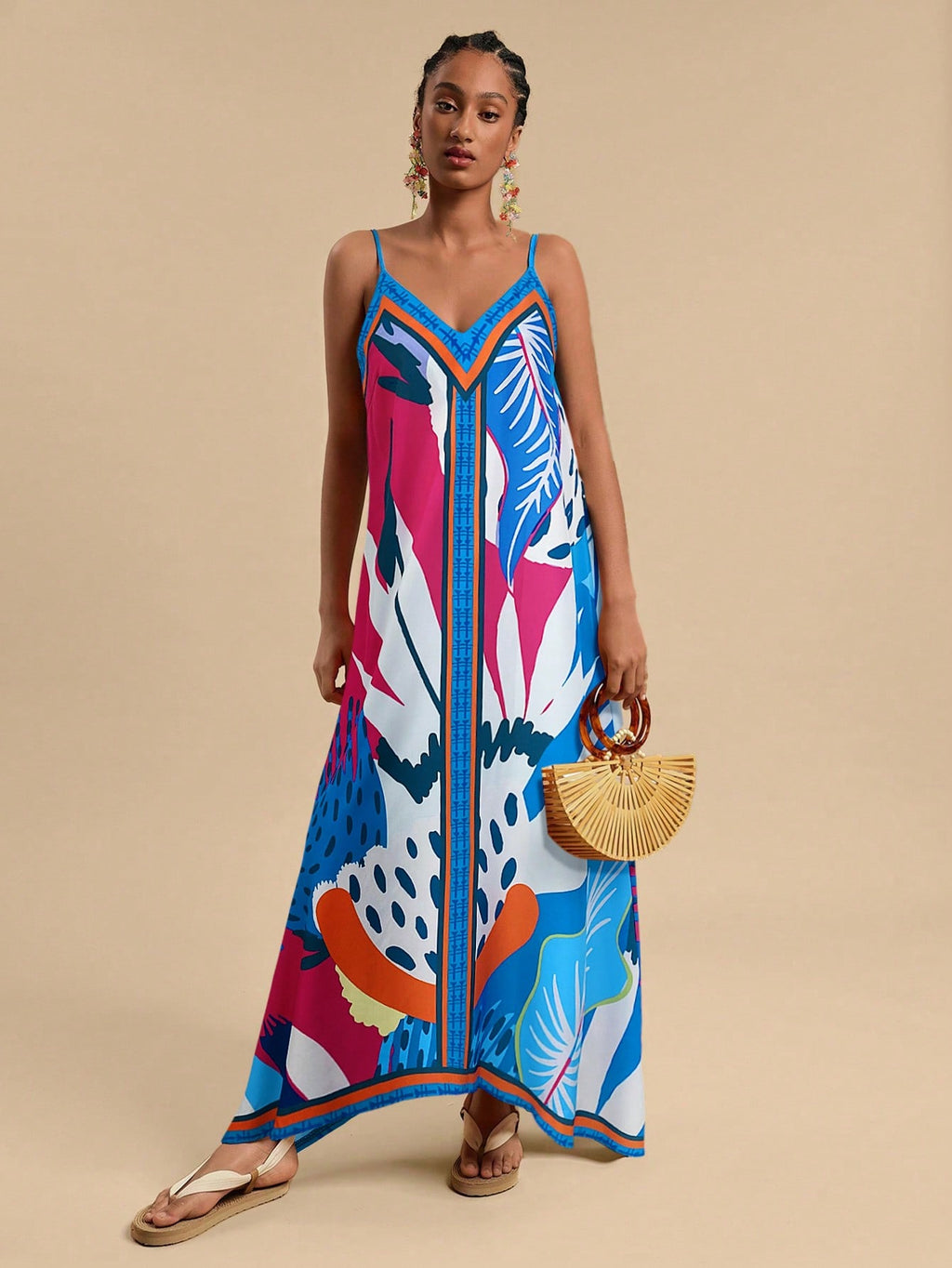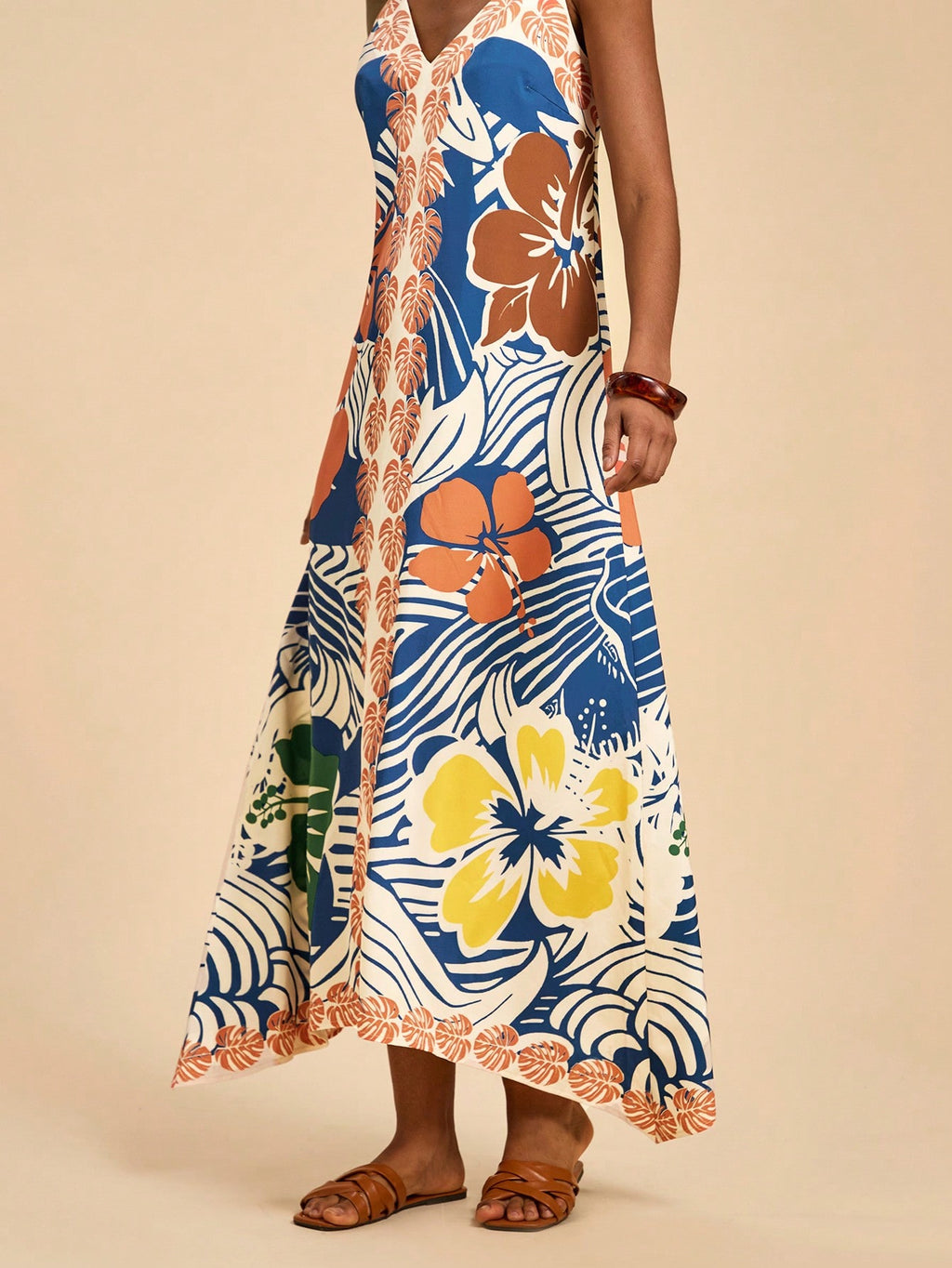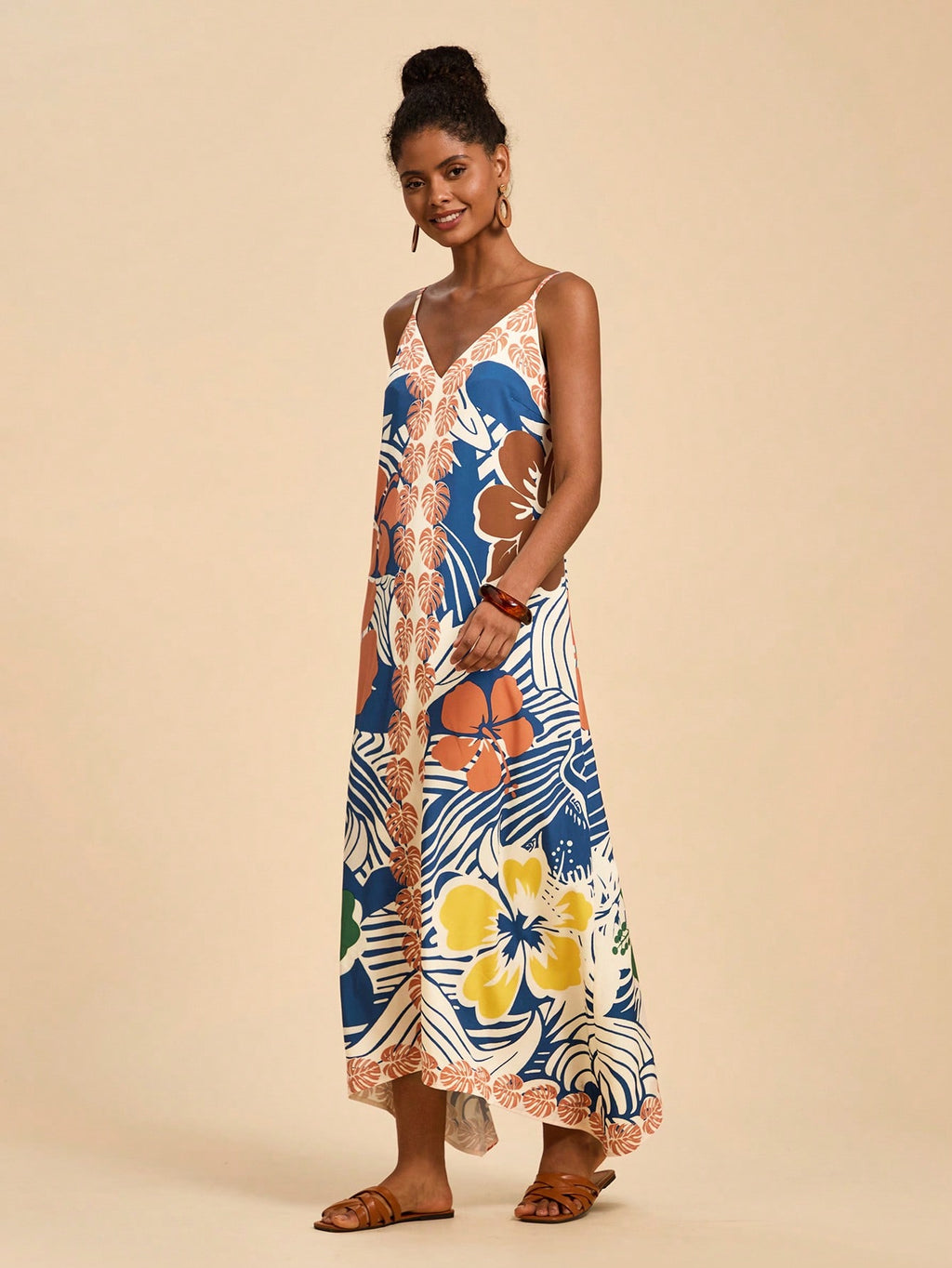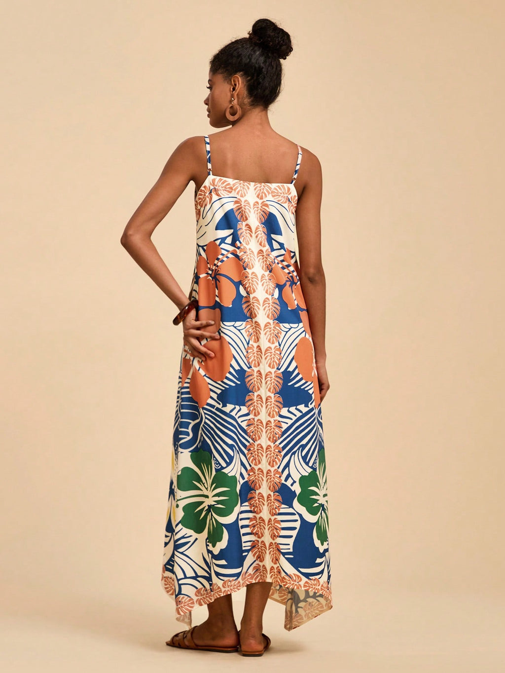 MIU Women's Midi Length Sleeveless Dress, Fashionable For Summer,Tropical Print Dress,Vacation Outfits Woman,Concert Outfit Women,Tropical Vacation, Vacation,Bohemian Clothes