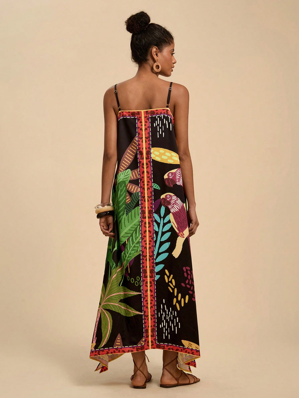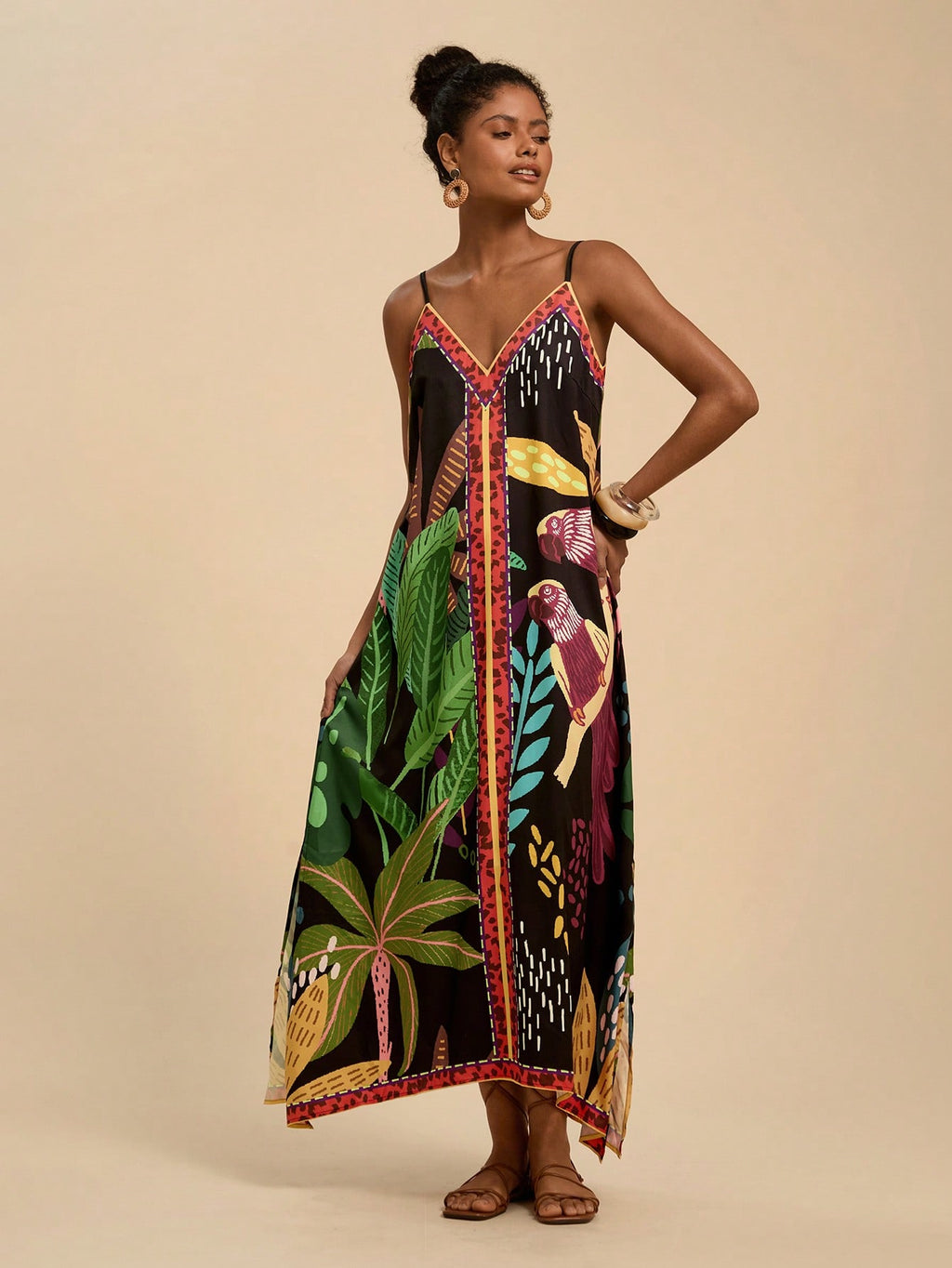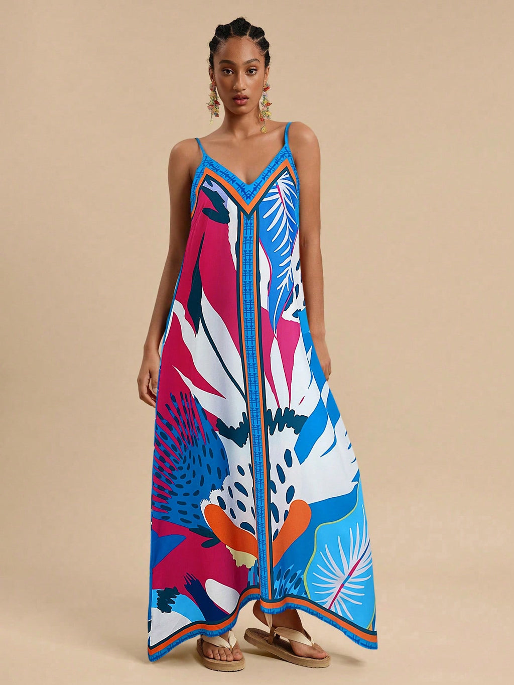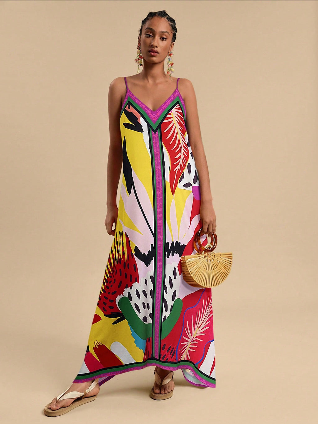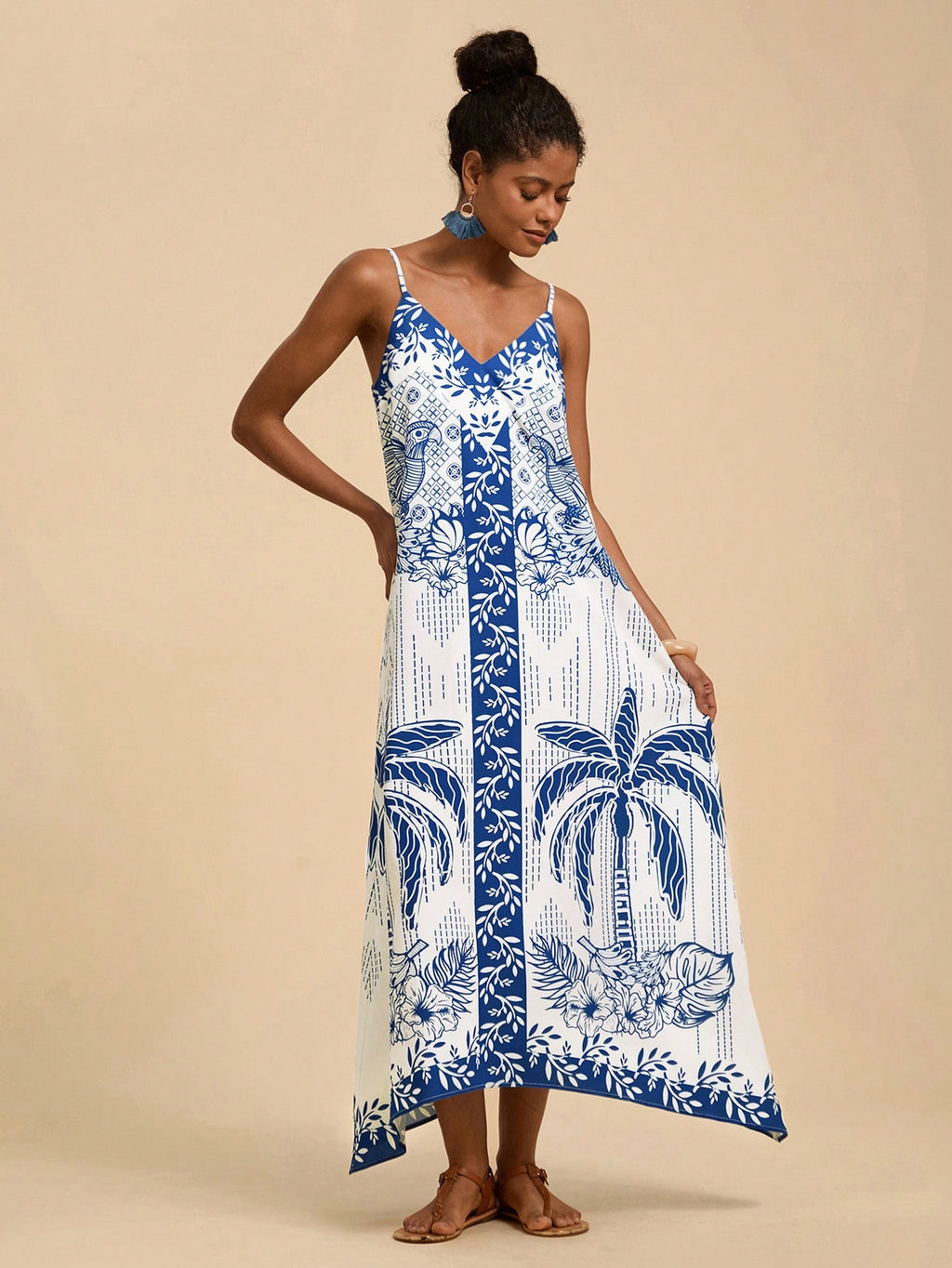MIU Women's Midi Length Sleeveless Dress, Fashionable For Summer,Tropical Print Dress,Vacation Outfits Woman,Concert Outfit Women,Tropical Vacation, Vacation,Bohemian Clothes