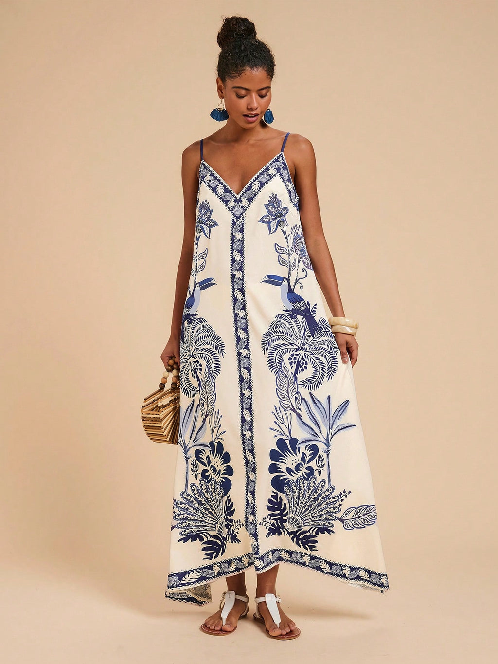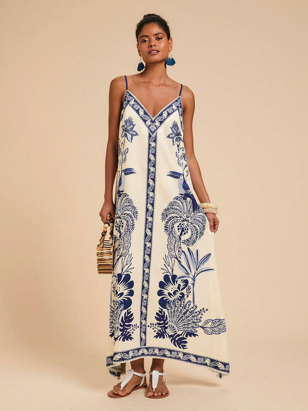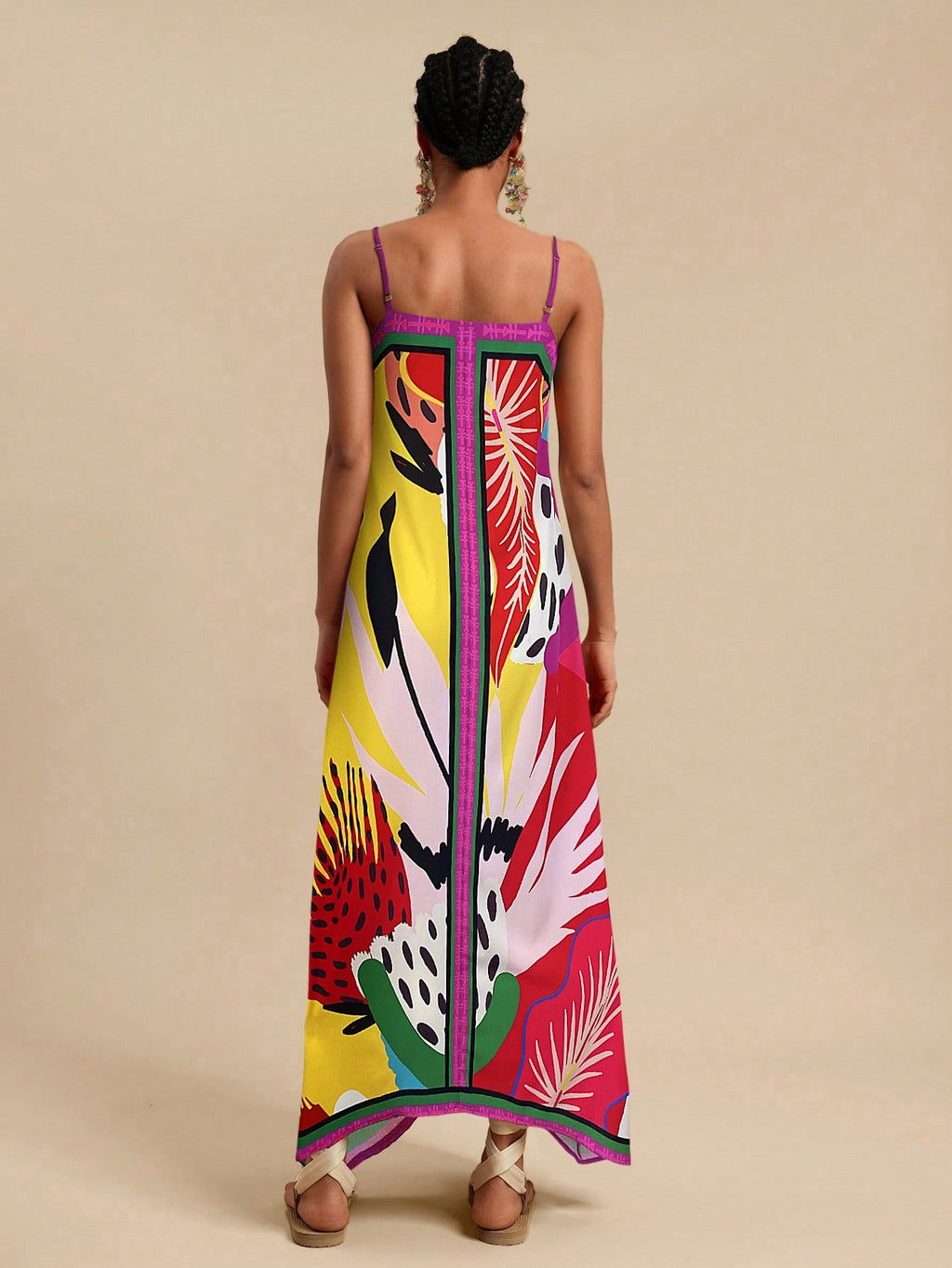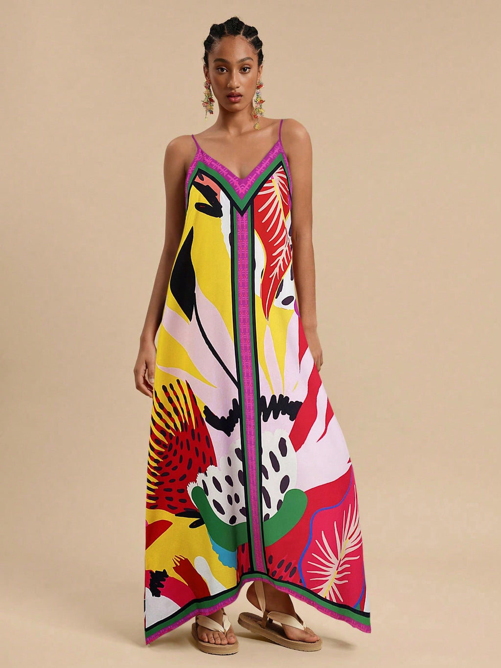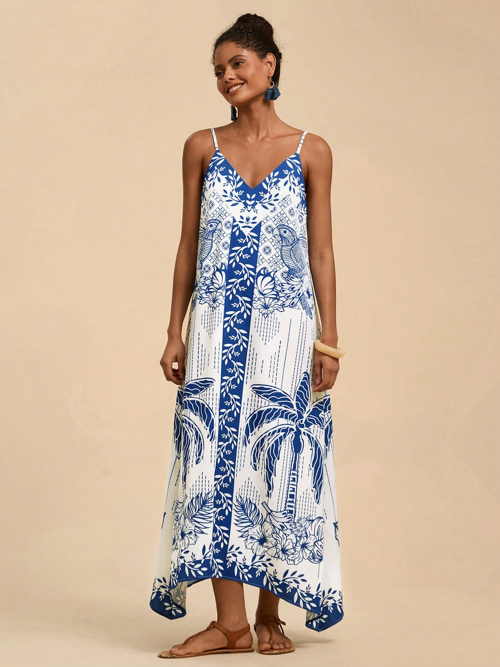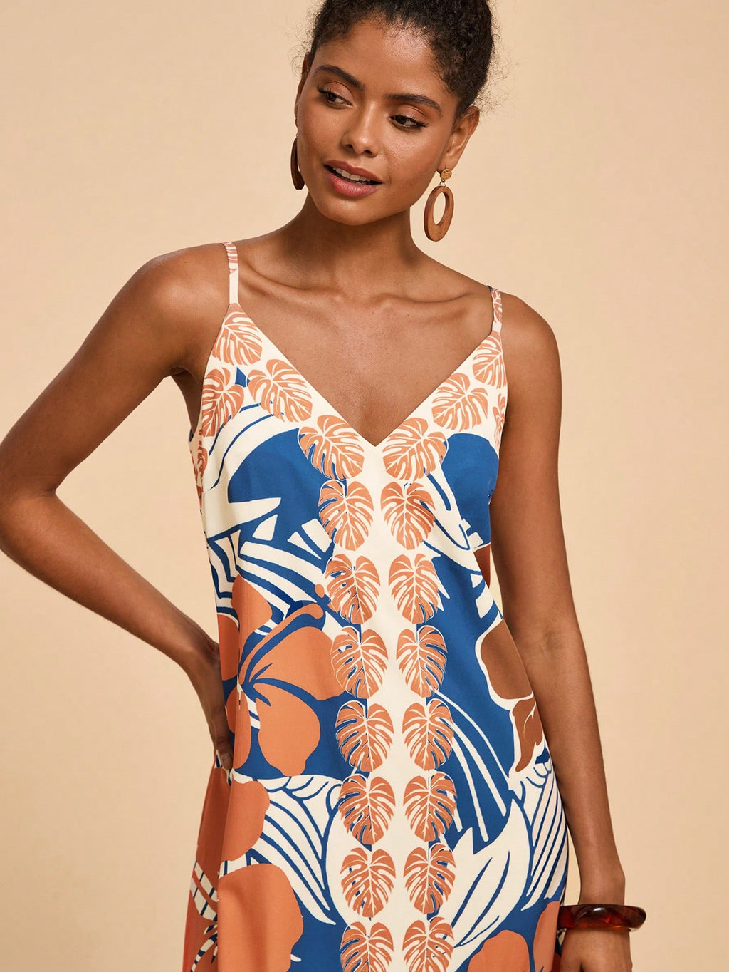 MIU Women's Midi Length Sleeveless Dress, Fashionable For Summer,Tropical Print Dress,Vacation Outfits Woman,Concert Outfit Women,Tropical Vacation, Vacation,Bohemian Clothes