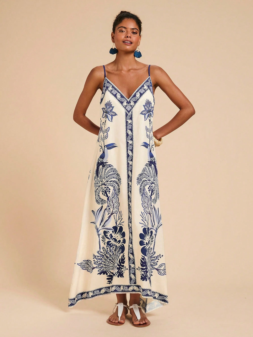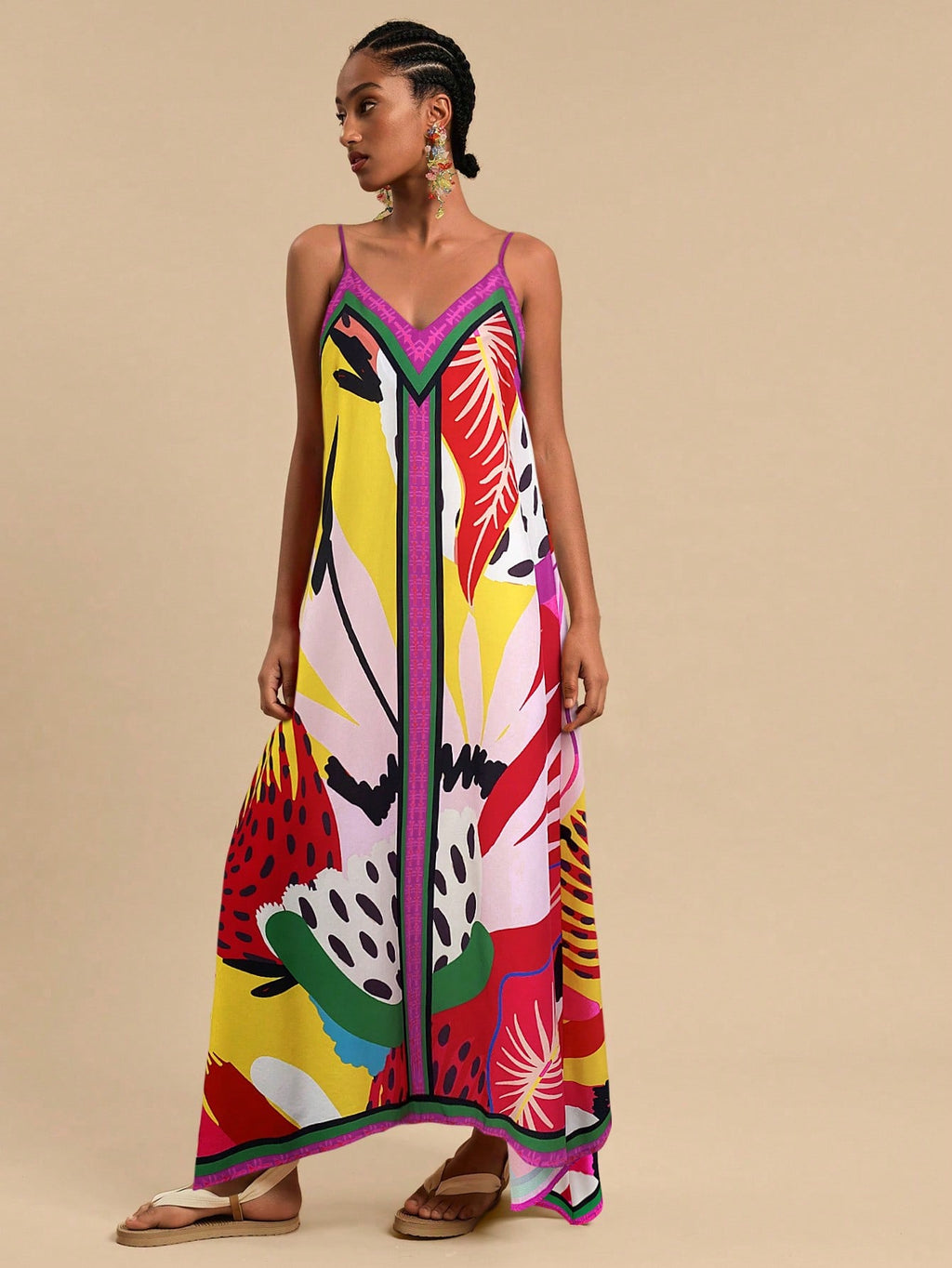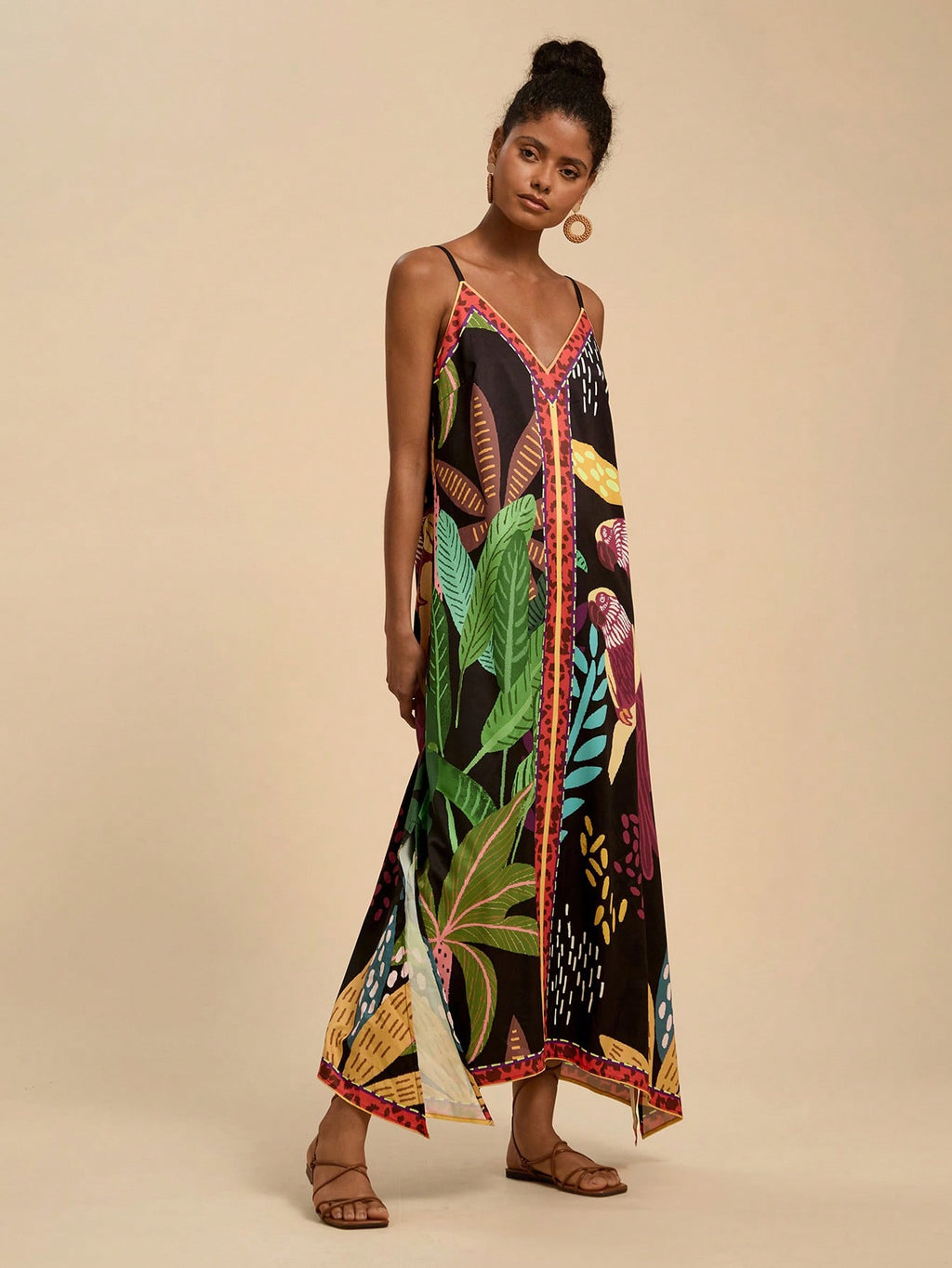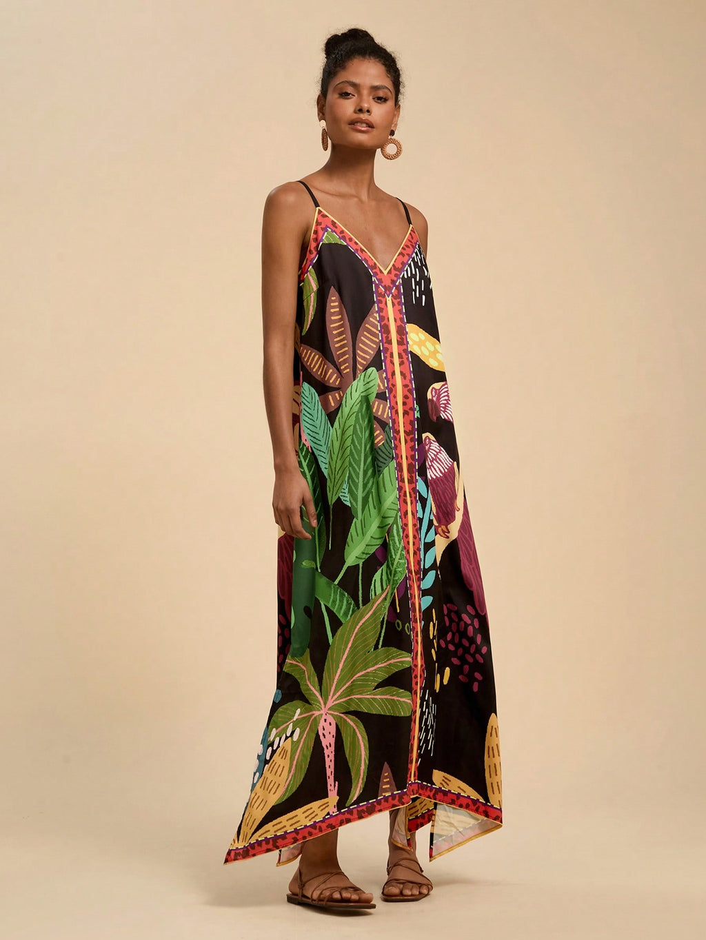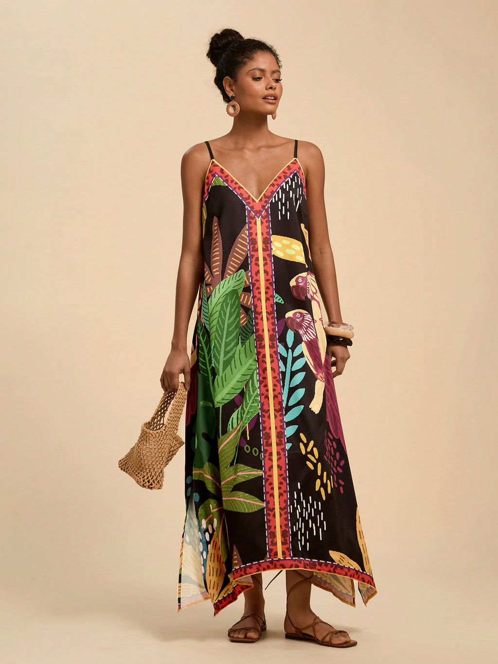 MIU Women's Midi Length Sleeveless Dress, Fashionable For Summer,Tropical Print Dress,Vacation Outfits Woman,Concert Outfit Women,Tropical Vacation, Vacation,Bohemian Clothes