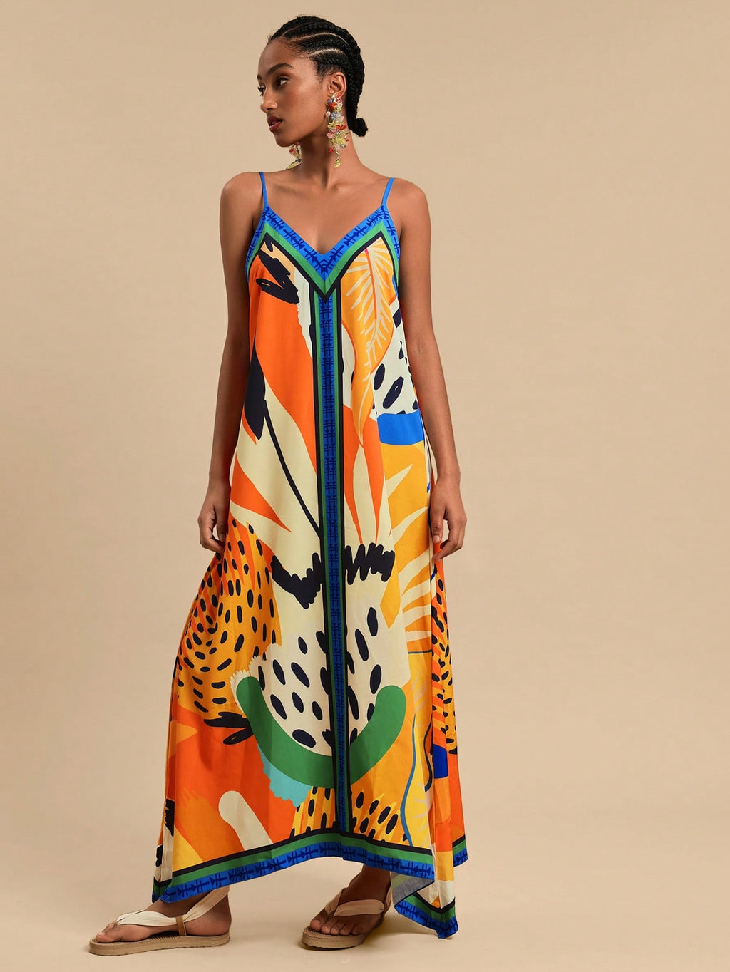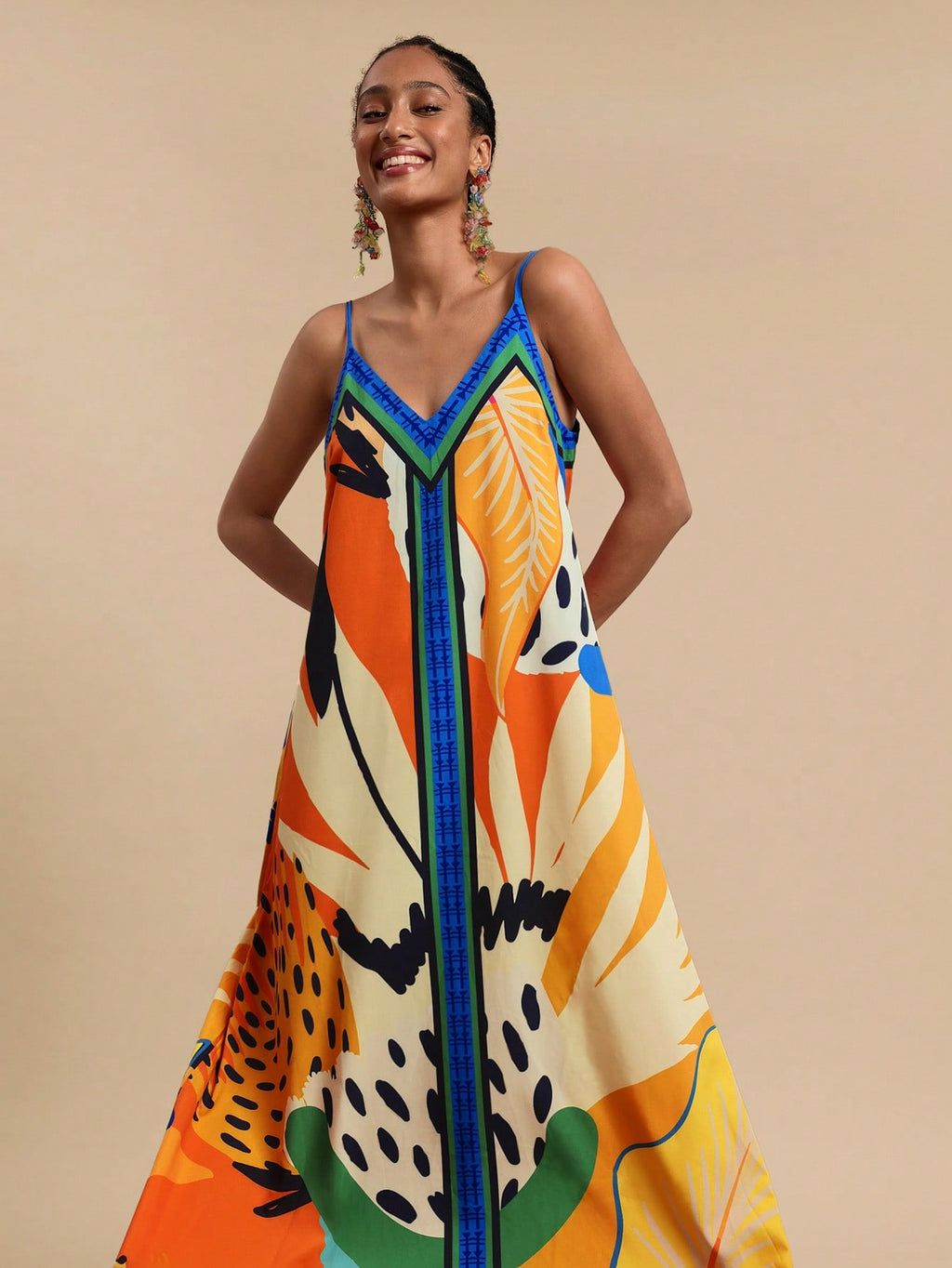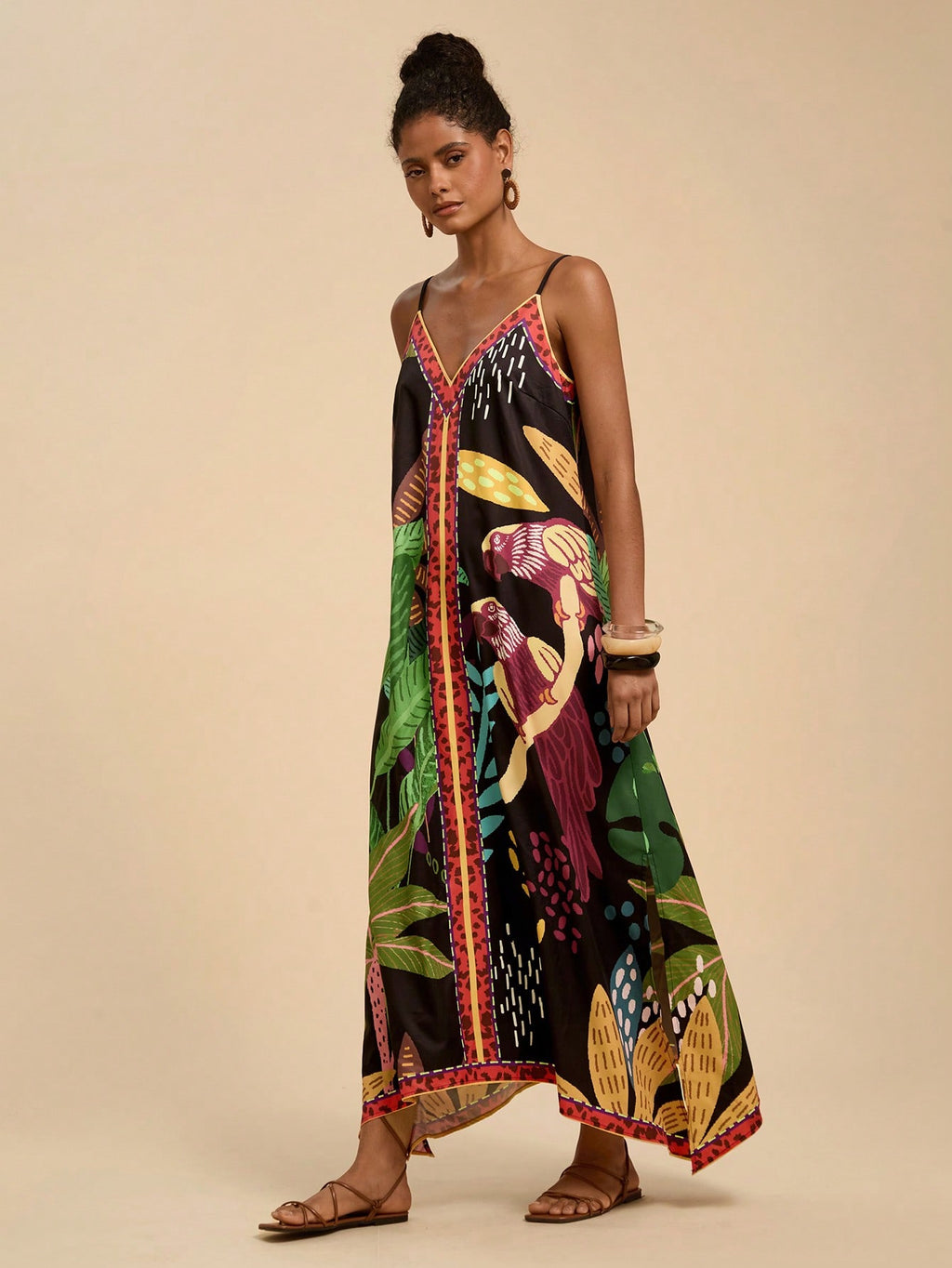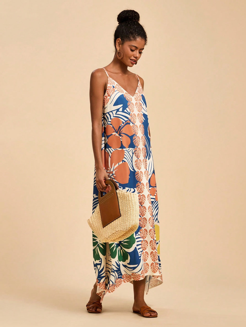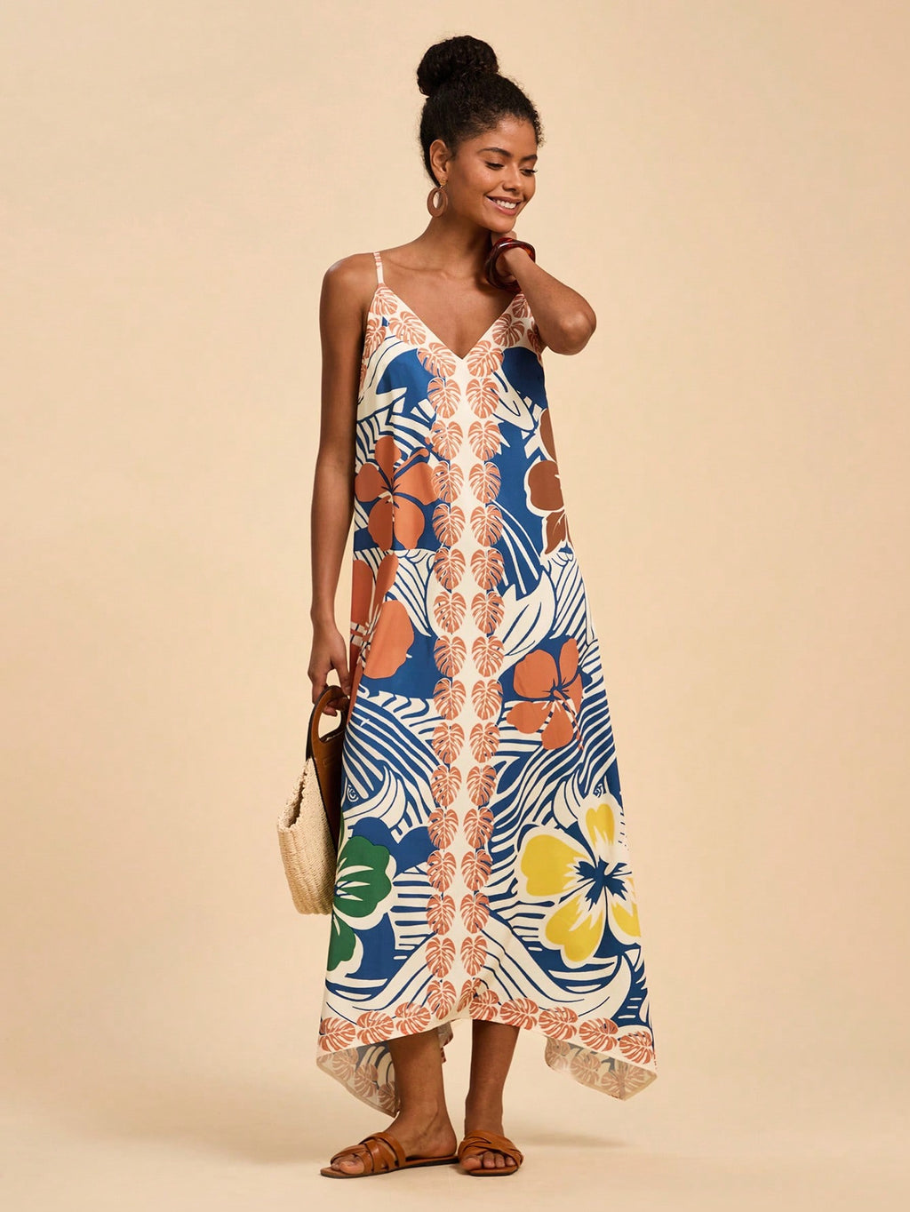 MIU Women's Midi Length Sleeveless Dress, Fashionable For Summer,Tropical Print Dress,Vacation Outfits Woman,Concert Outfit Women,Tropical Vacation, Vacation,Bohemian Clothes