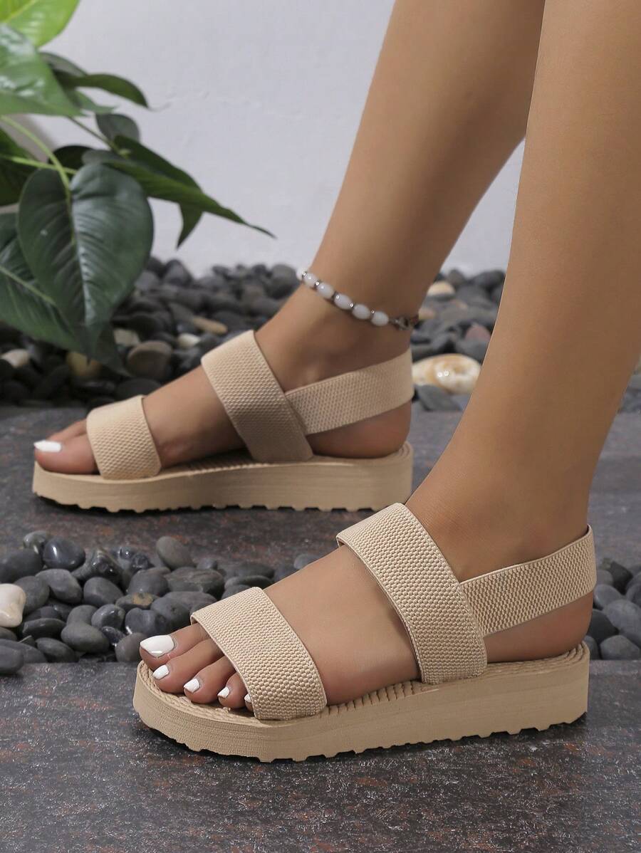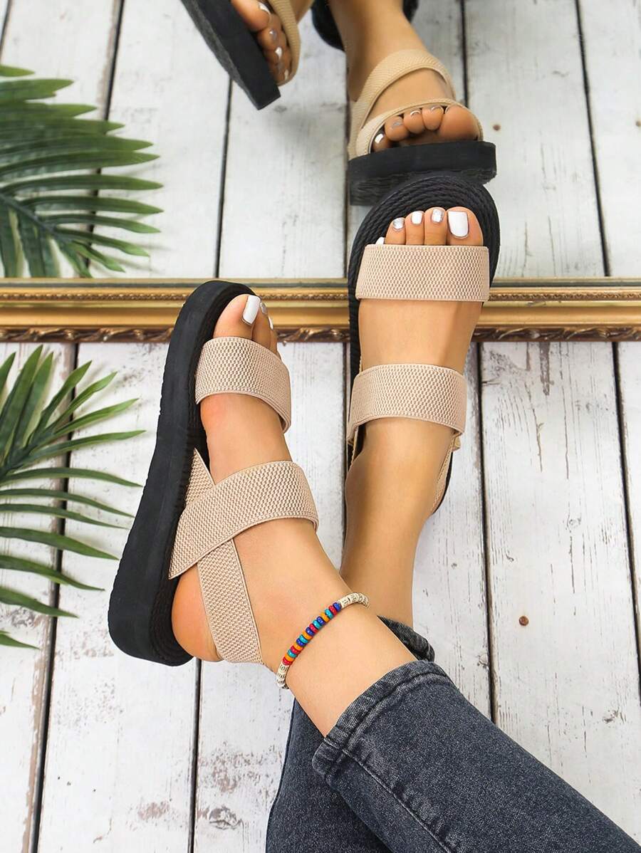 MIU Women's Minimalist Double Strap Slingback Wedge Sandals, Black, Flat, Summer, Beach, Vacation, Mid-Heel, Fashionable, Comfortable, Women's Shoes, Ladies' Shoes, Women's Sandals, Women's Summer Shoes, Women's Wedge Sandals