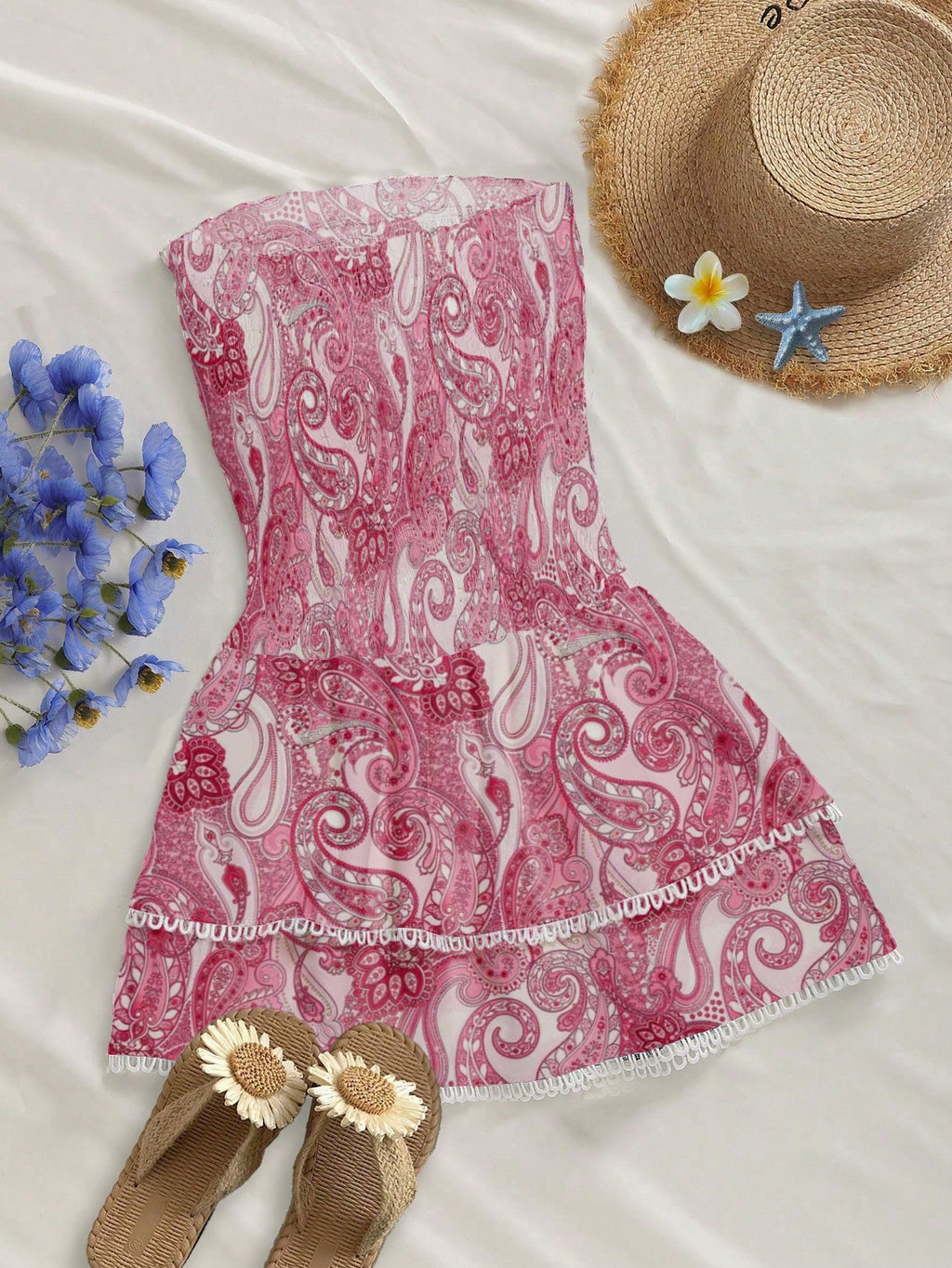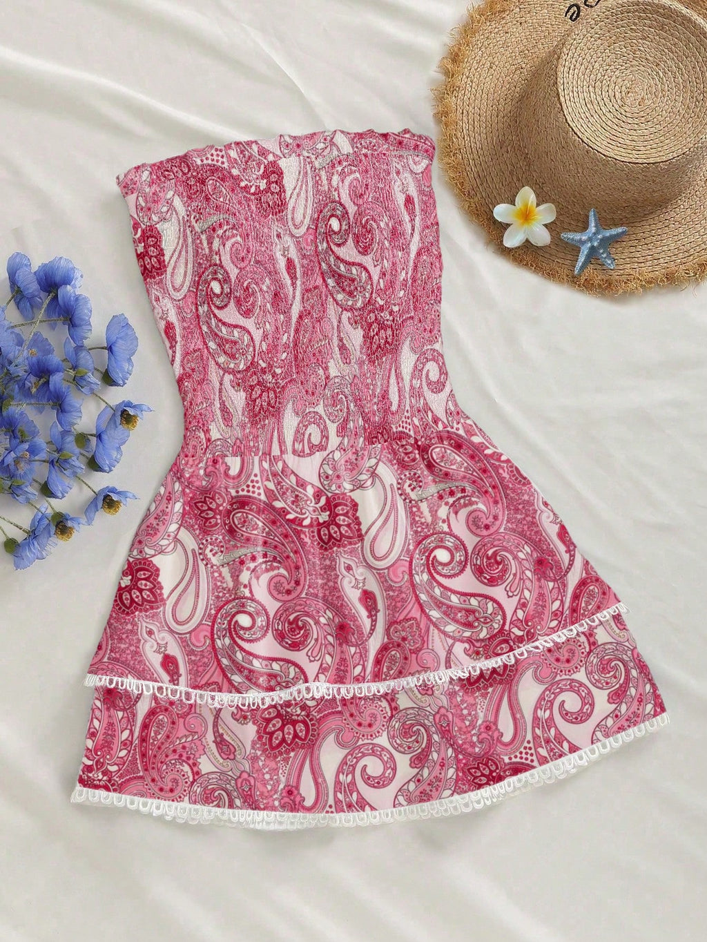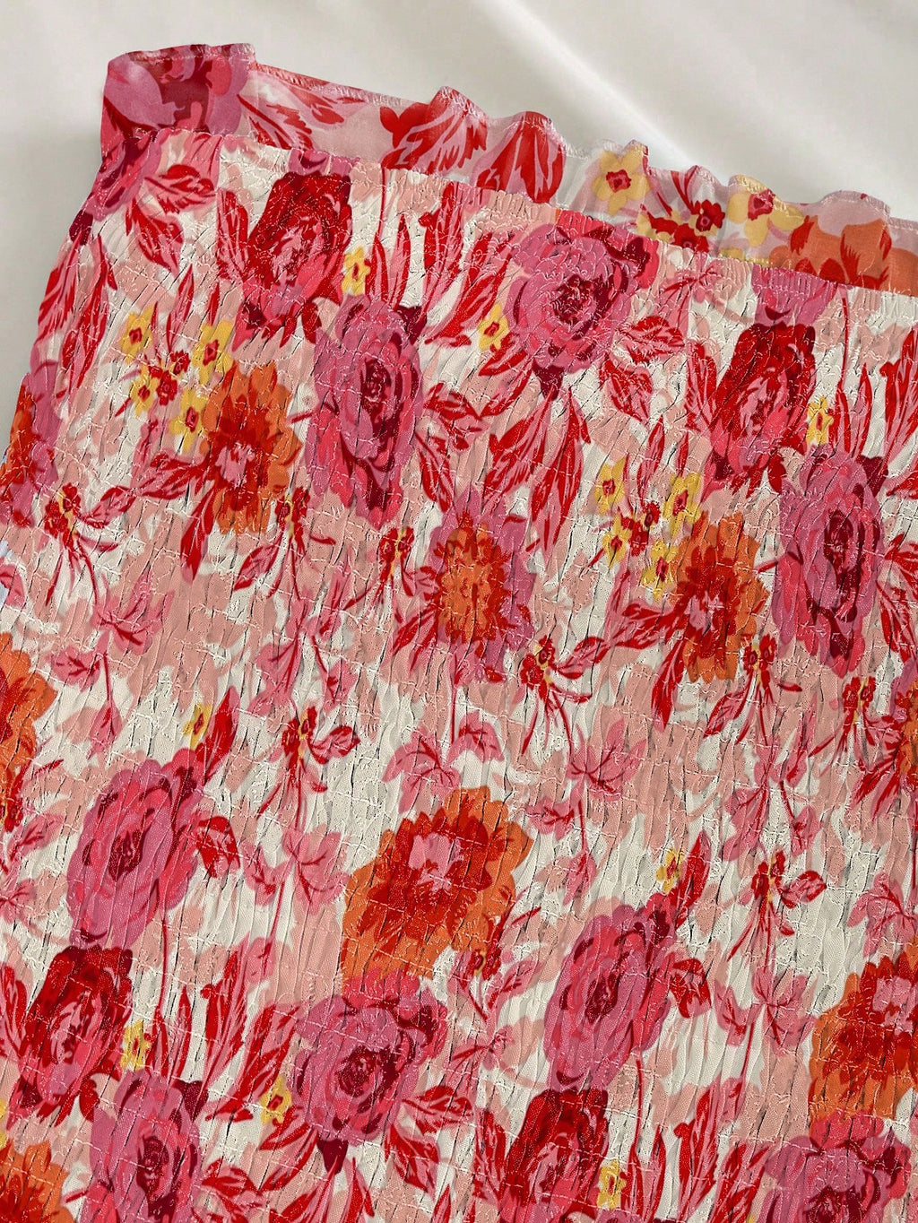 MIU AZRA Elegantna mini suknja s perlama u crvenom tweedu za žene