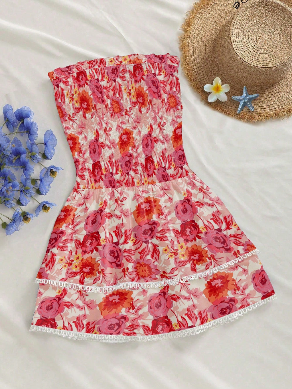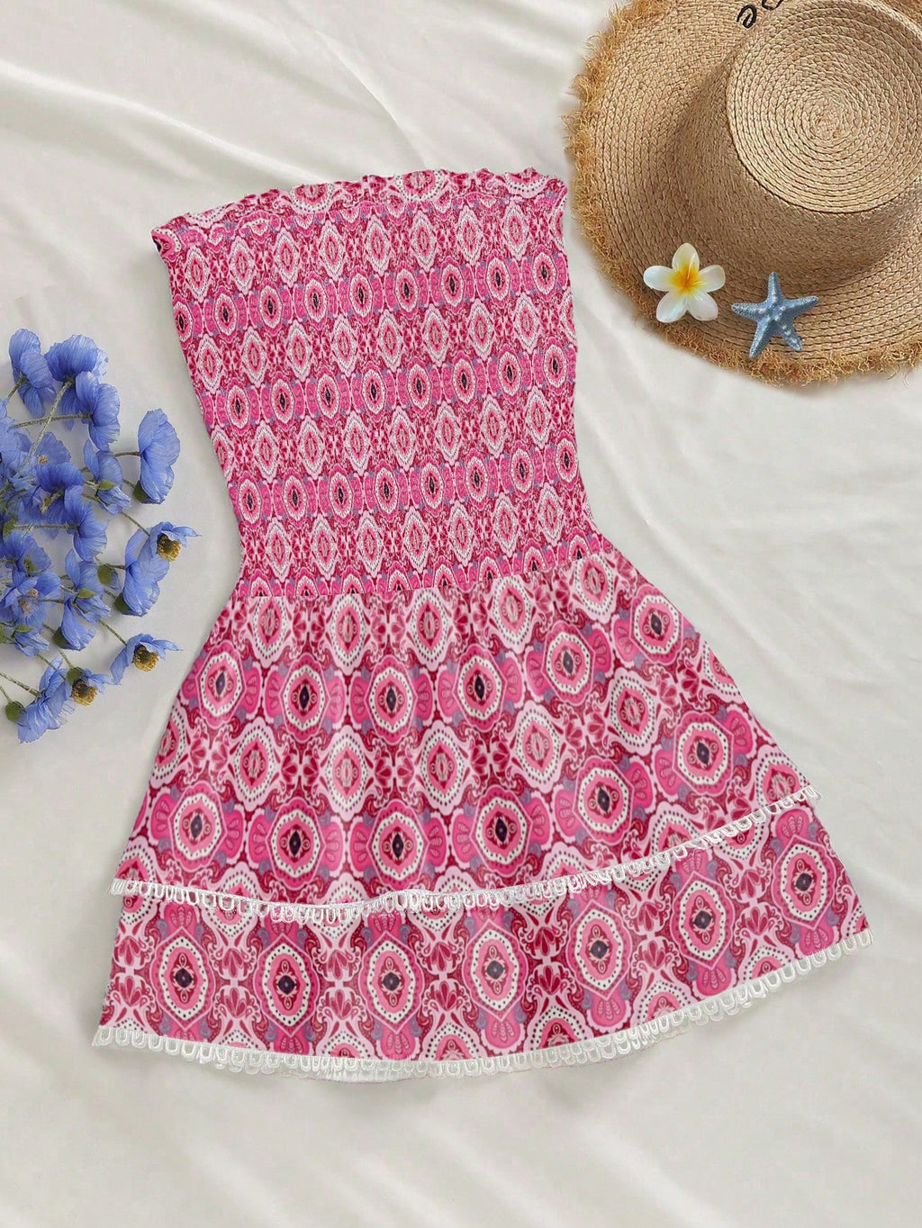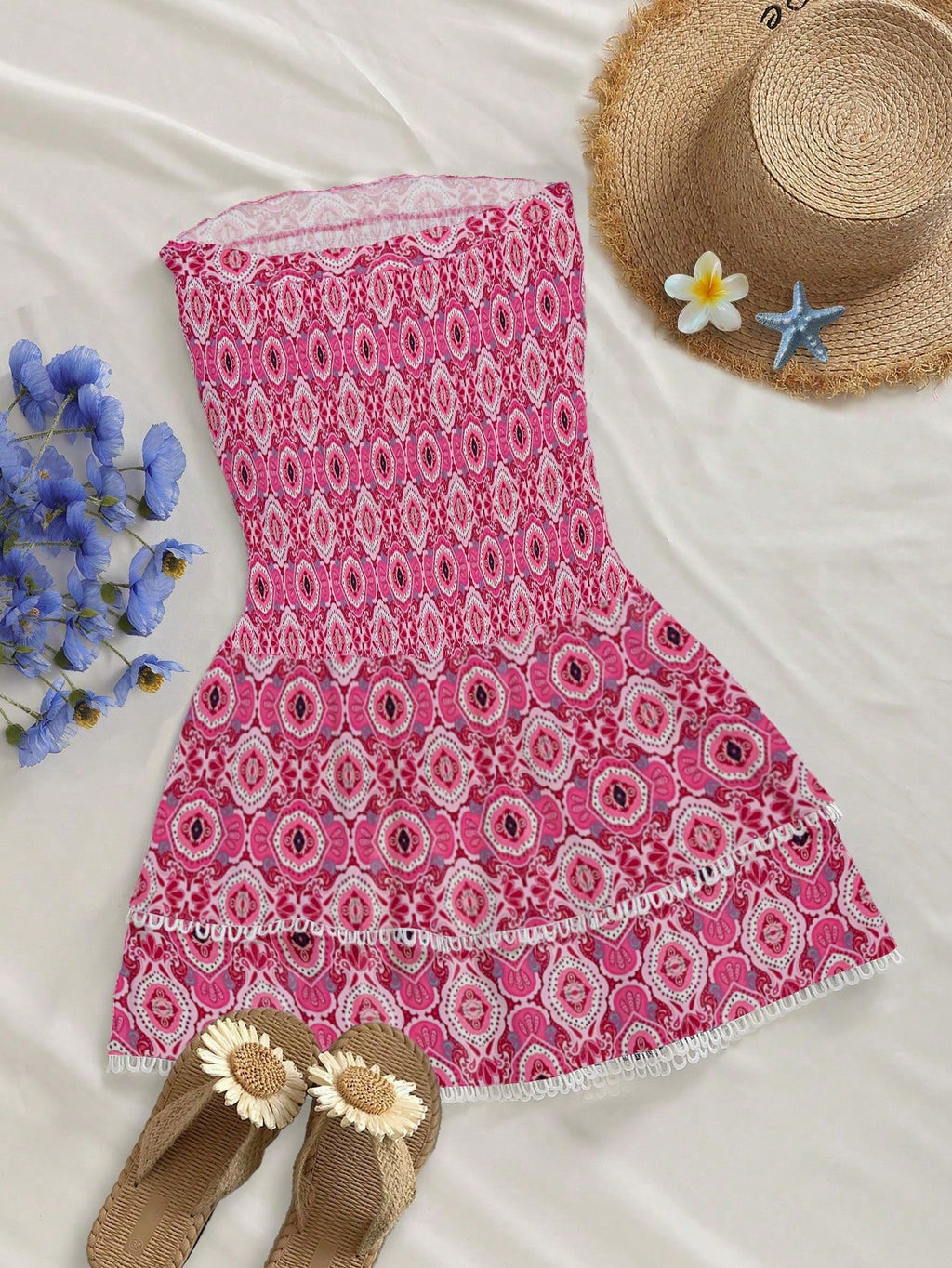MIU AZRA Elegantna mini suknja s perlama u crvenom tweedu za žene