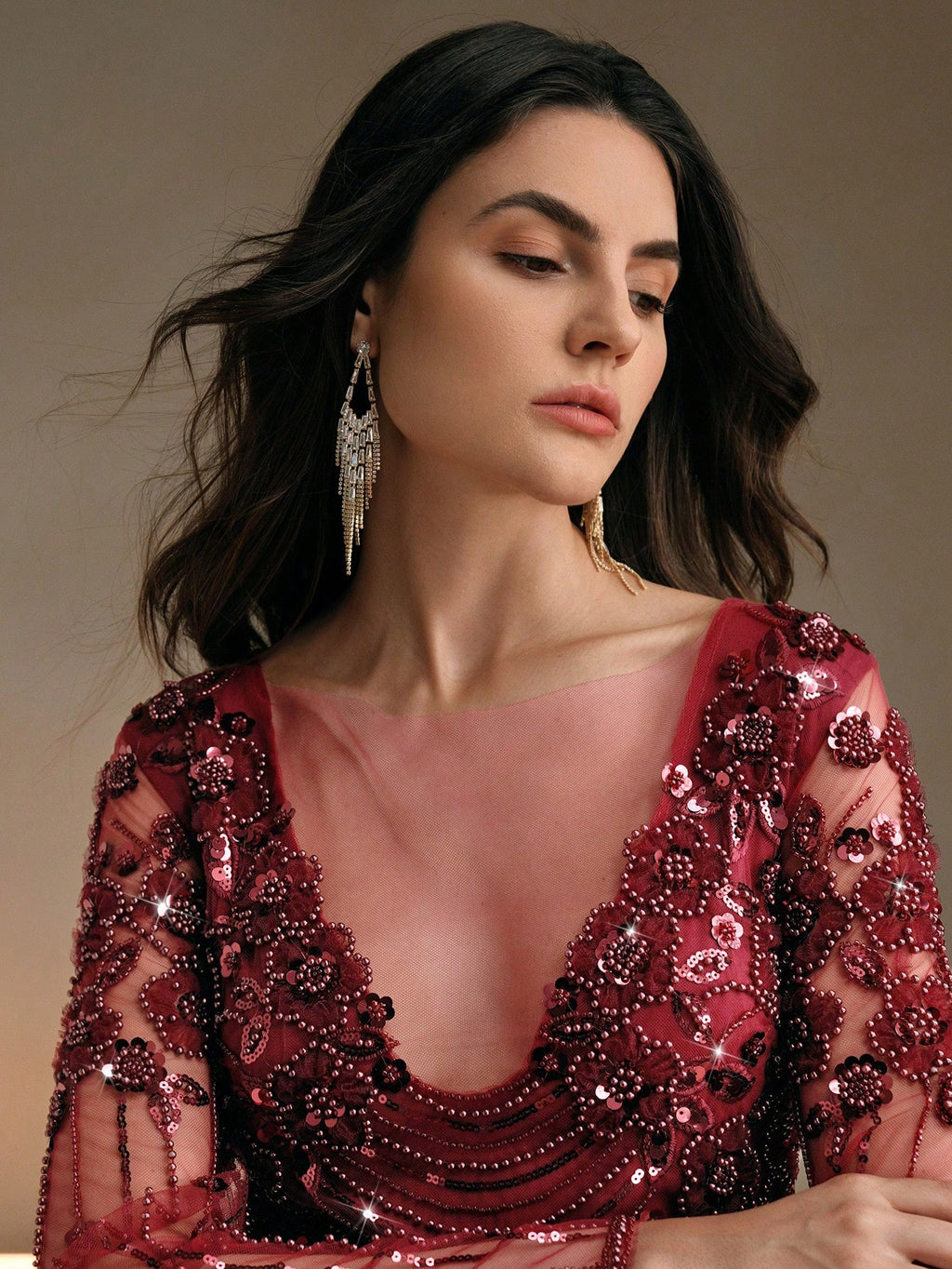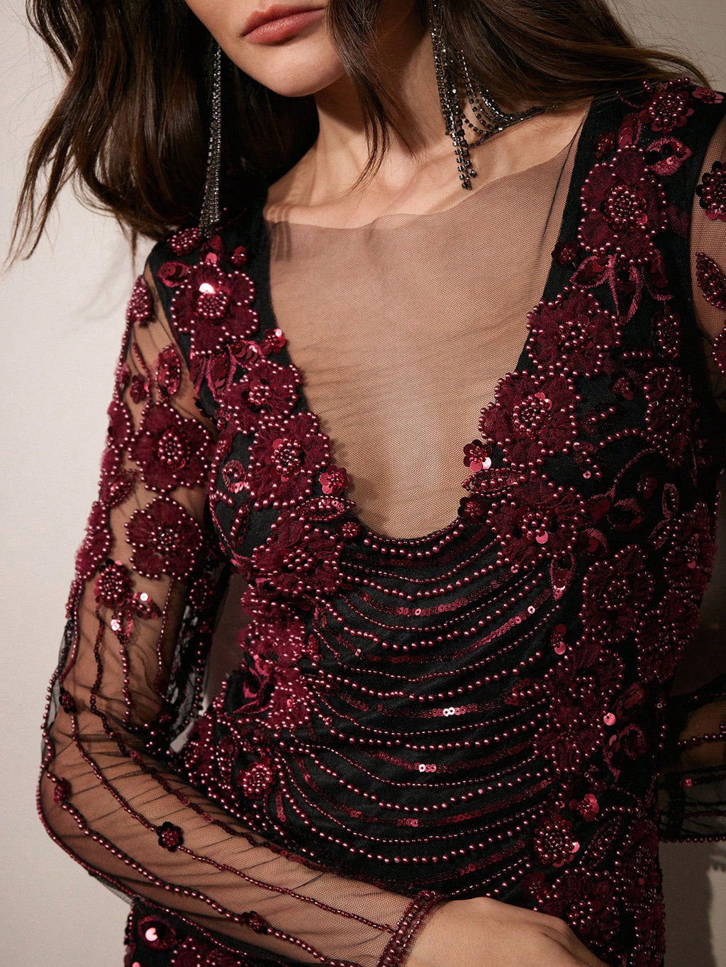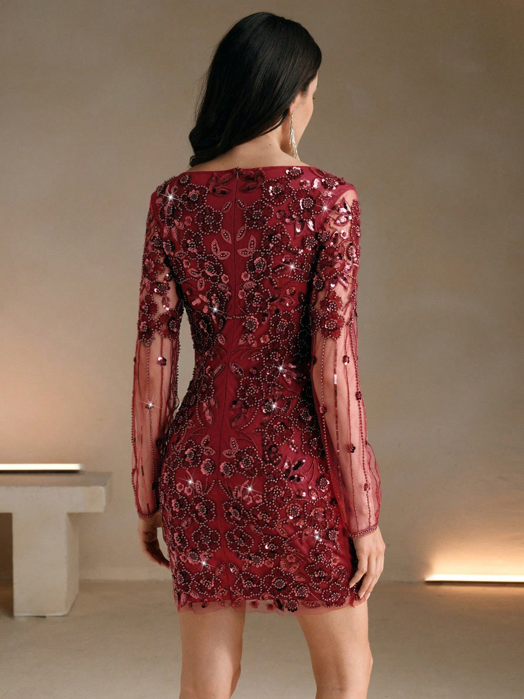 MIU Women's New Arrival Beaded Long Sleeve Dress