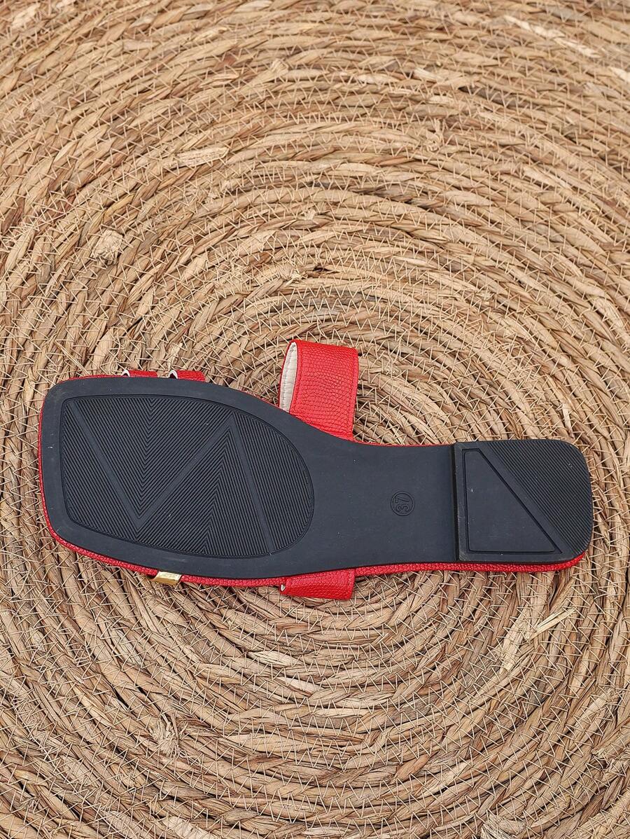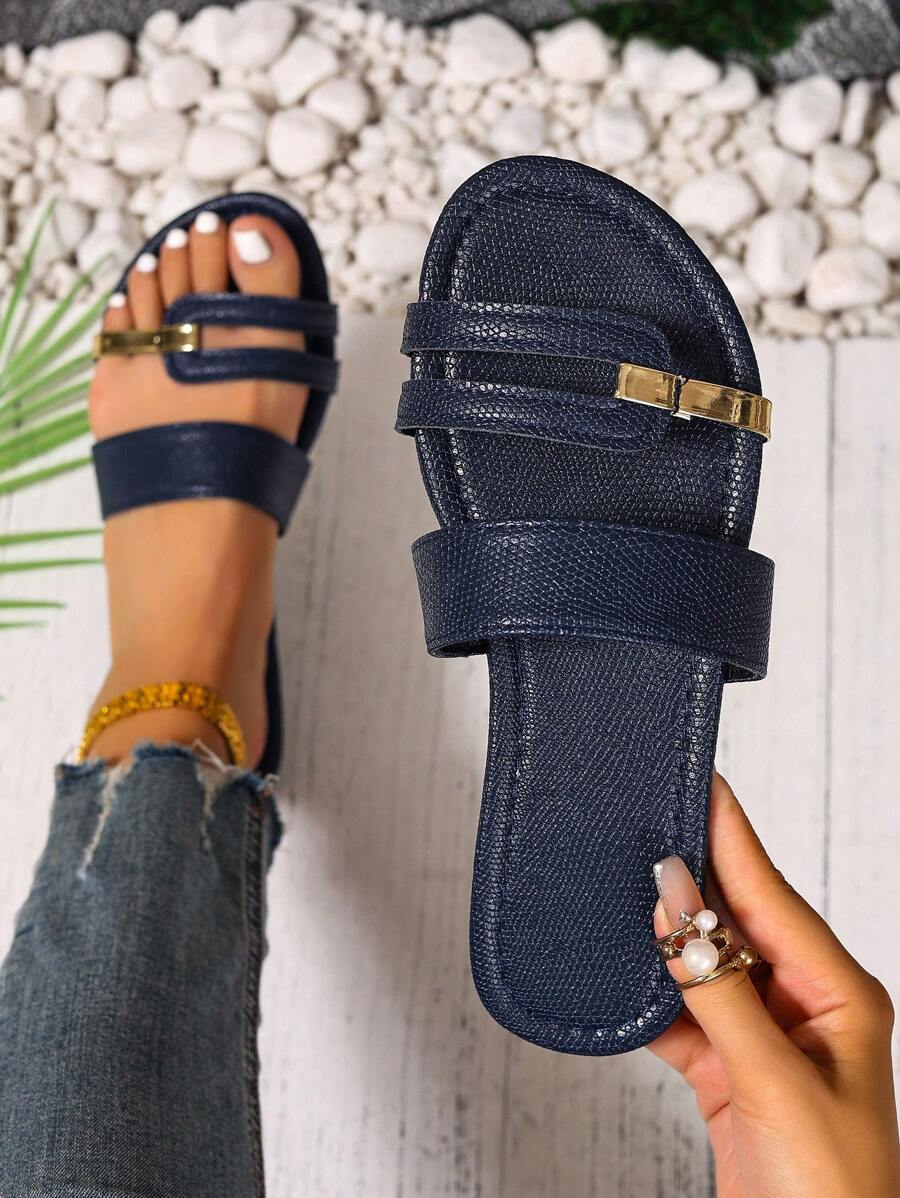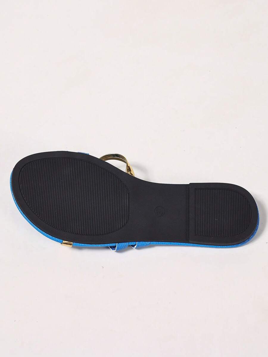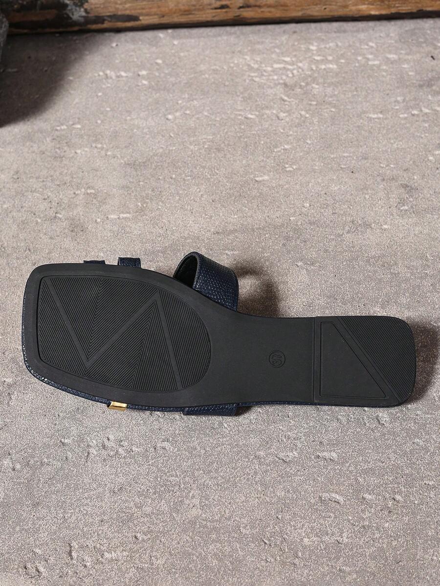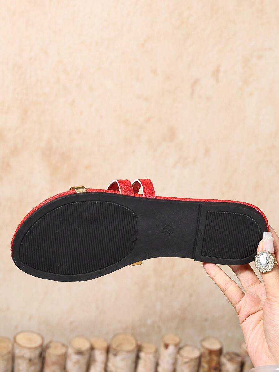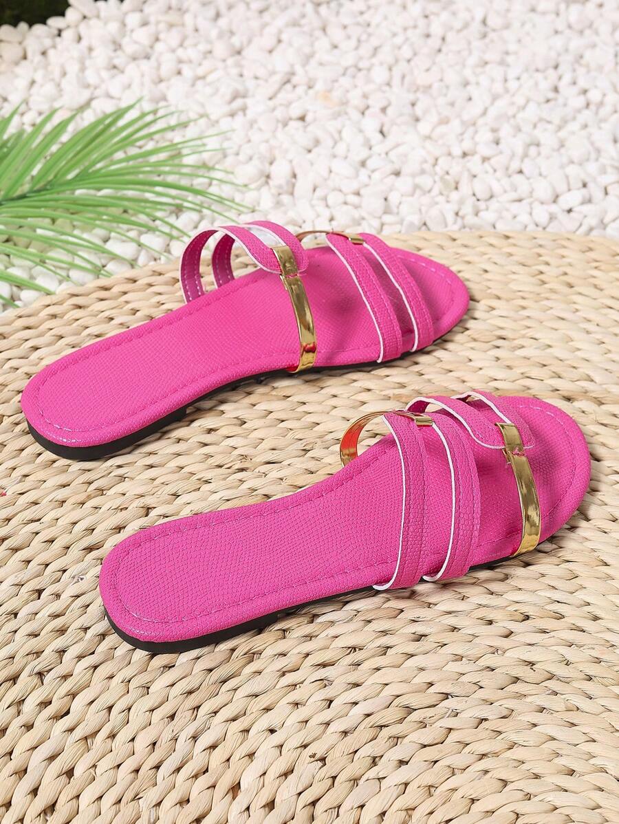 MIU Women's New Brown Square Toe Gold Strap Hollow Open Toe Casual Slip-On Sandals For Summer Vacation, Beach, Daily Wear