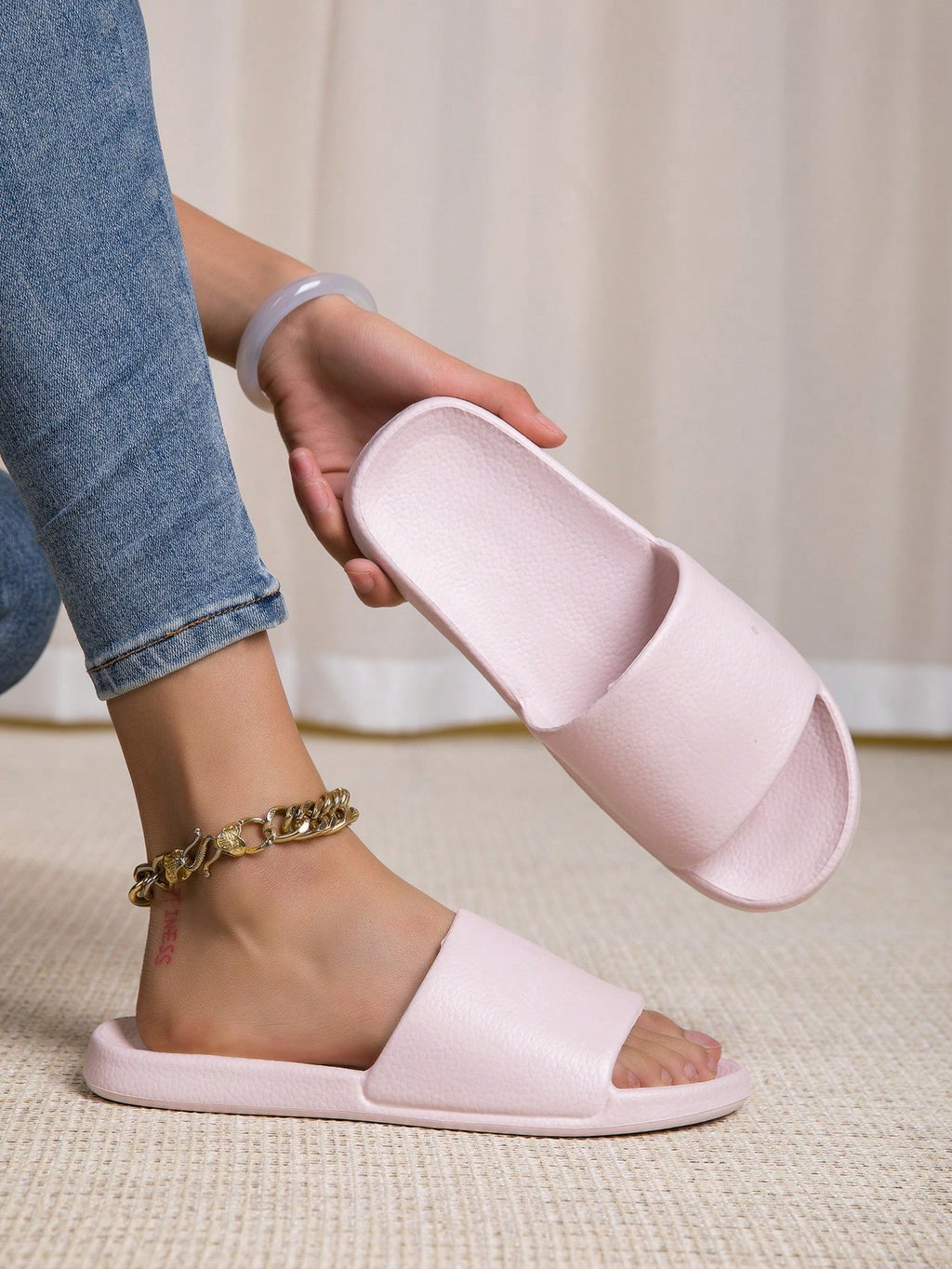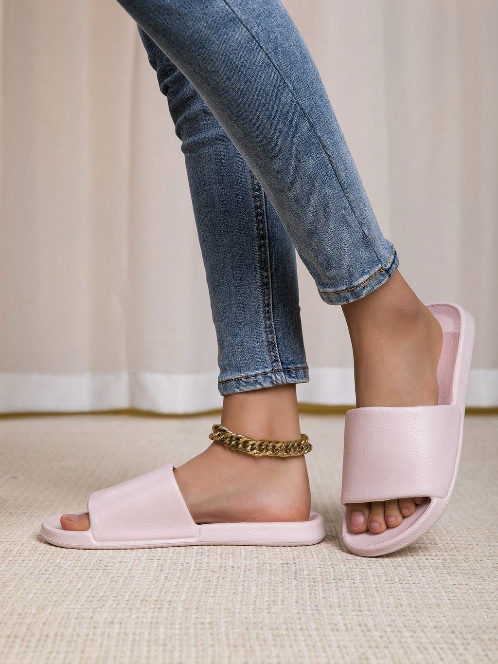 MIU Women's Open Toe Flat Simple Casual Solid Color EVA Anti-Slip Indoor Slippers, Suitable For Home, Bathroom