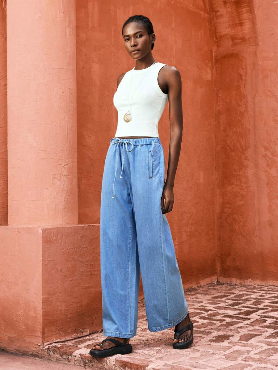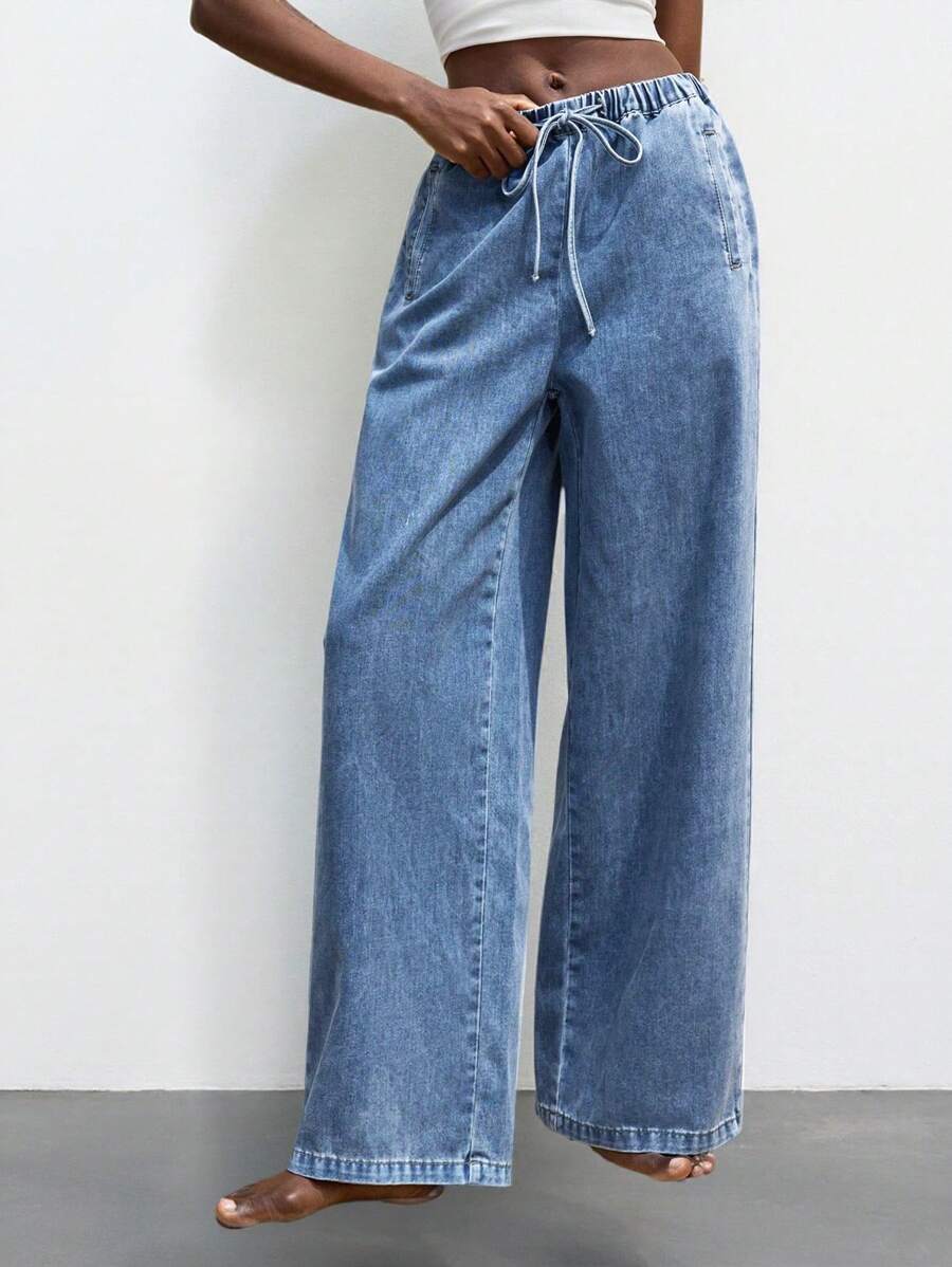 MIU Women's Relaxed Waist Blue Jeans, Lightweight