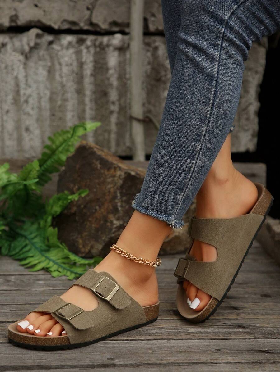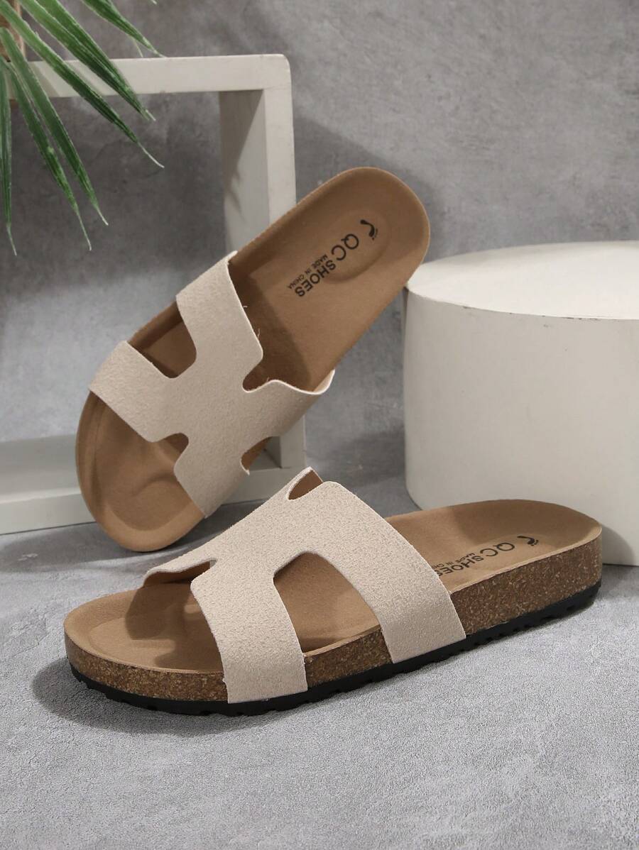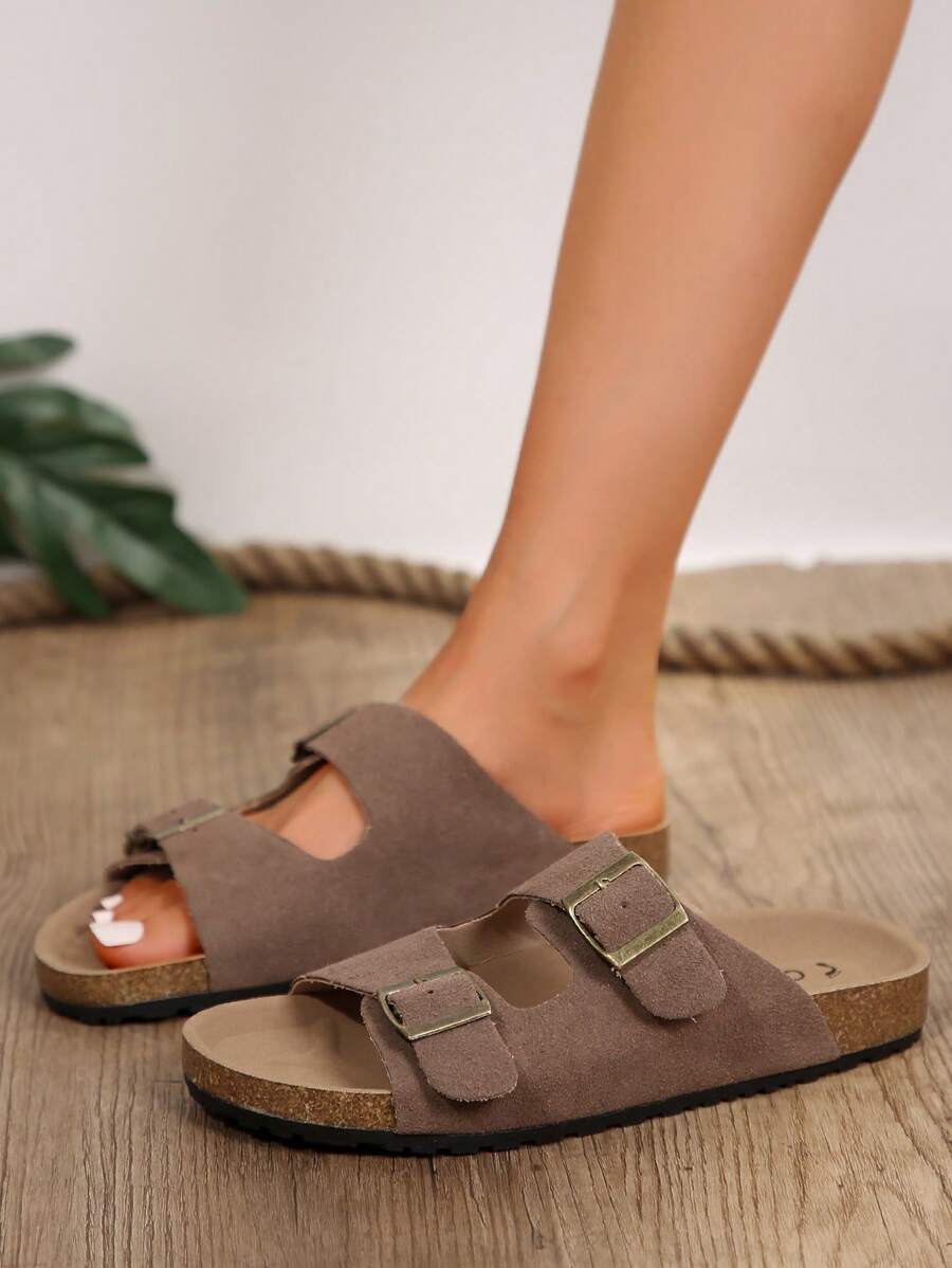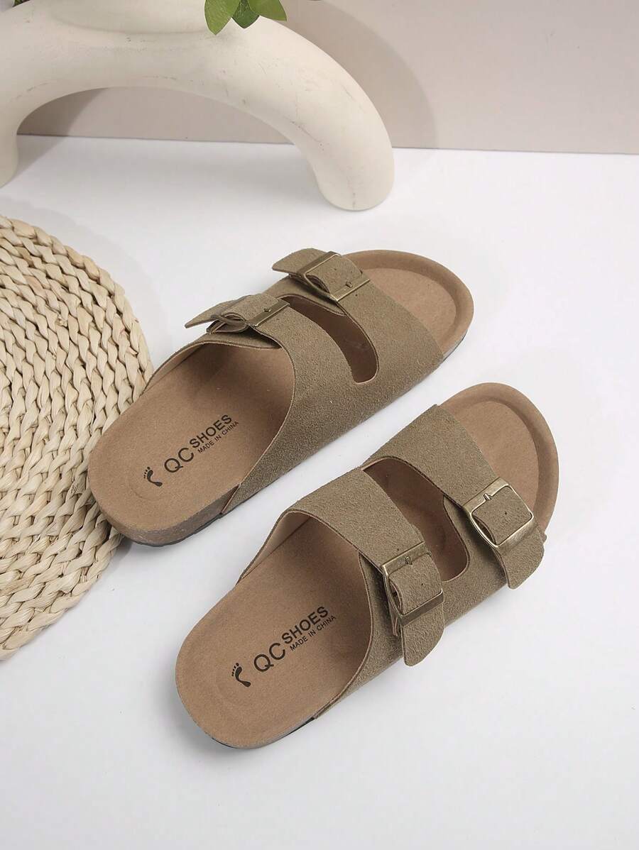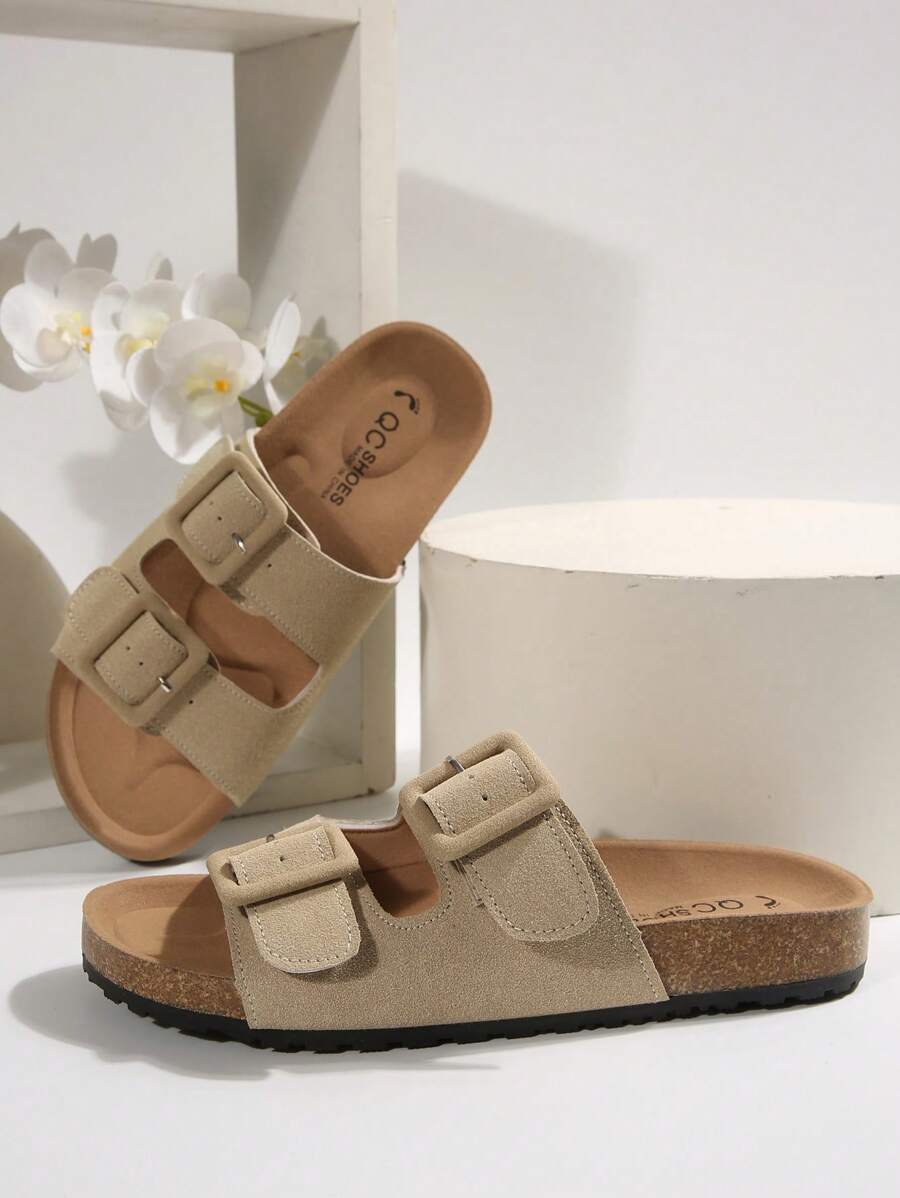 MIU Women's Simple Summer Open Back Comfortable Holiday Buckle Flat Mules Sandals In Beige Color