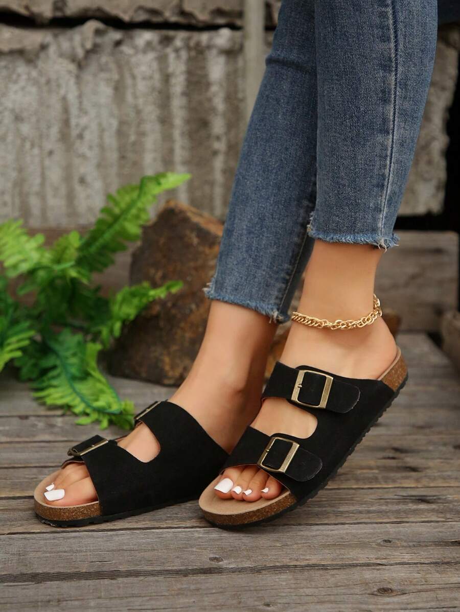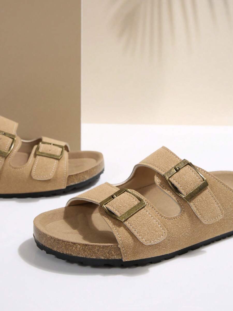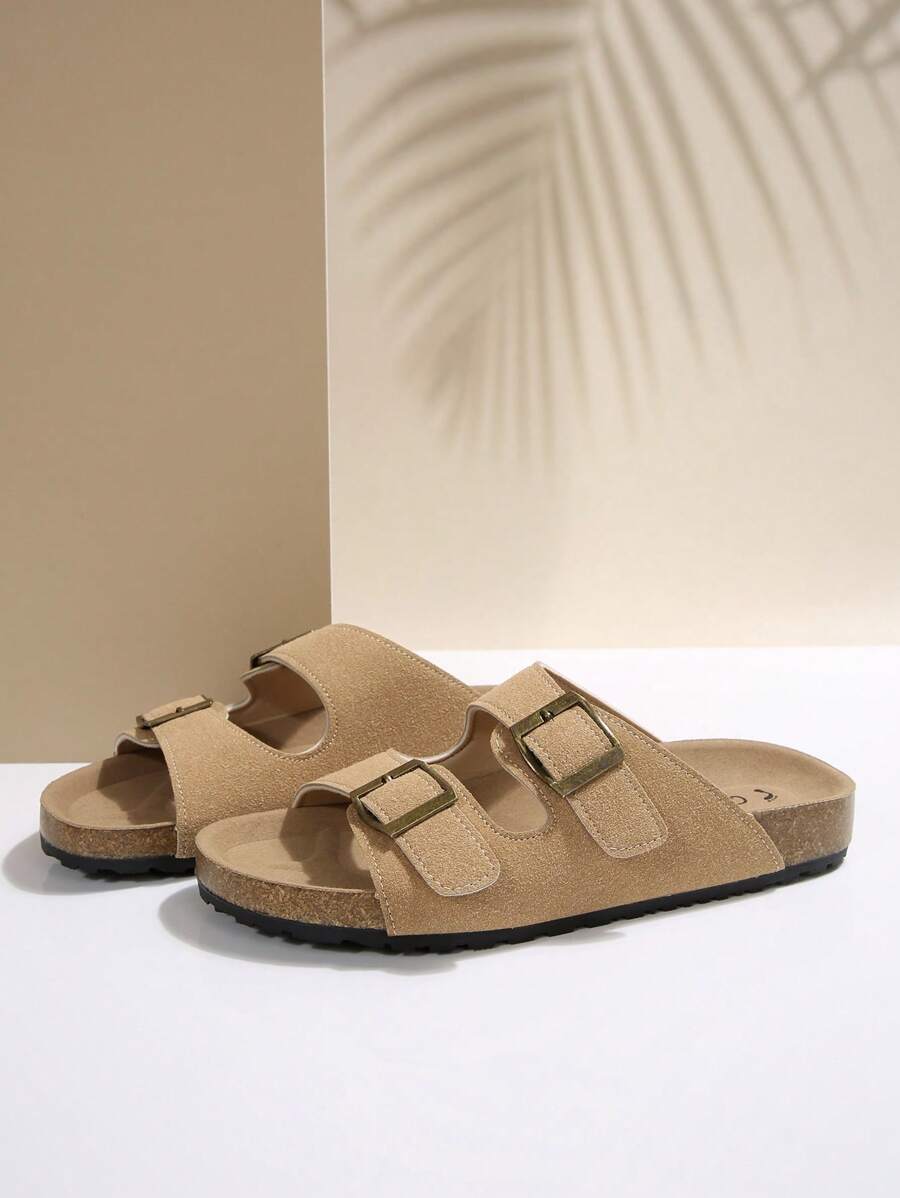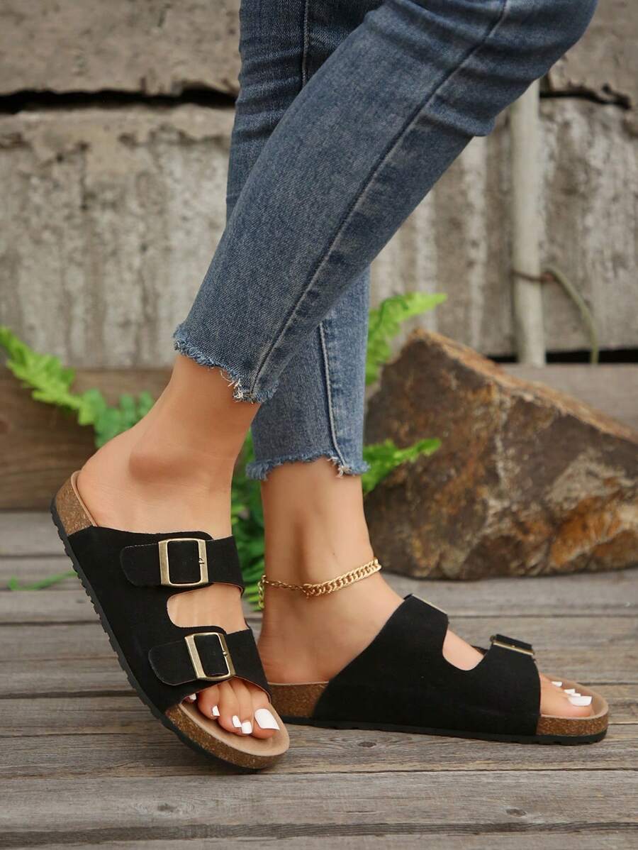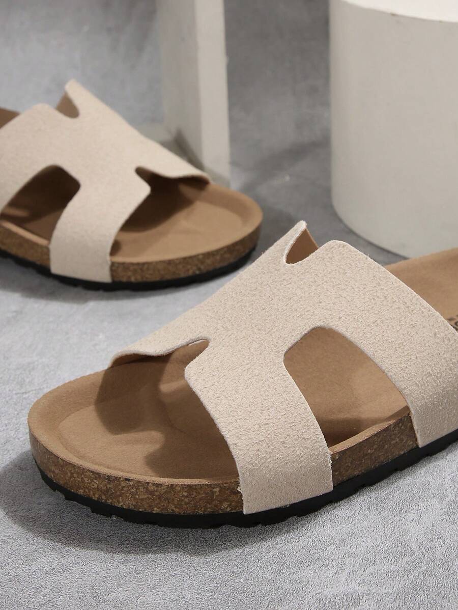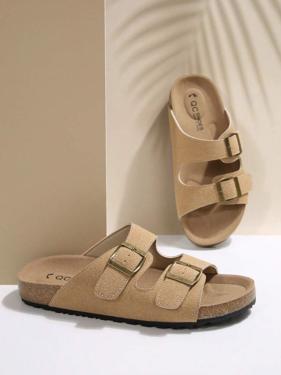 MIU Women's Simple Summer Open Back Comfortable Holiday Buckle Flat Mules Sandals In Beige Color