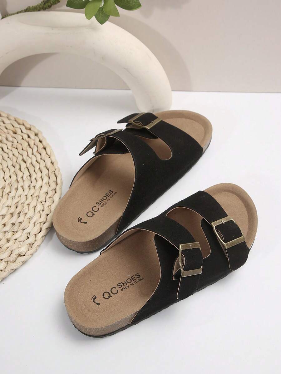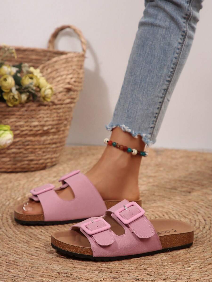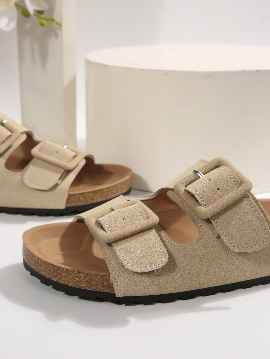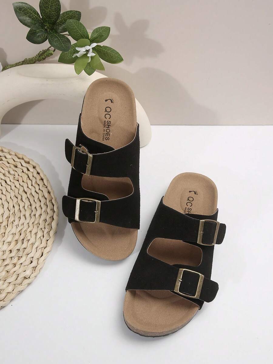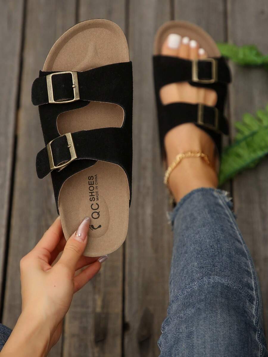MIU Women's Simple Summer Open Back Comfortable Holiday Buckle Flat Mules Sandals In Beige Color