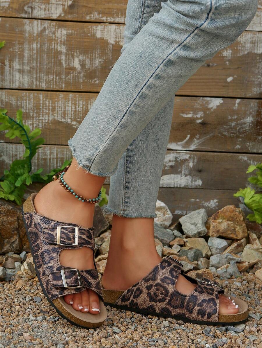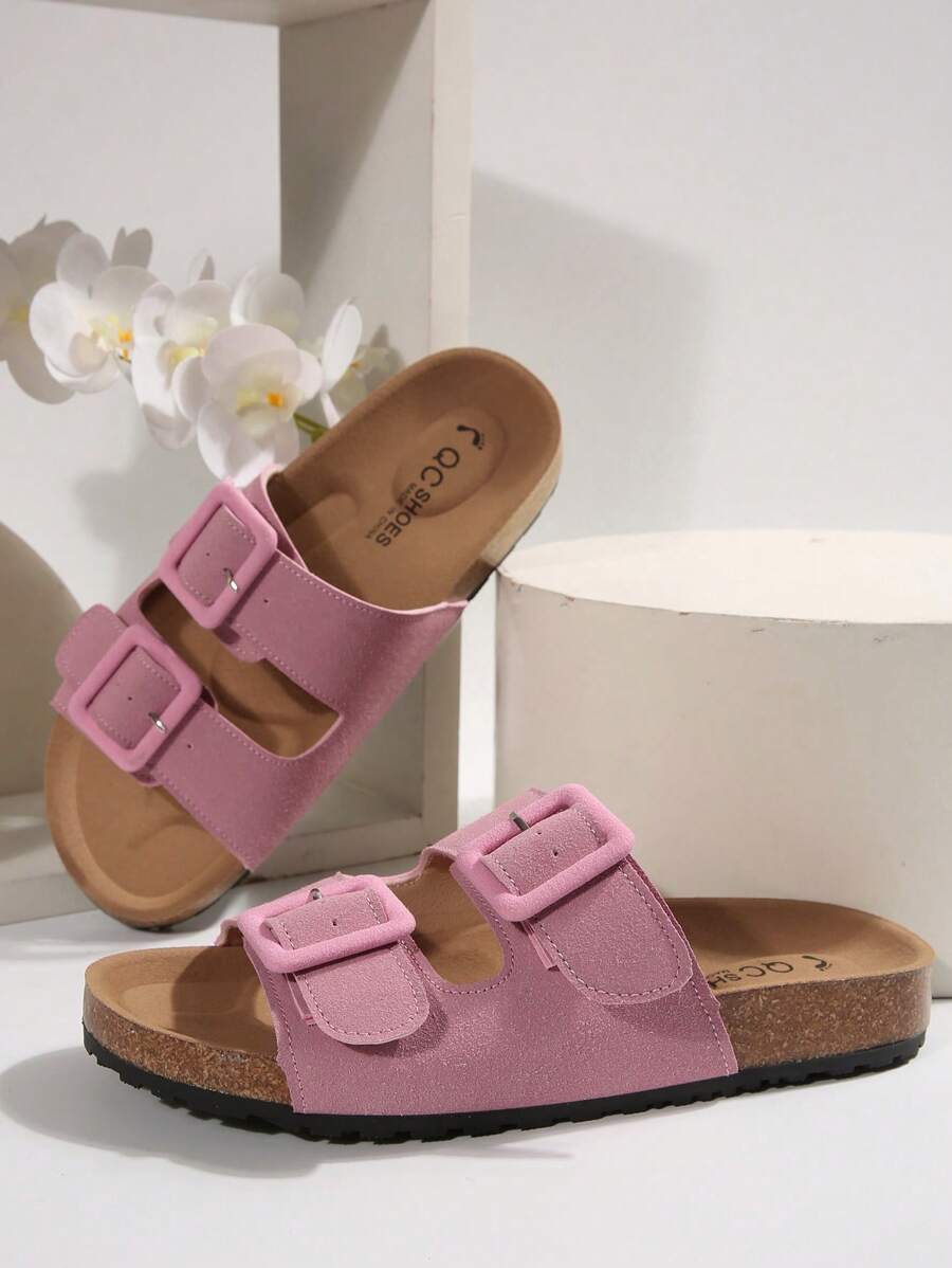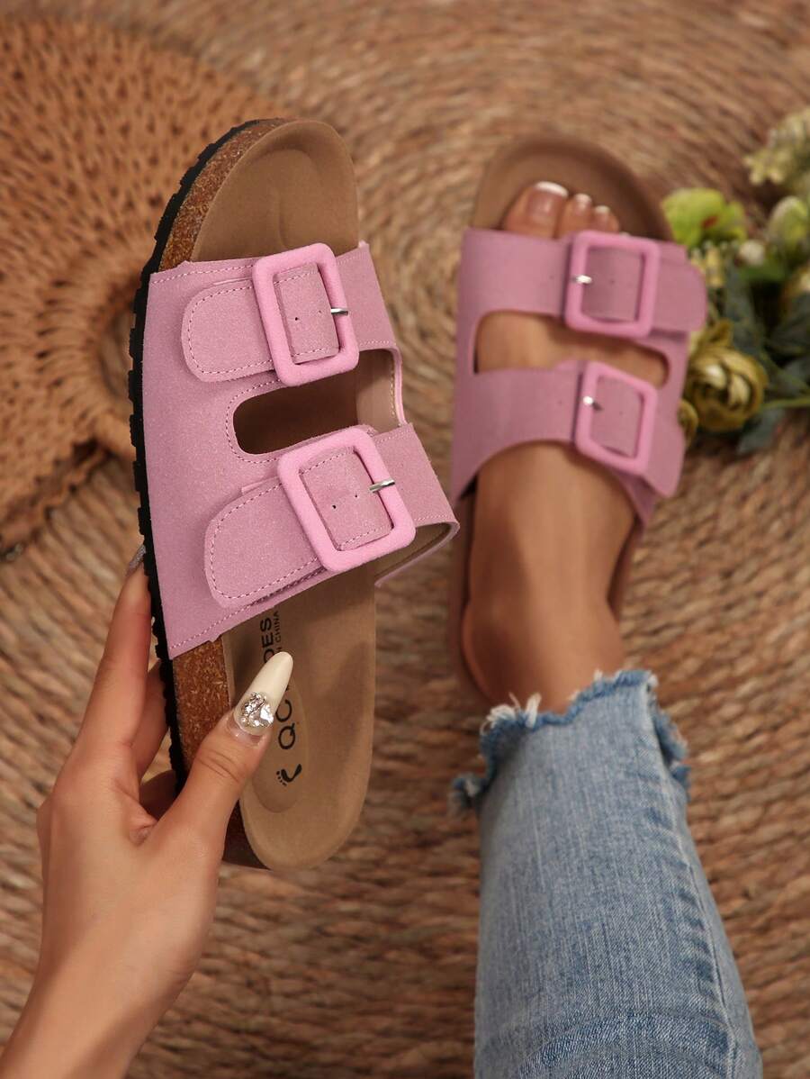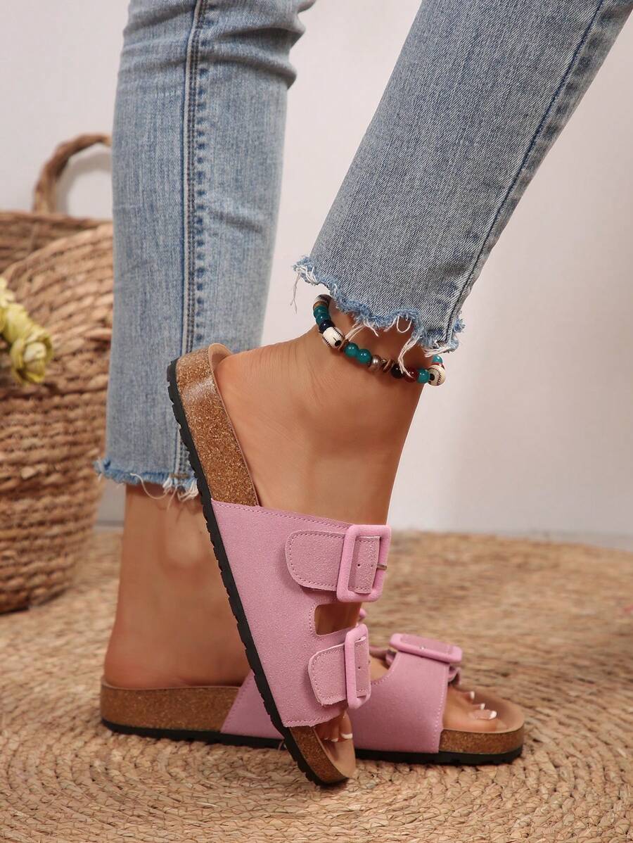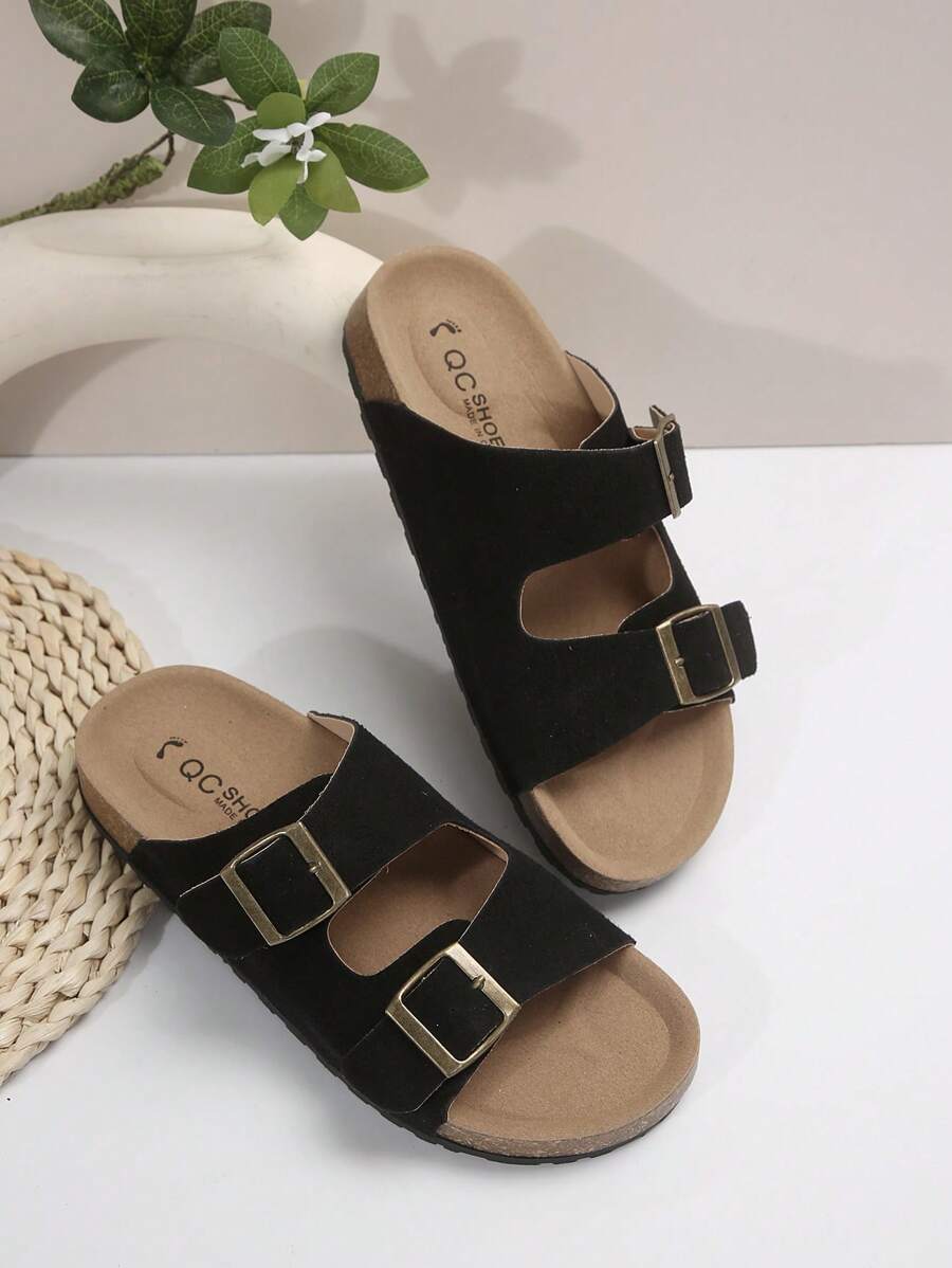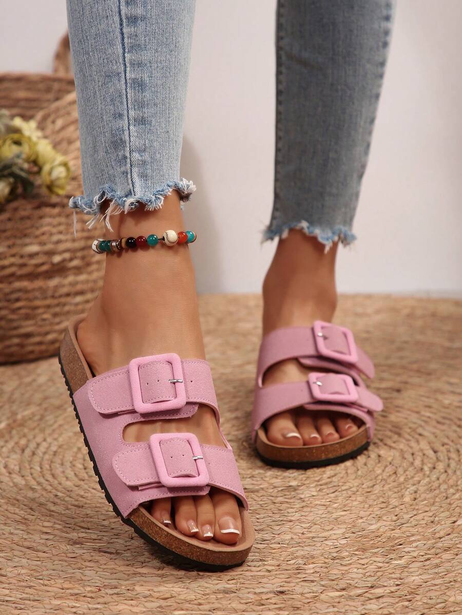 MIU Women's Simple Summer Open Back Comfortable Holiday Buckle Flat Mules Sandals In Beige Color