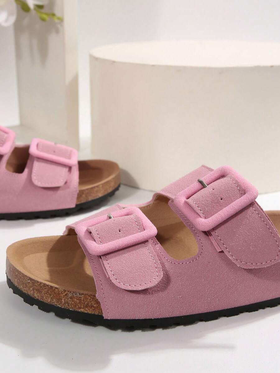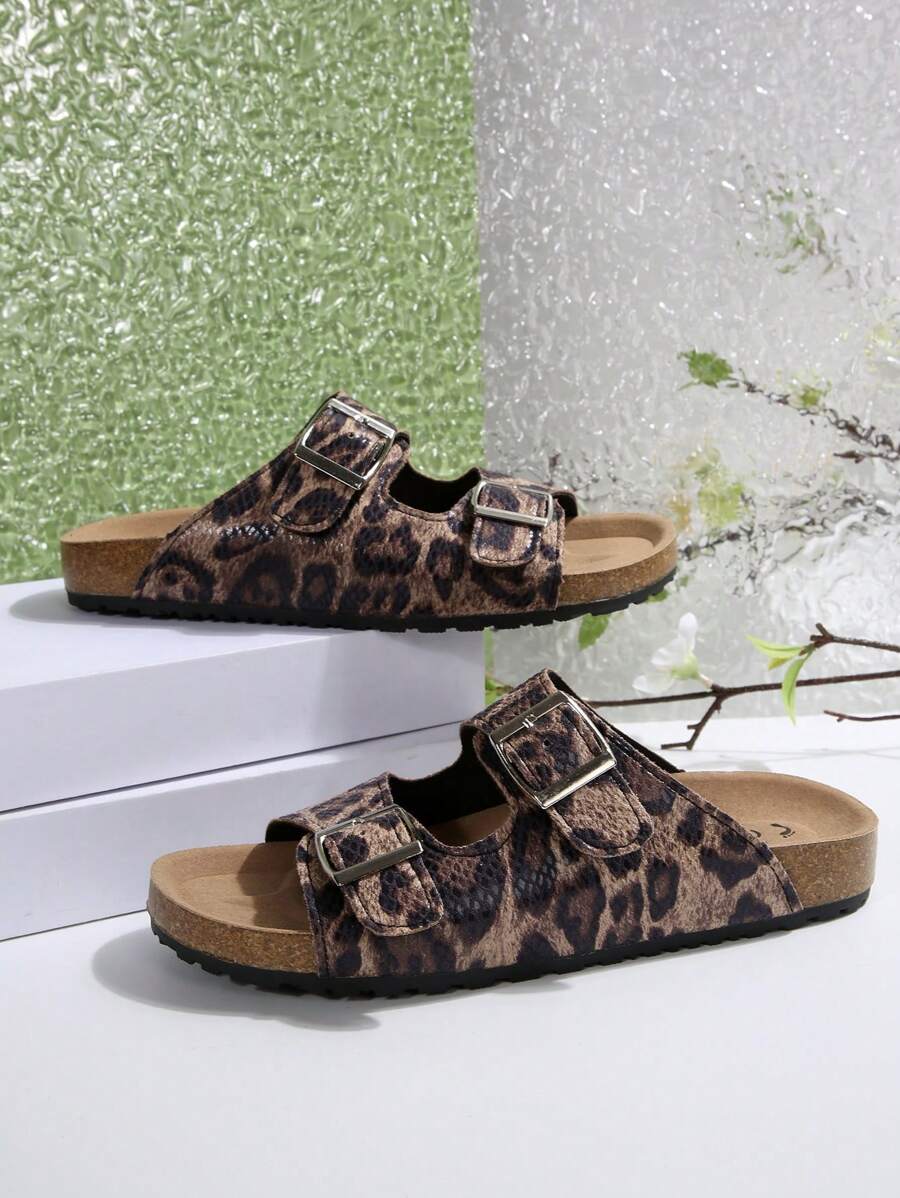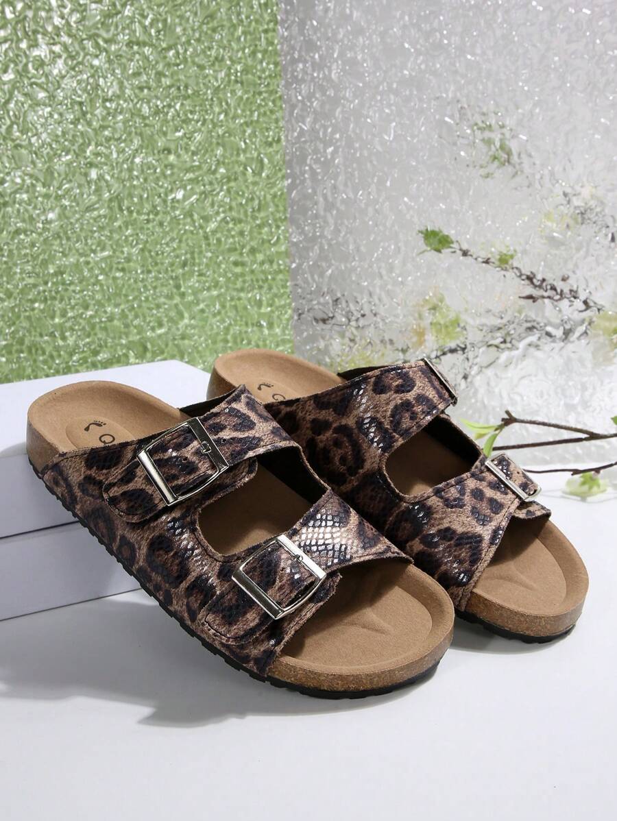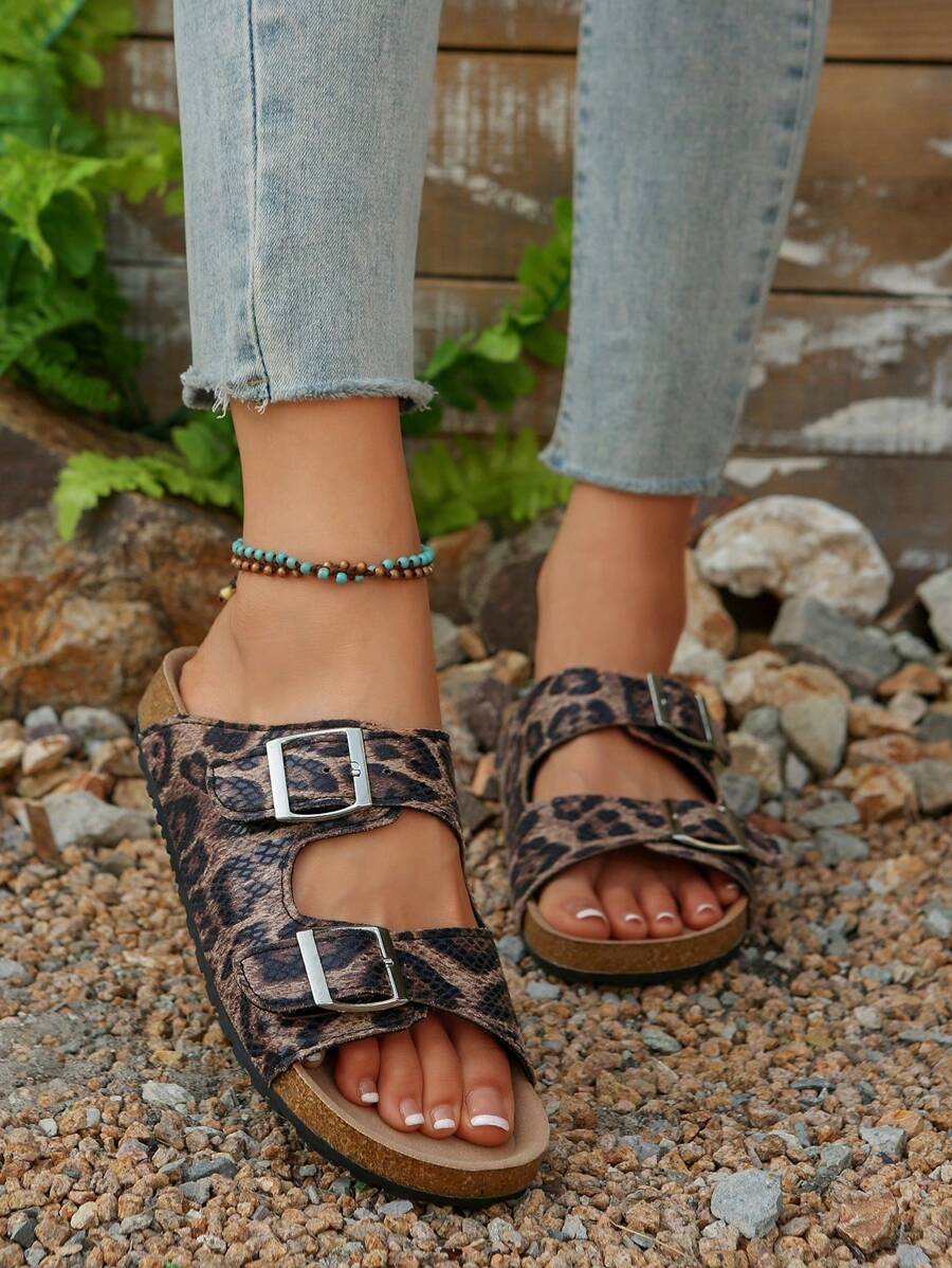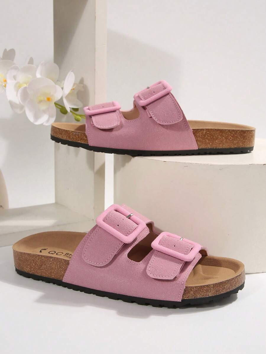 MIU Women's Simple Summer Open Back Comfortable Holiday Buckle Flat Mules Sandals In Beige Color