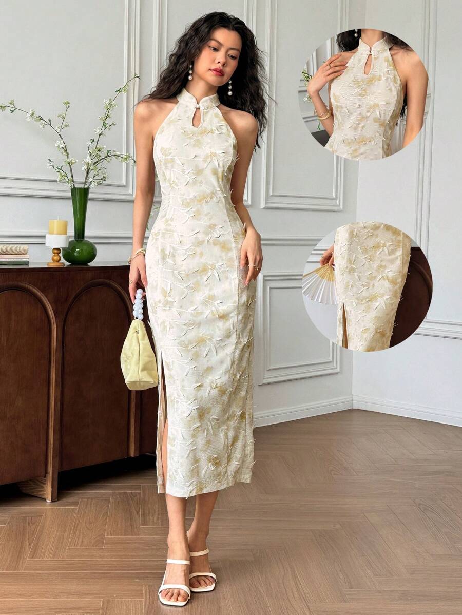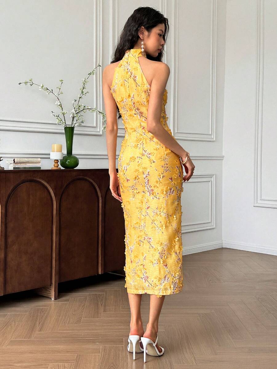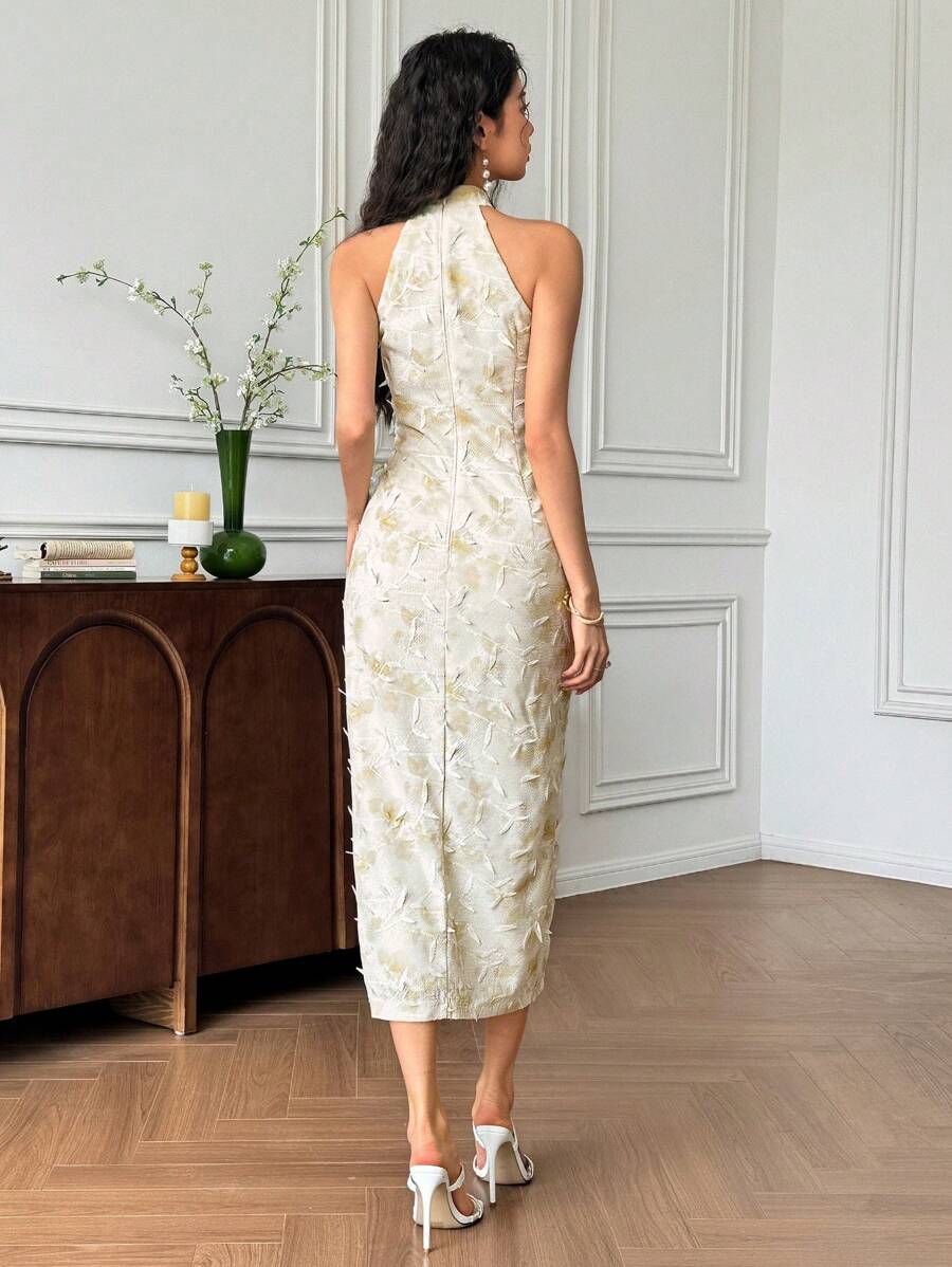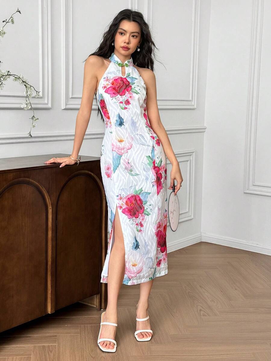 MIU Women's Sleeveless Button Design Branch Print Long Dress, Elegant Women Casual Dress Women Short Dresses Summer Women Birthday Outfit Women S Clothes Women Dresses Elegant Gown