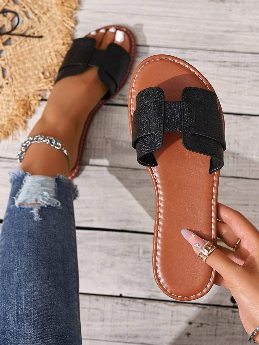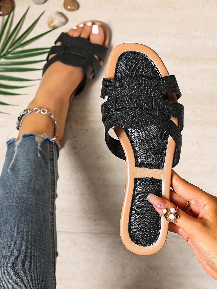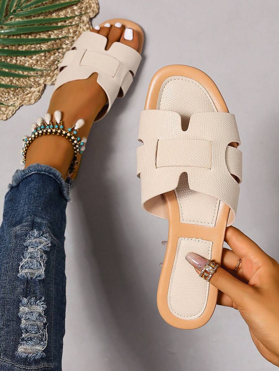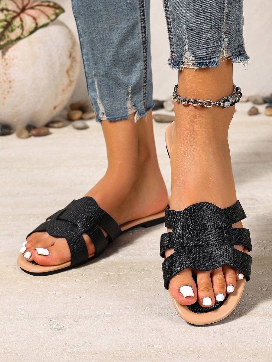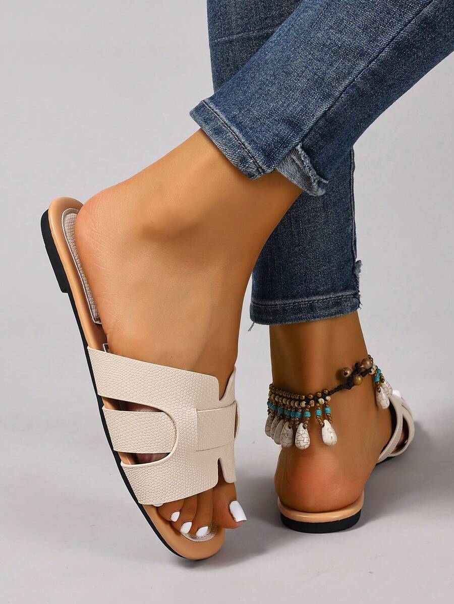 MIU Women's Slides Sandals, Casual Flat Slippers, Woven Roman Style, Open Toe, Suitable For Summer, Spring