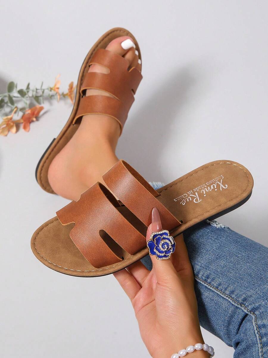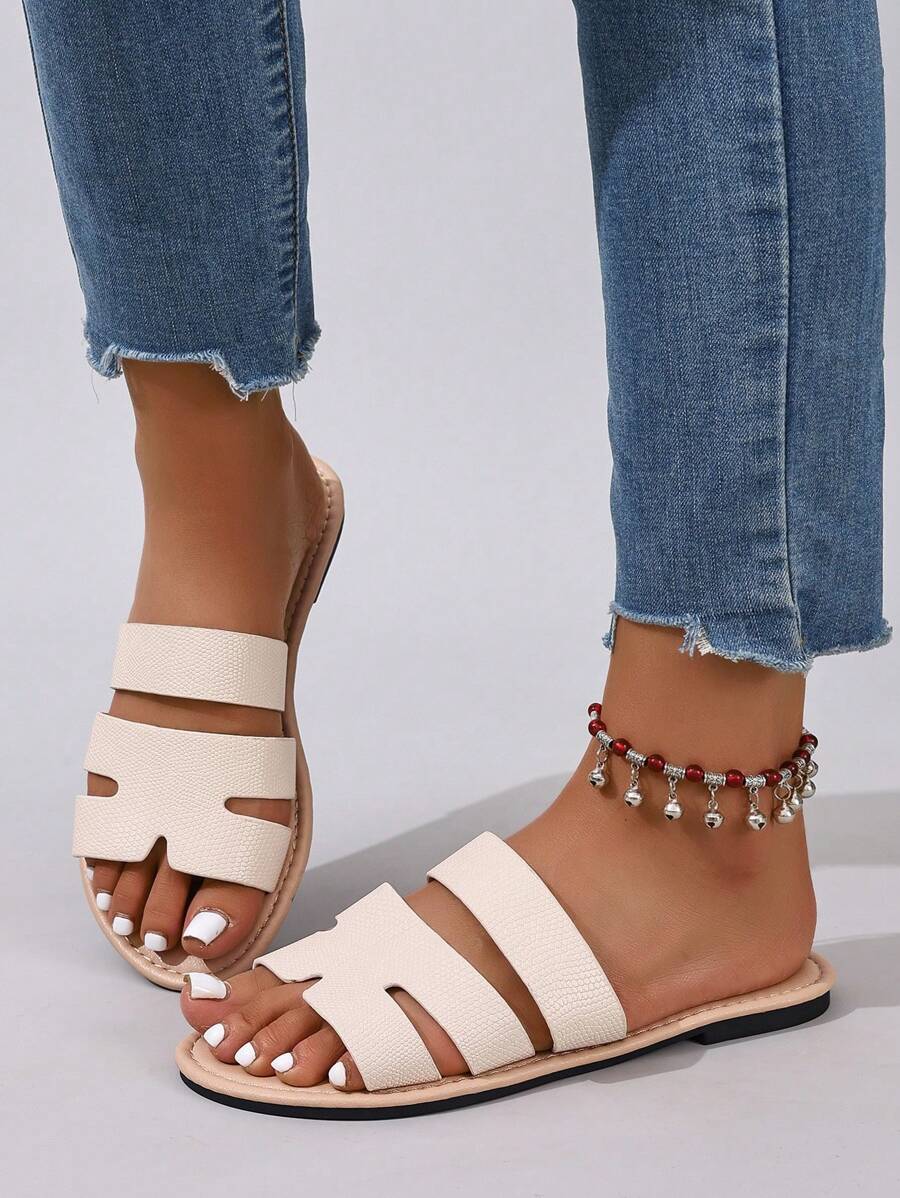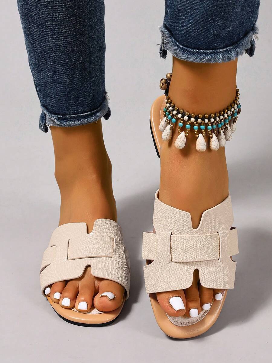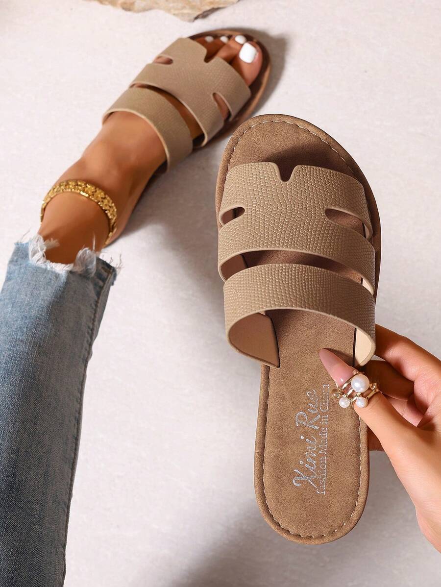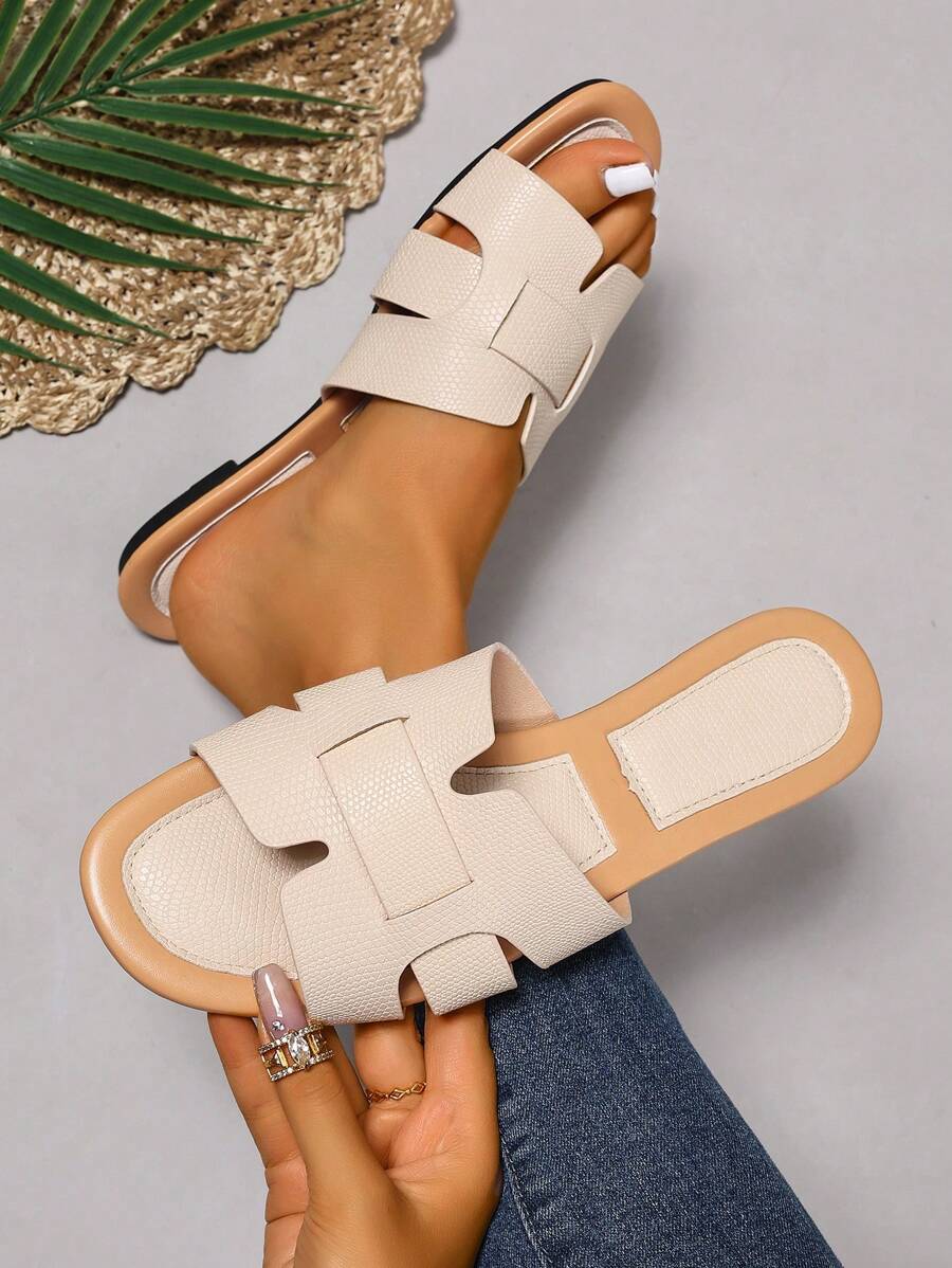 MIU Women's Slides Sandals, Casual Flat Slippers, Woven Roman Style, Open Toe, Suitable For Summer, Spring
