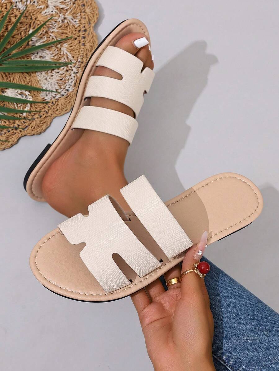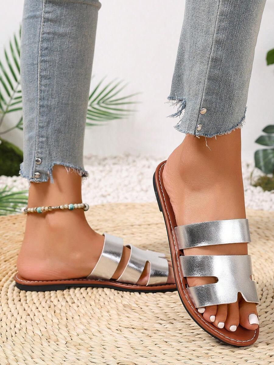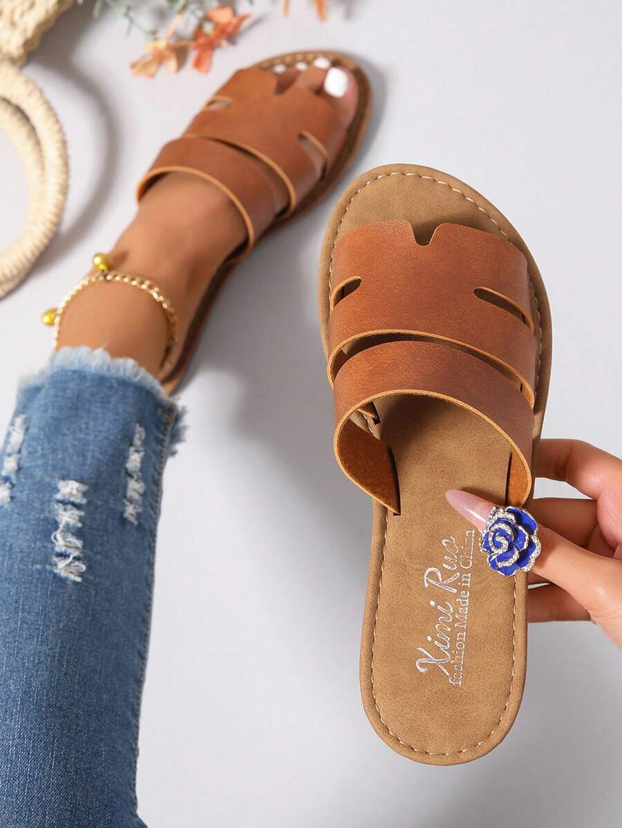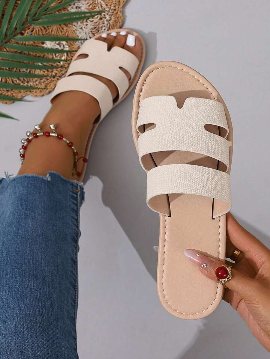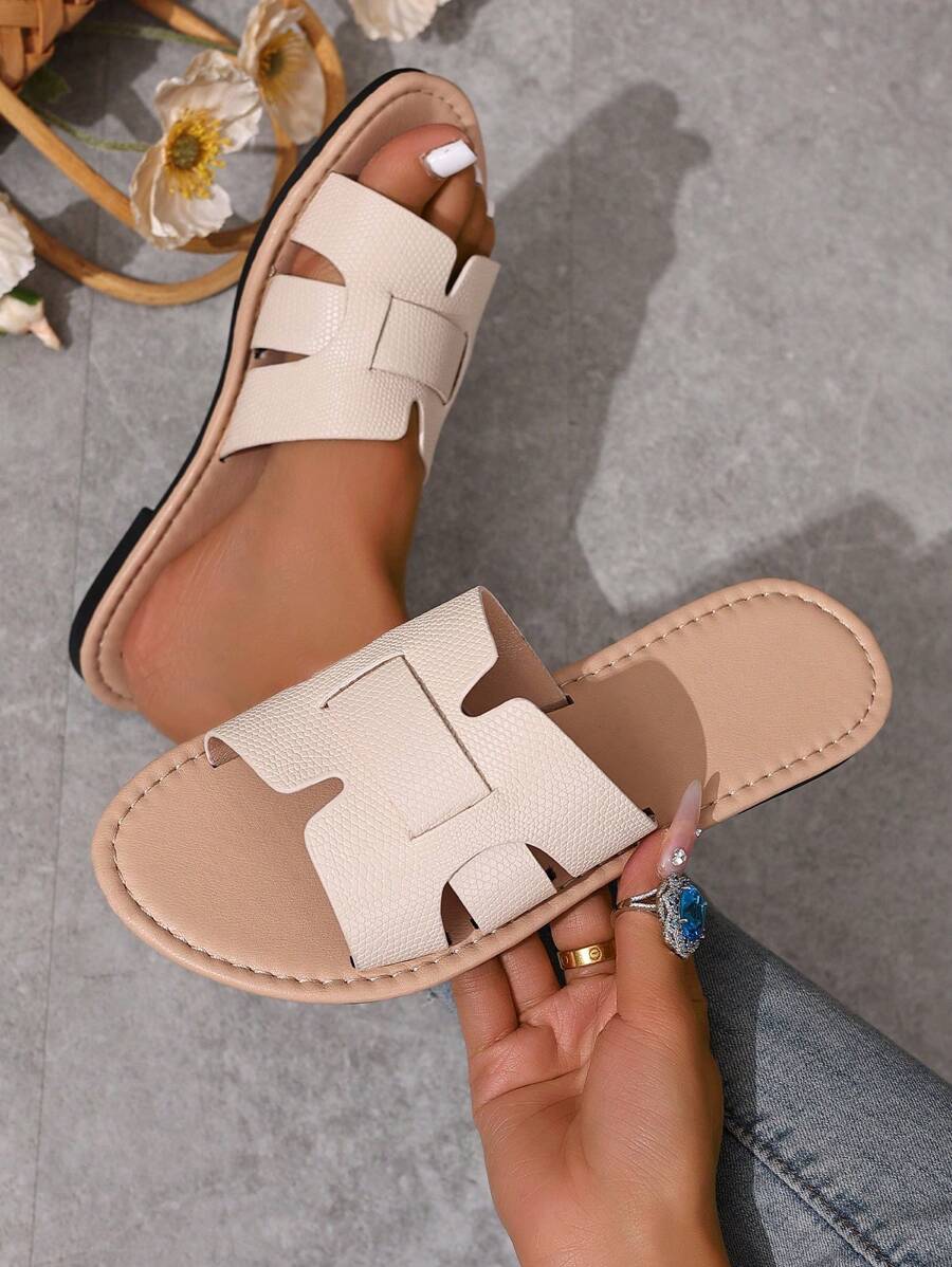 MIU Women's Slides Sandals, Casual Flat Slippers, Woven Roman Style, Open Toe, Suitable For Summer, Spring