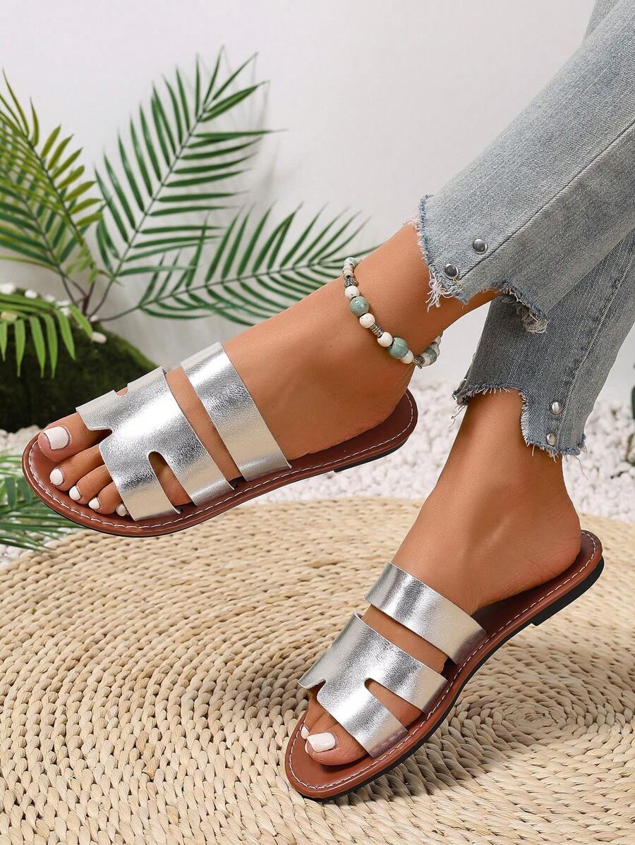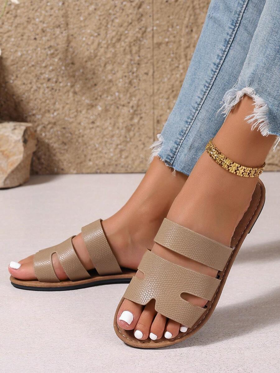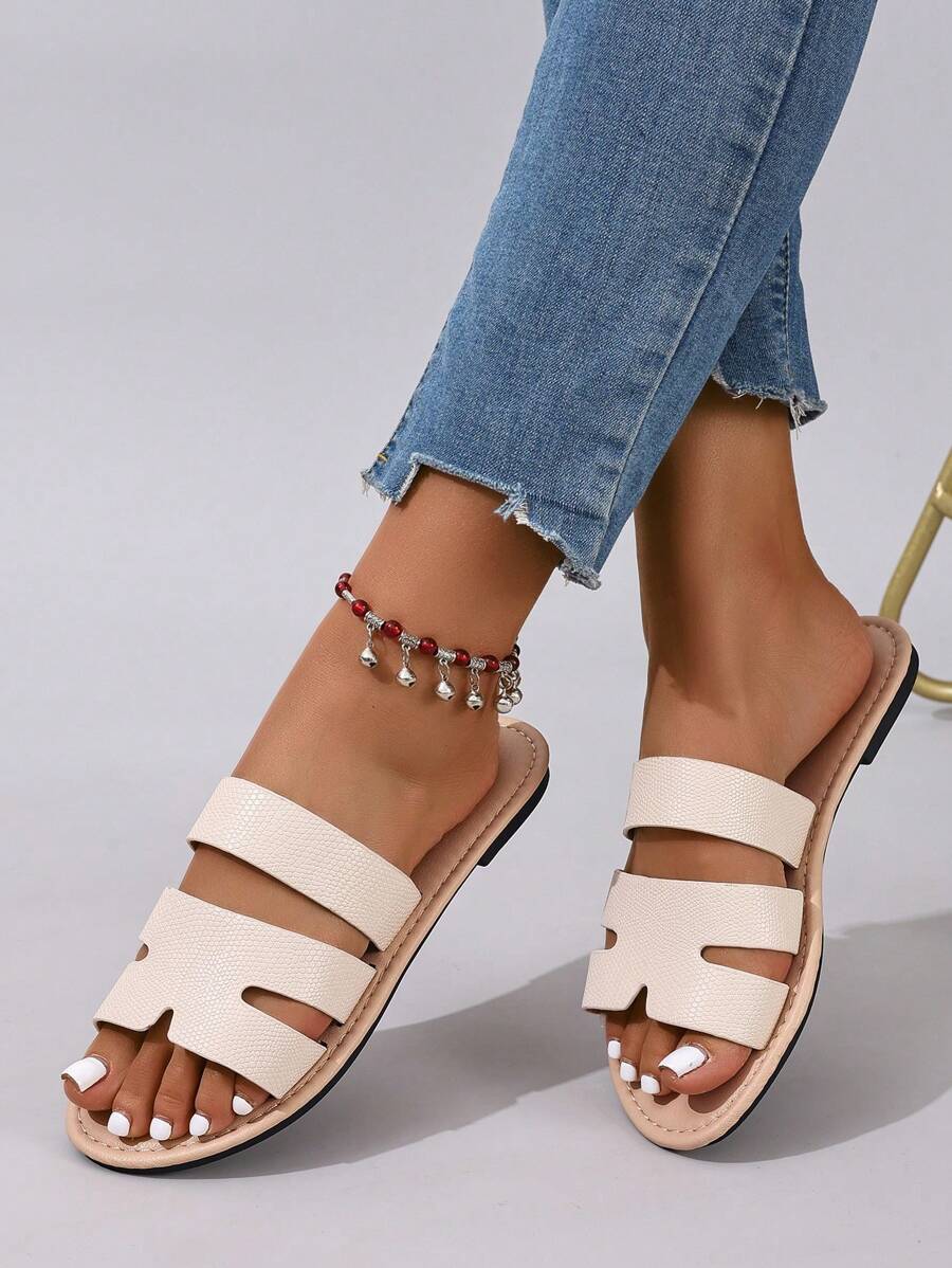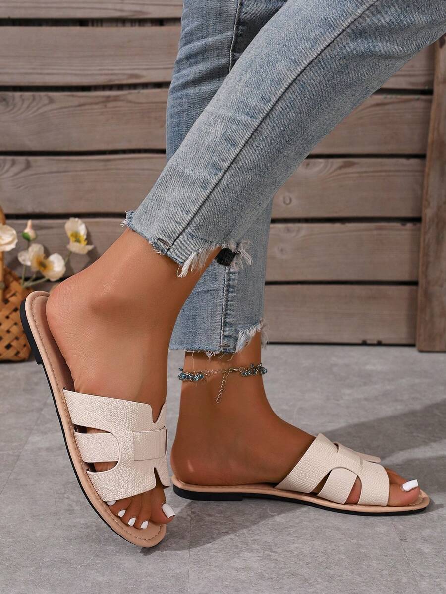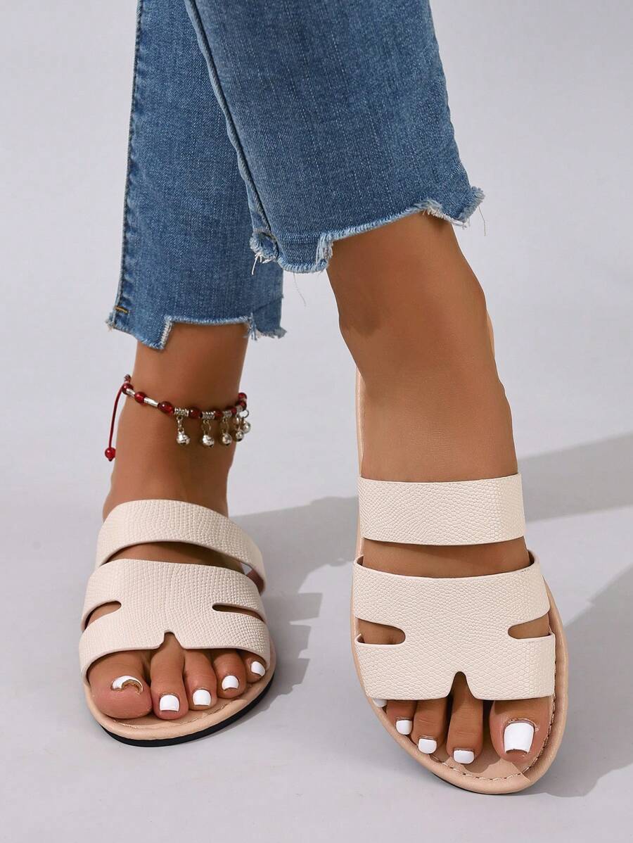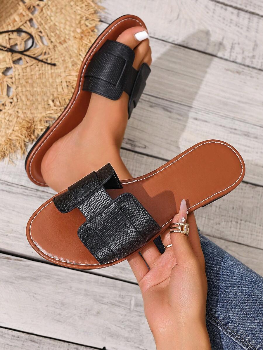 MIU Women's Slides Sandals, Casual Flat Slippers, Woven Roman Style, Open Toe, Suitable For Summer, Spring