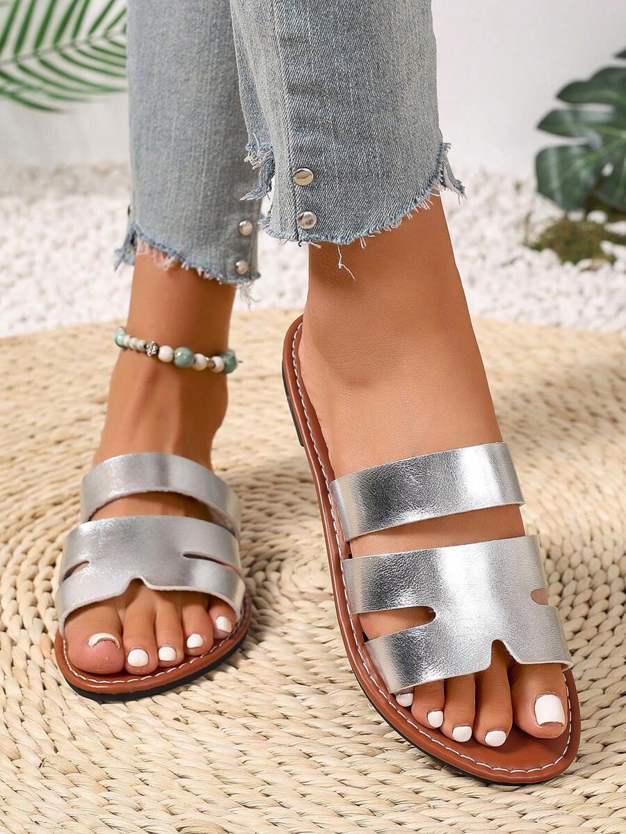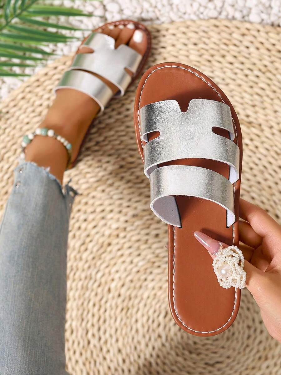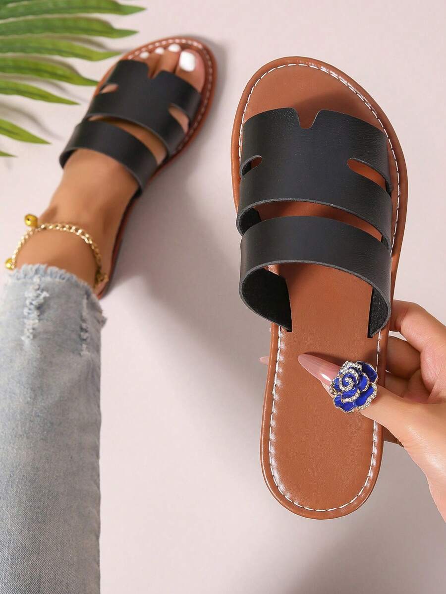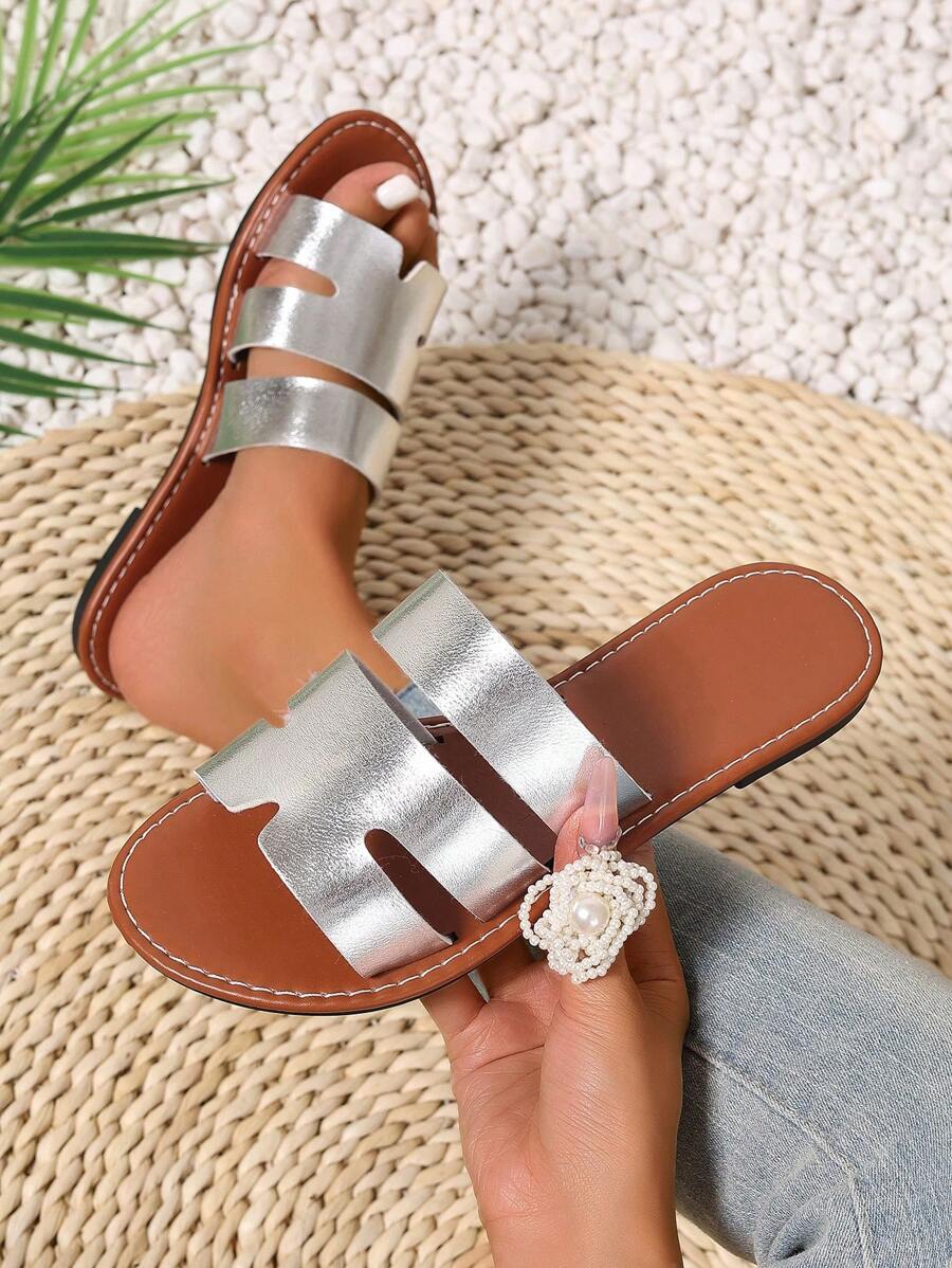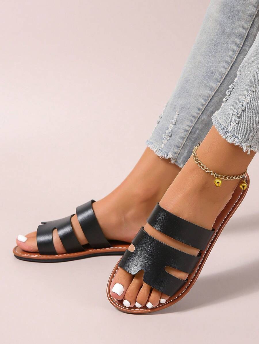 MIU Women's Slides Sandals, Casual Flat Slippers, Woven Roman Style, Open Toe, Suitable For Summer, Spring