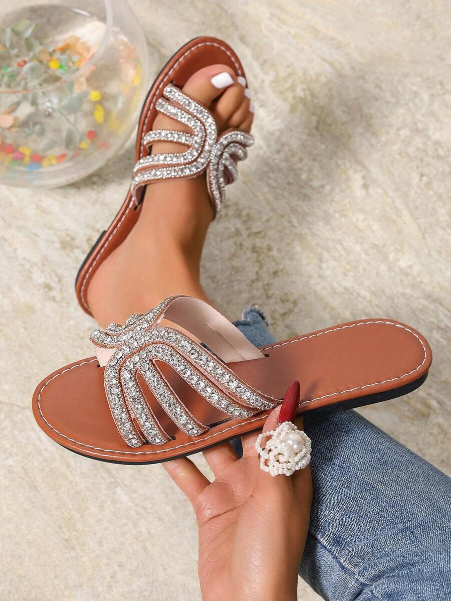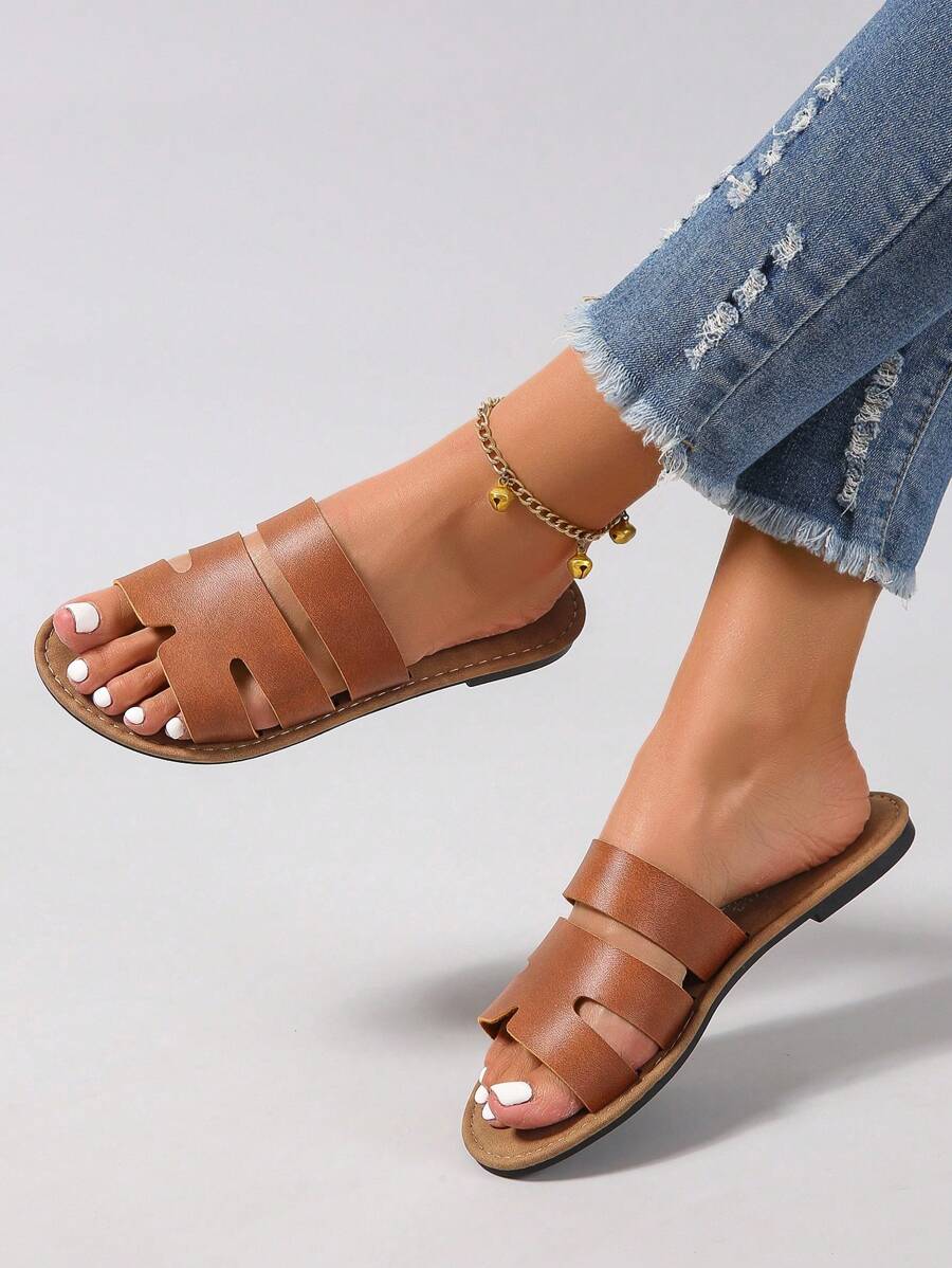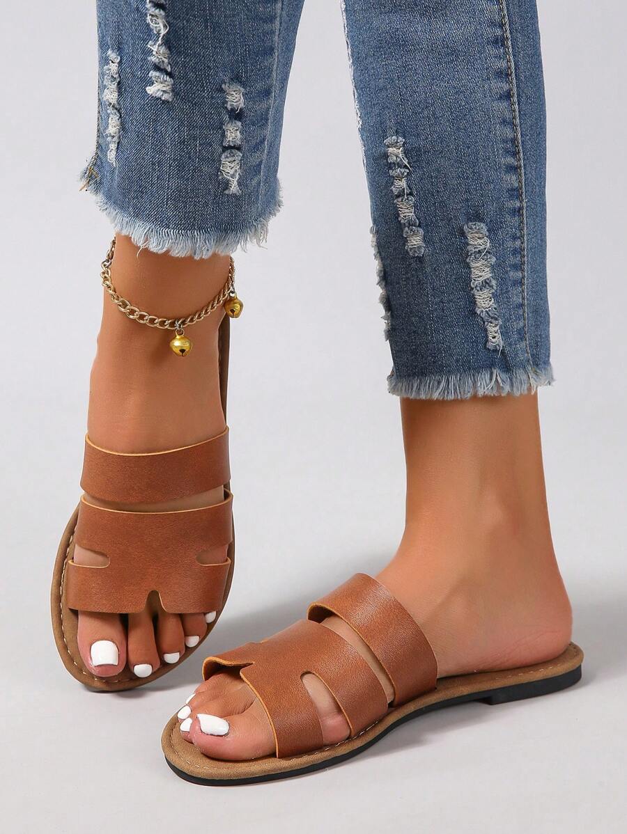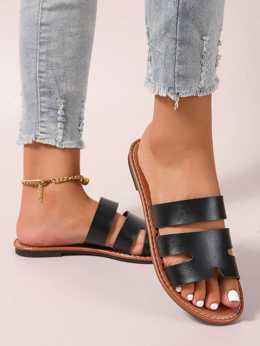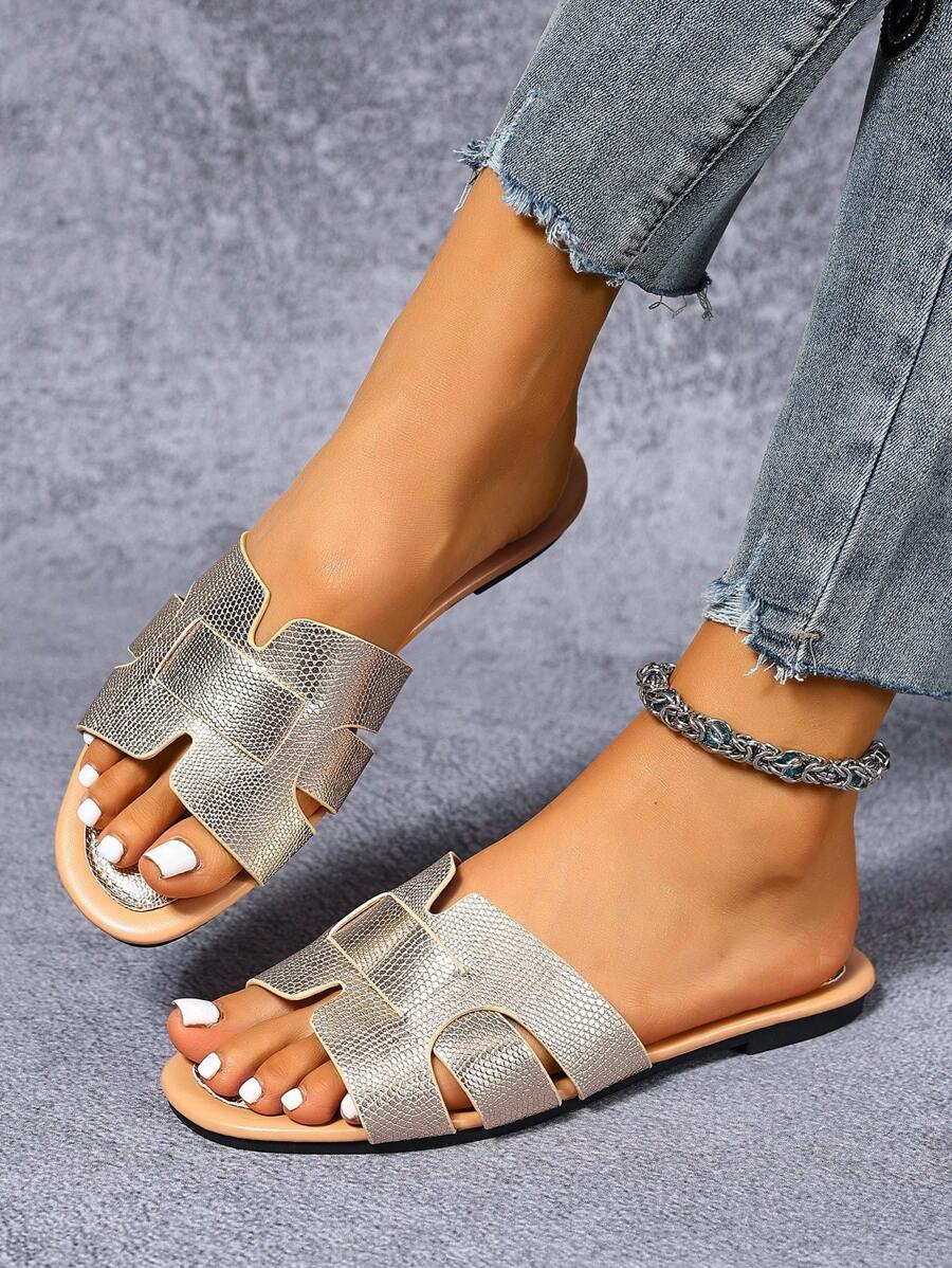 MIU Women's Slides Sandals, Casual Flat Slippers, Woven Roman Style, Open Toe, Suitable For Summer, Spring