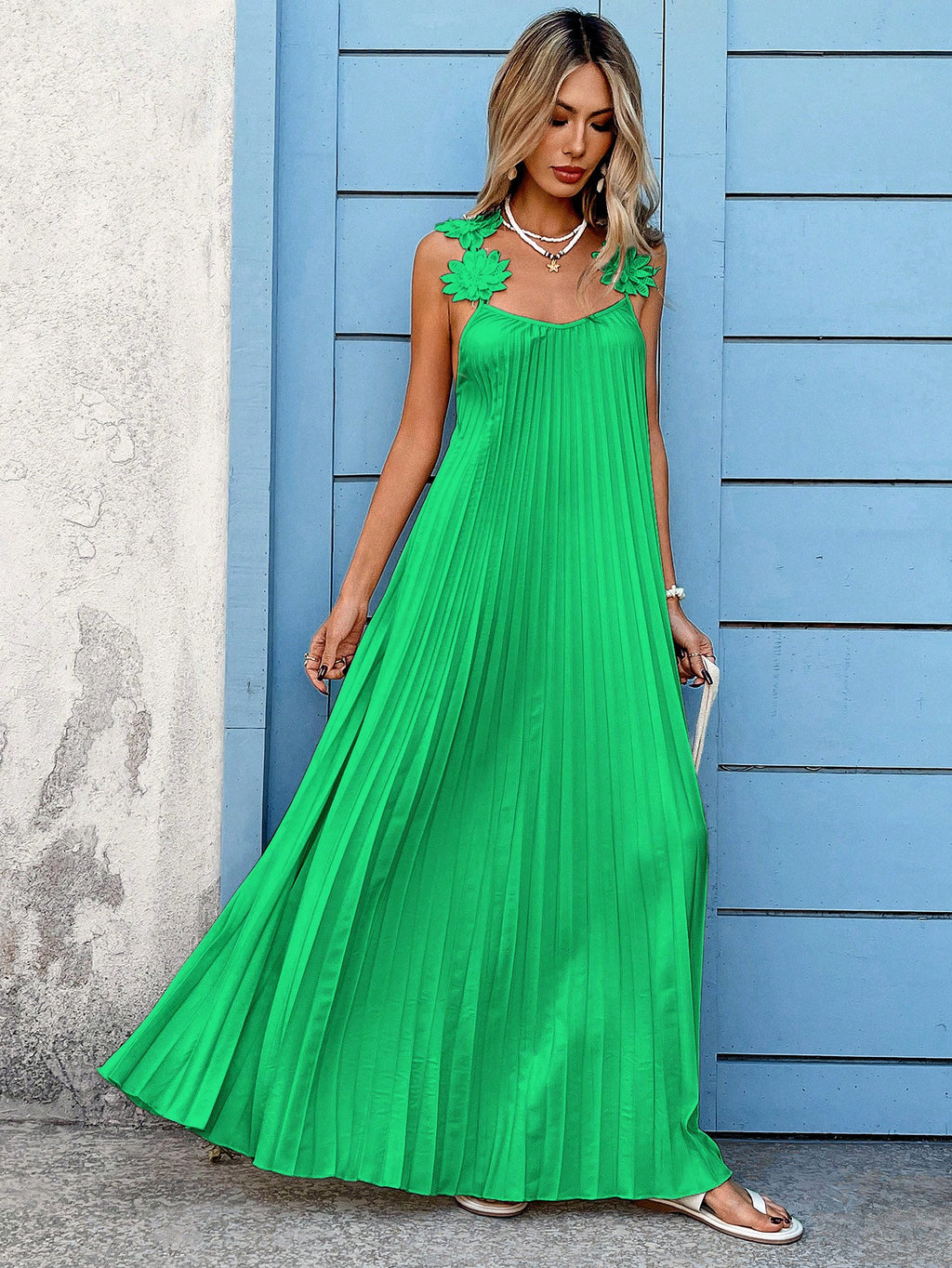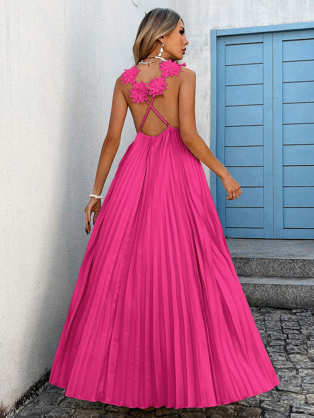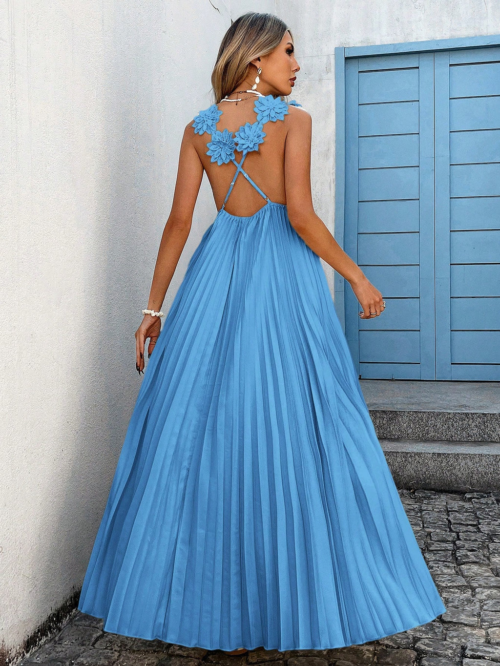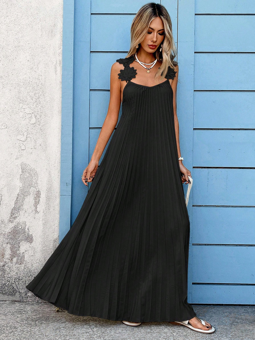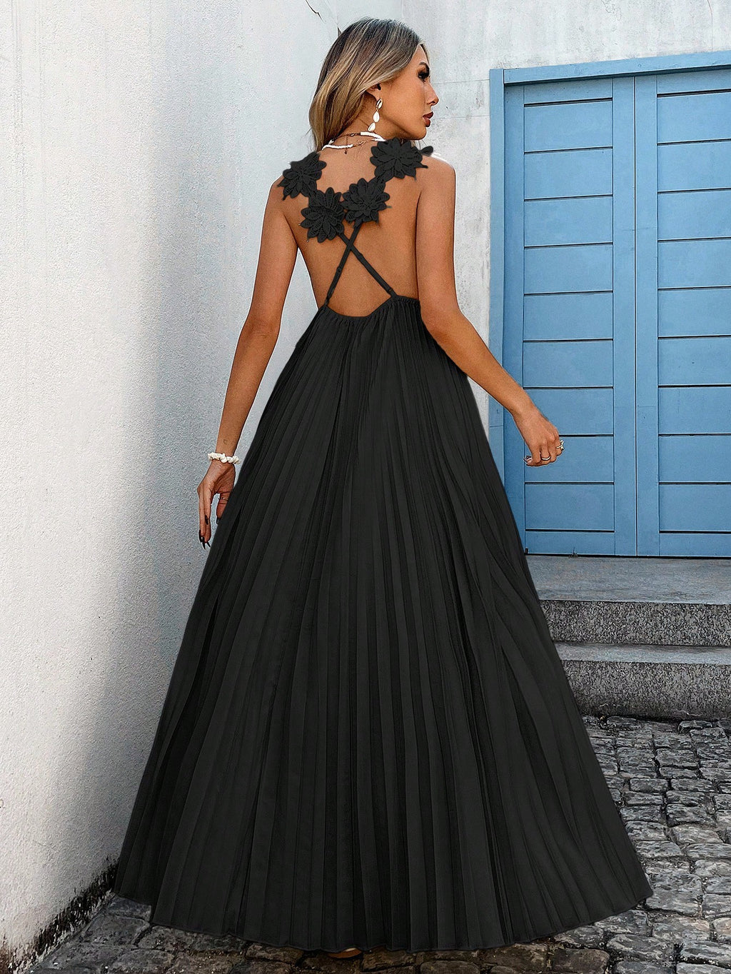 MIU Women's Solid Color Back Patch Decor Spaghetti Strap Vacation Dress
