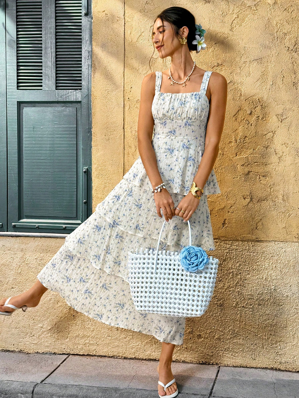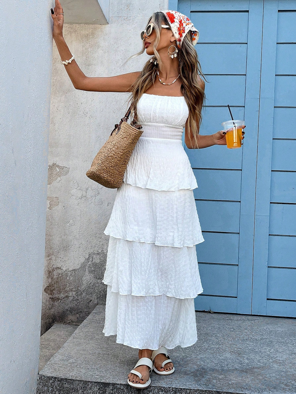 MIU Women's Solid Color Ruffle Hem Sleeveless Dress, Vacation Style,Summer Dresses For Women