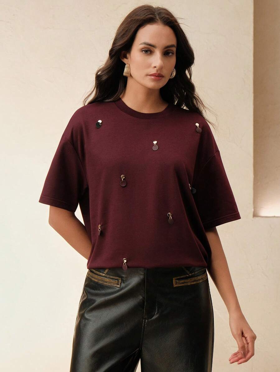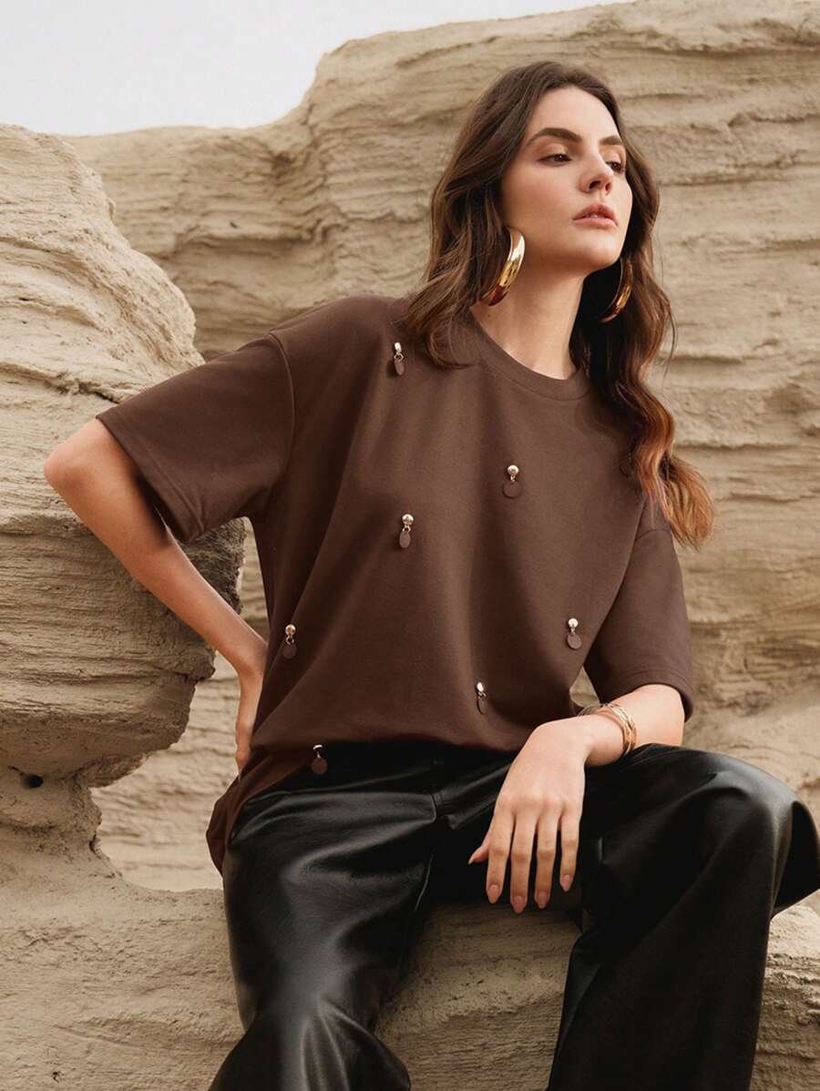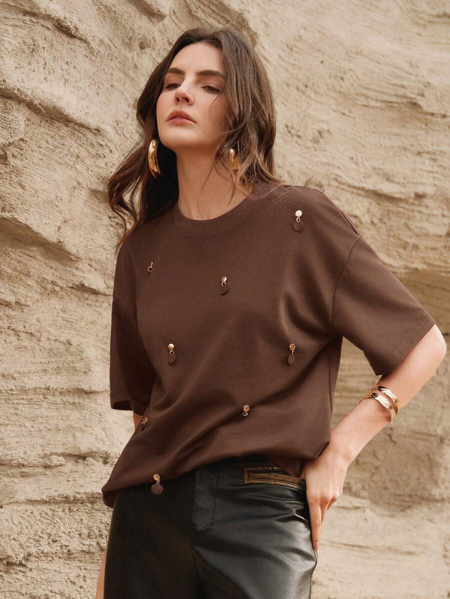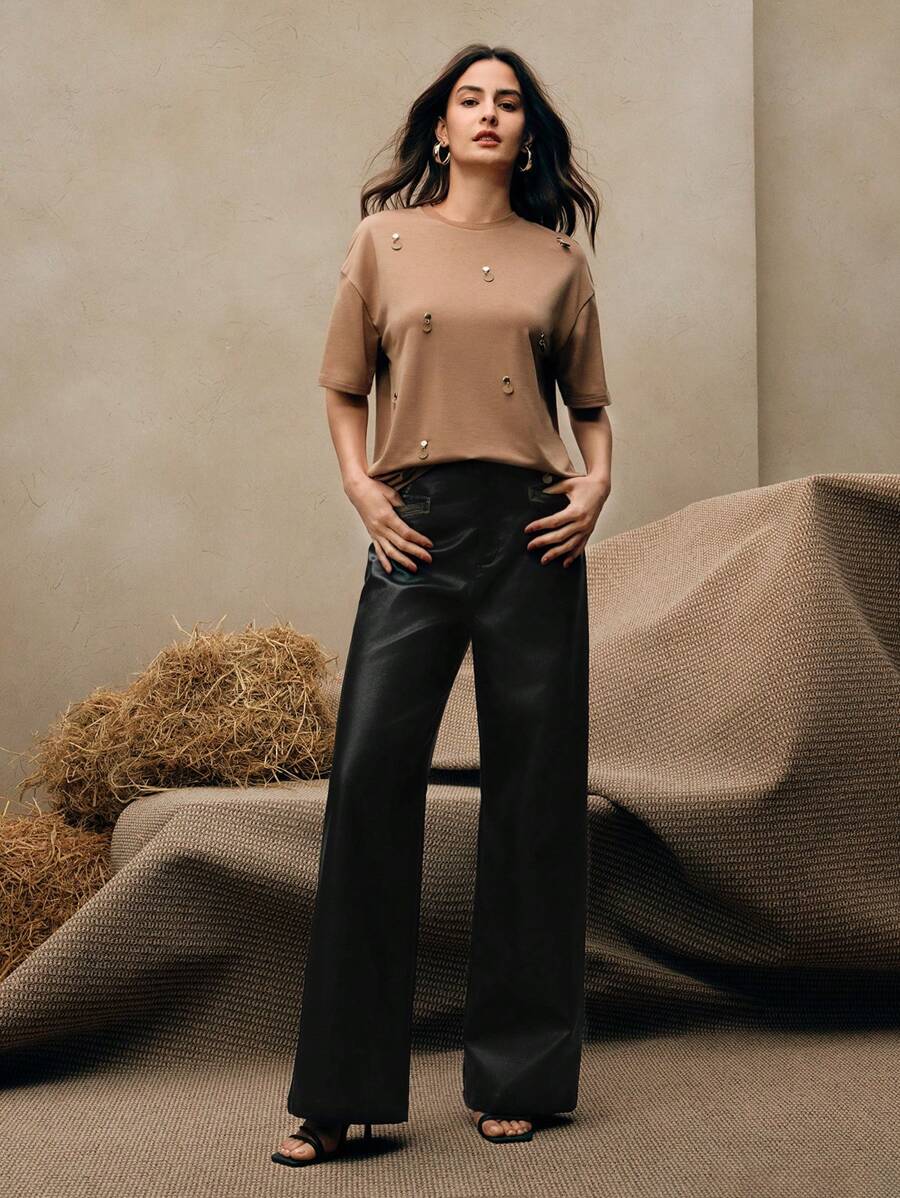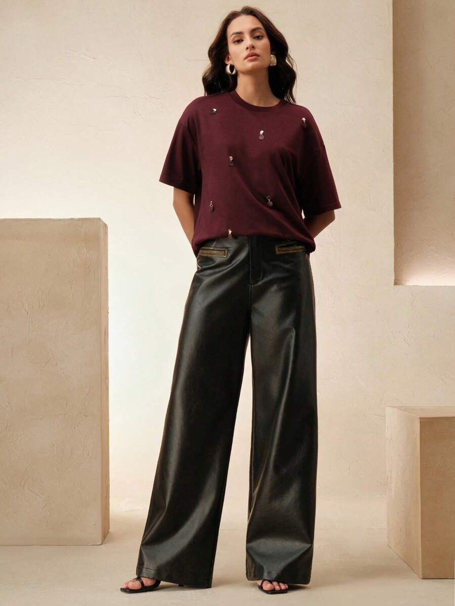 MIU Women's Solid Color Woven Long Sleeve Casual
