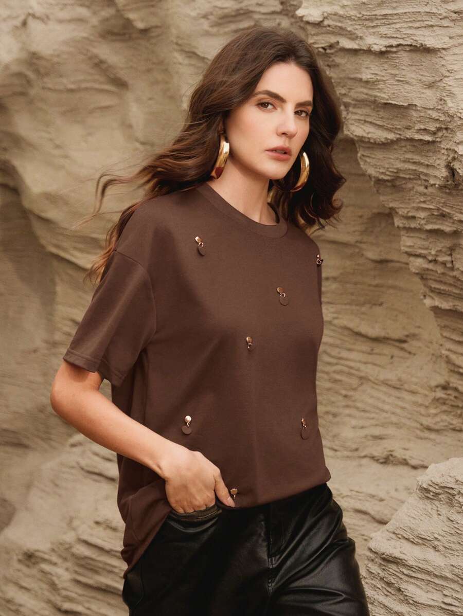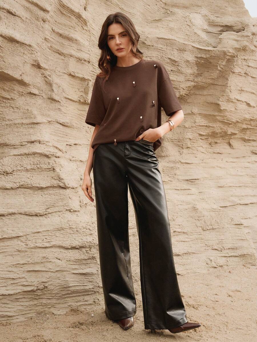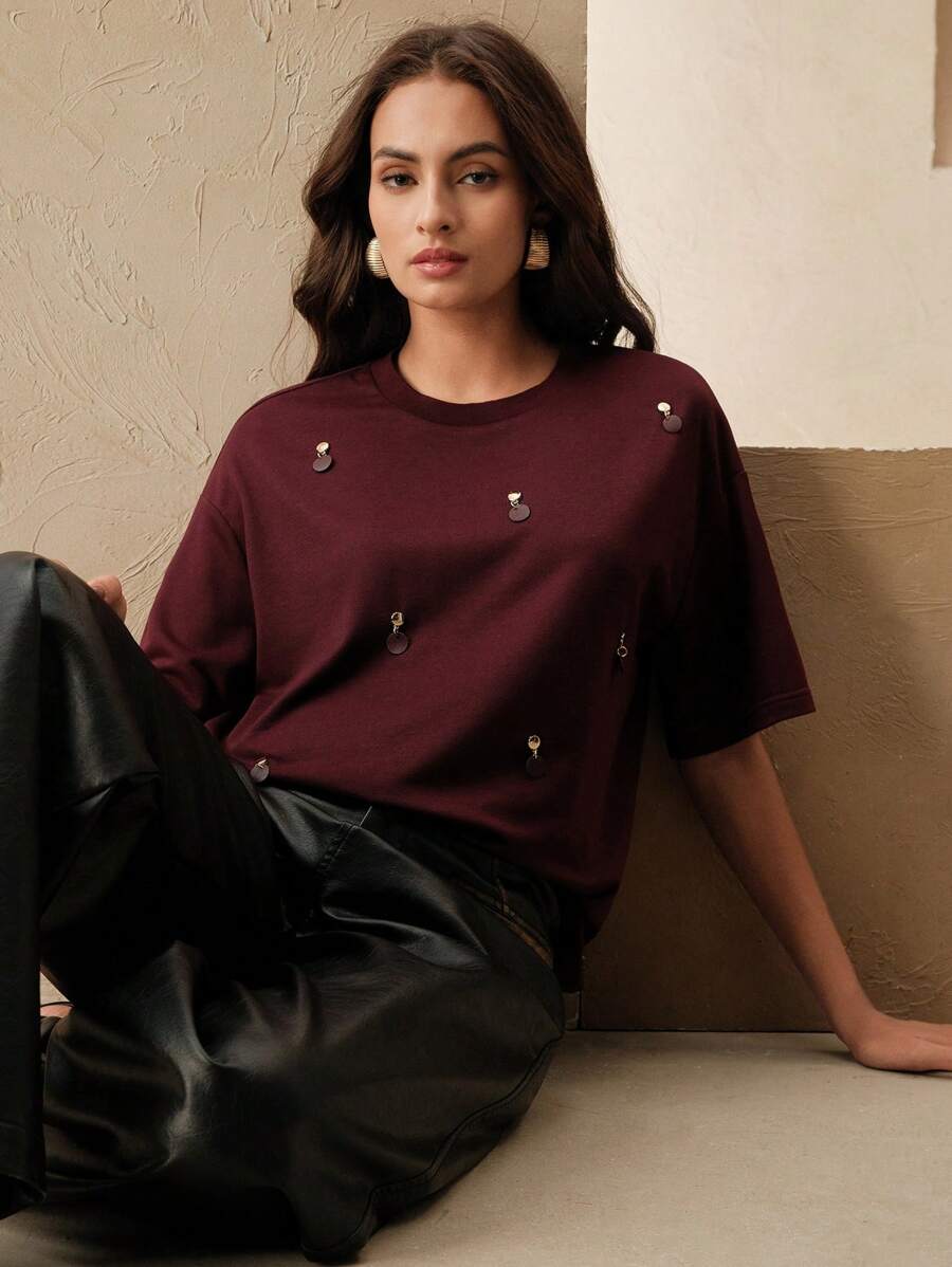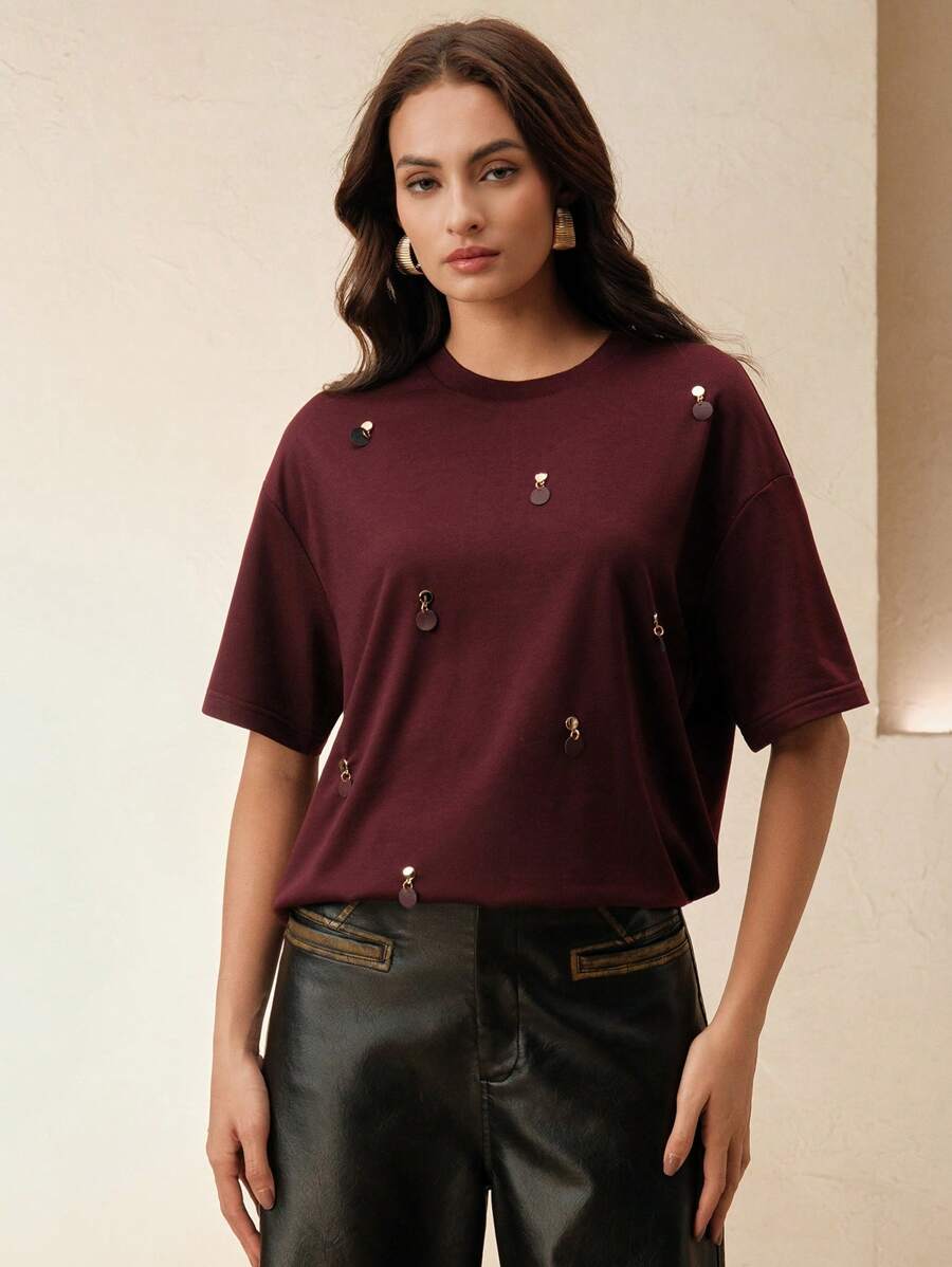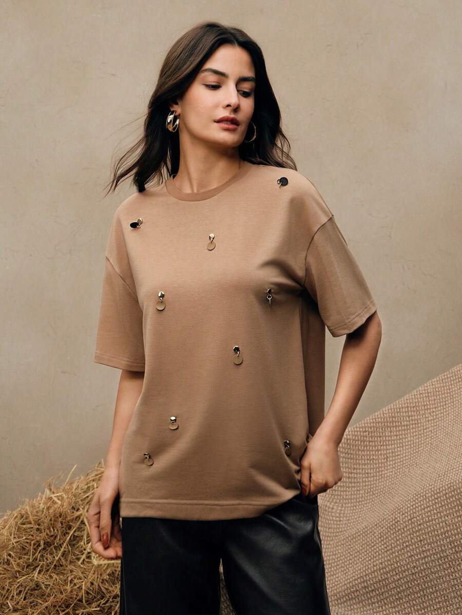 MIU Women's Solid Color Woven Long Sleeve Casual