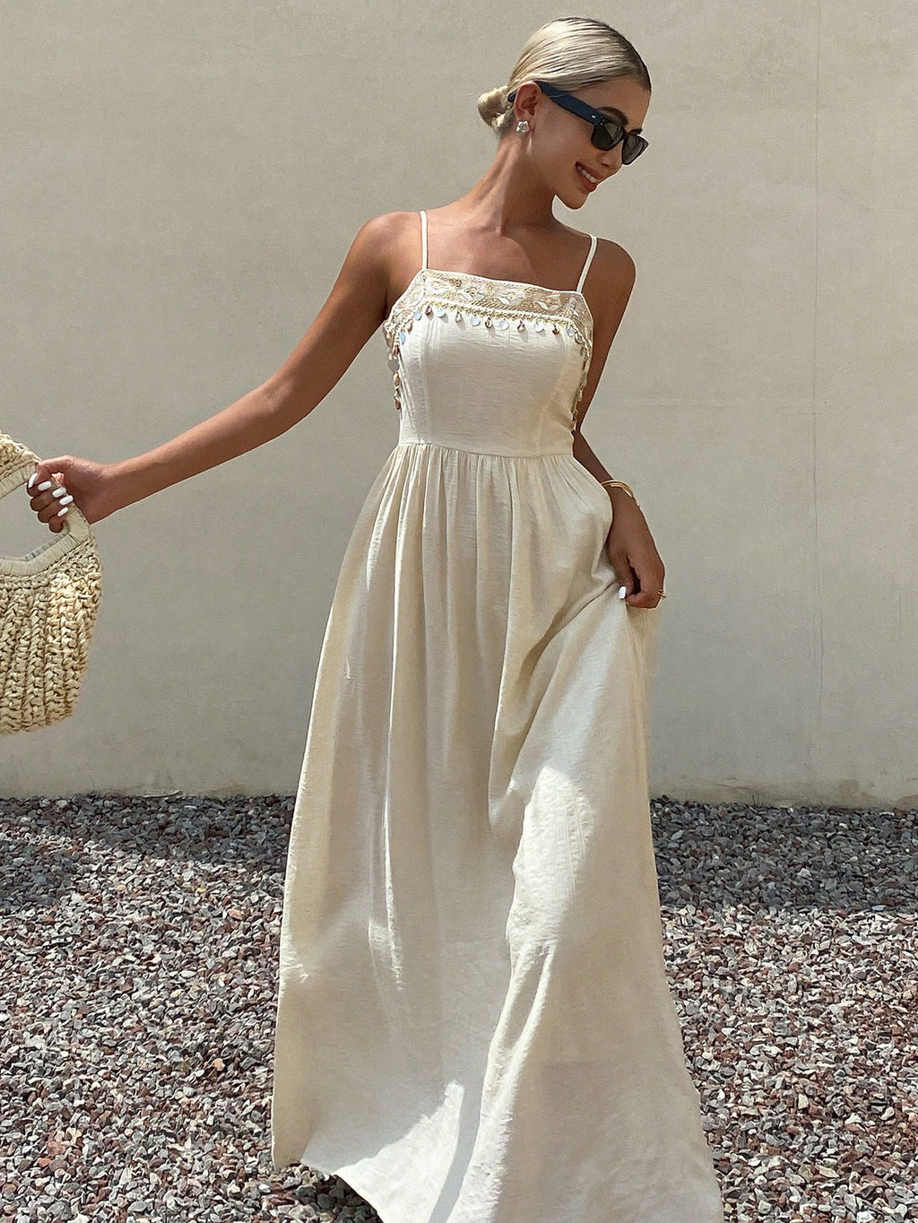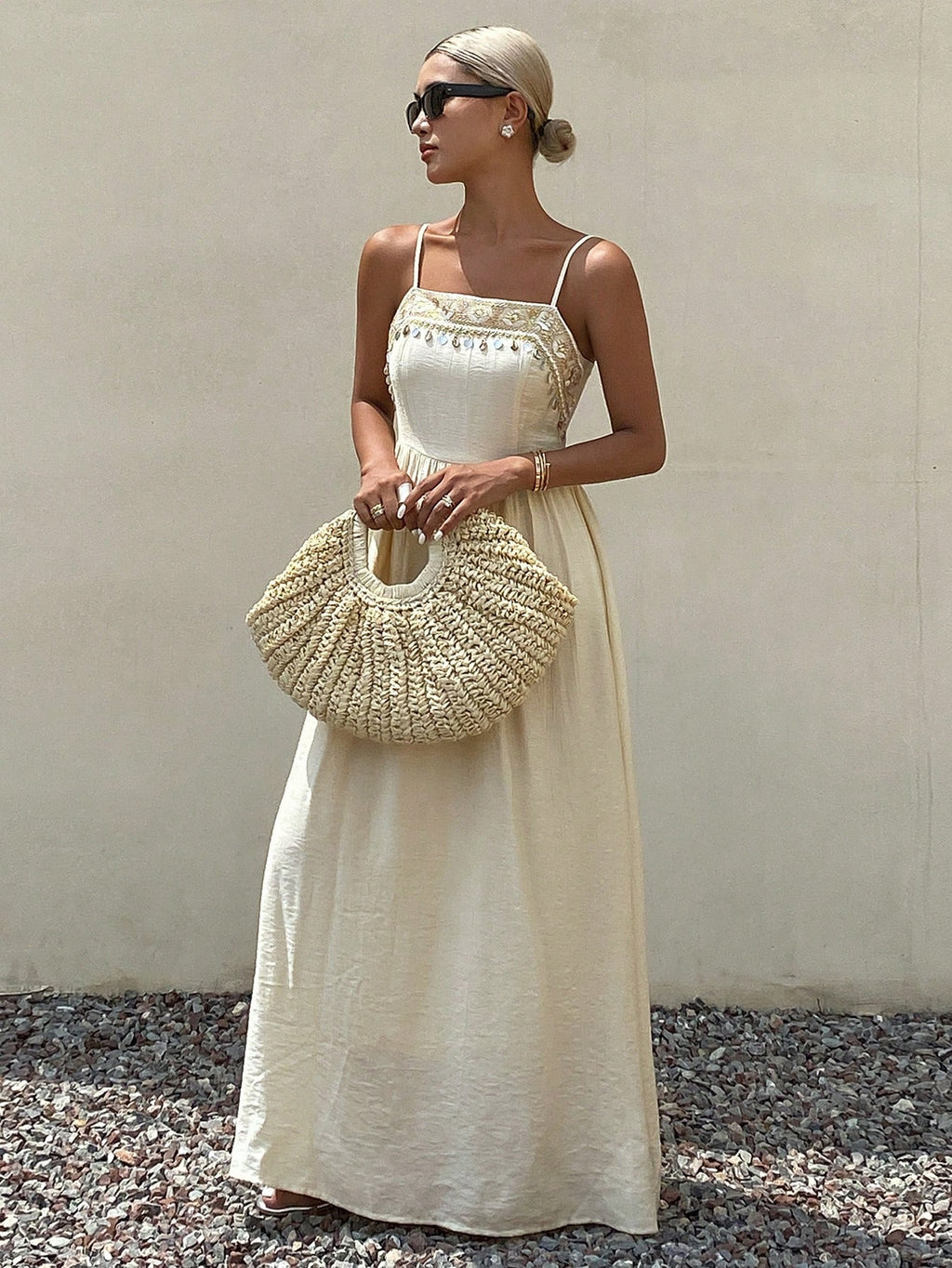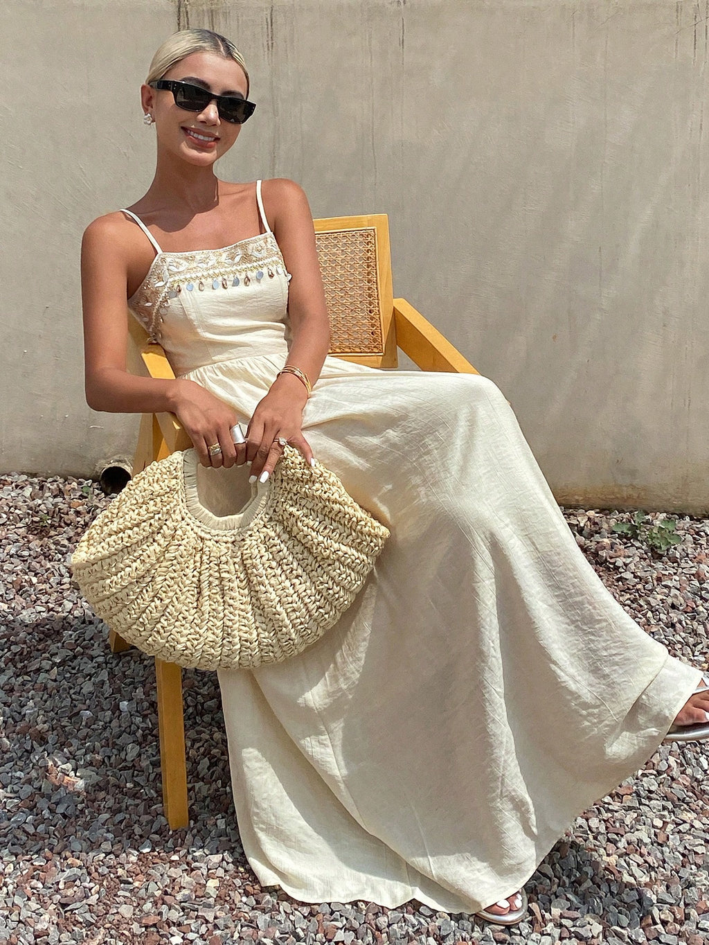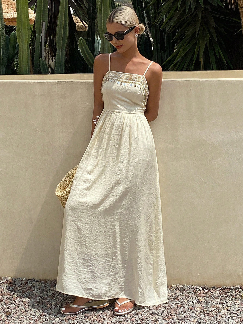 MIU Women's Summer Sequin Decor Tie-Waist Mid-Length Slip Dress