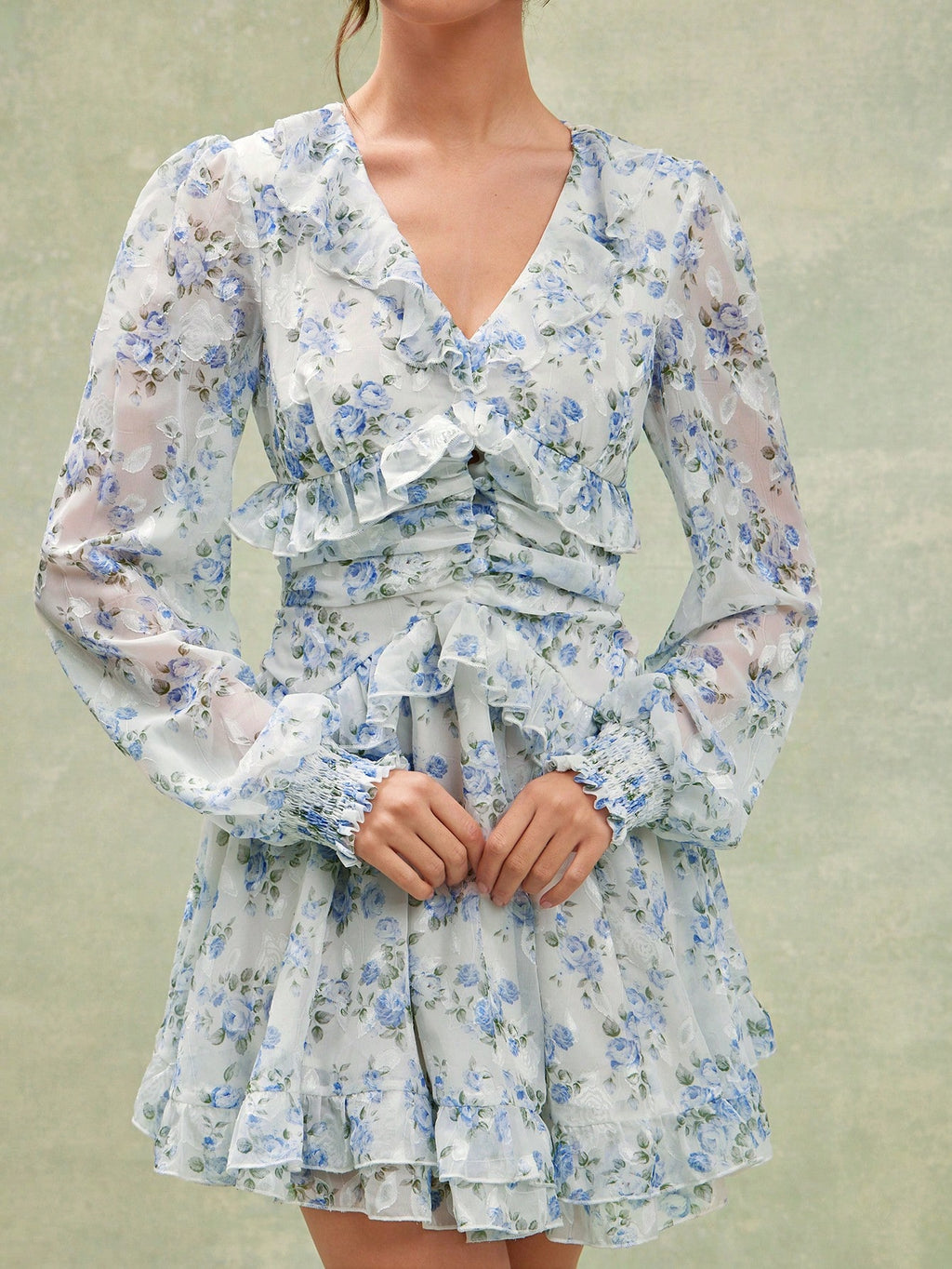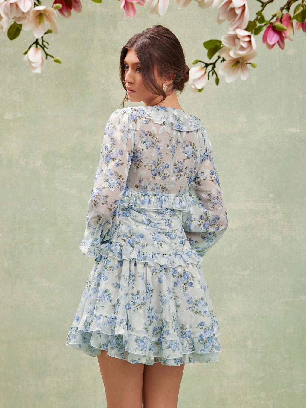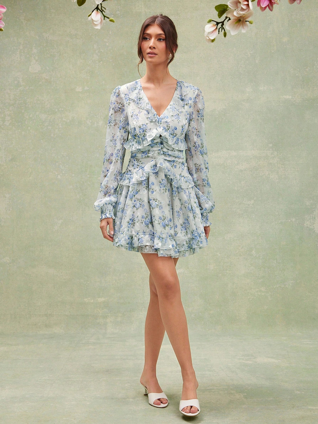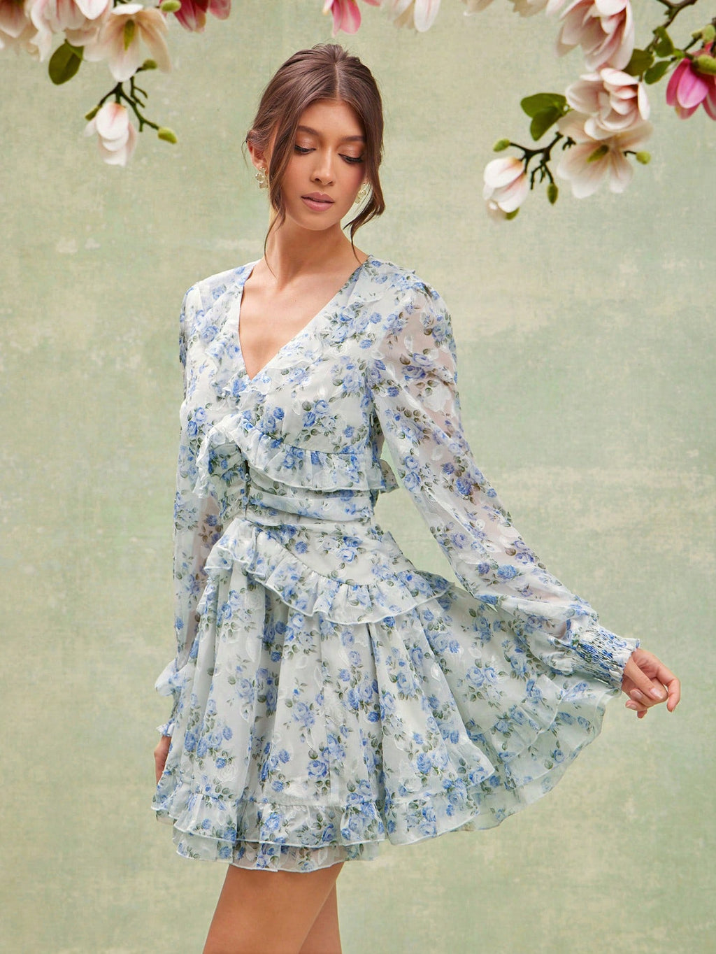 MIU Women's Vacation Floral Print Ruffle Hem Elegant Dress, Brunch Outfits For Women, Mother's Day