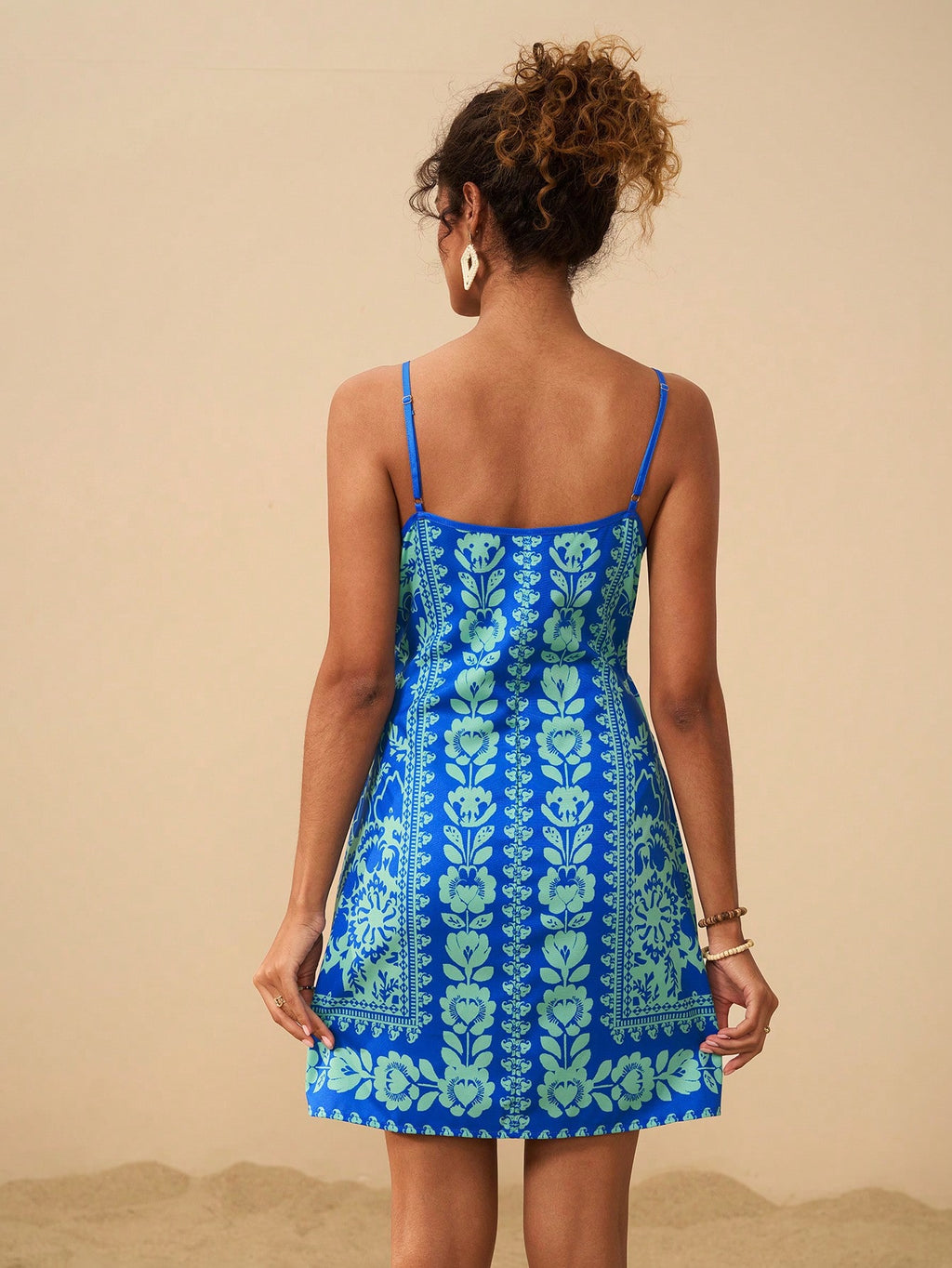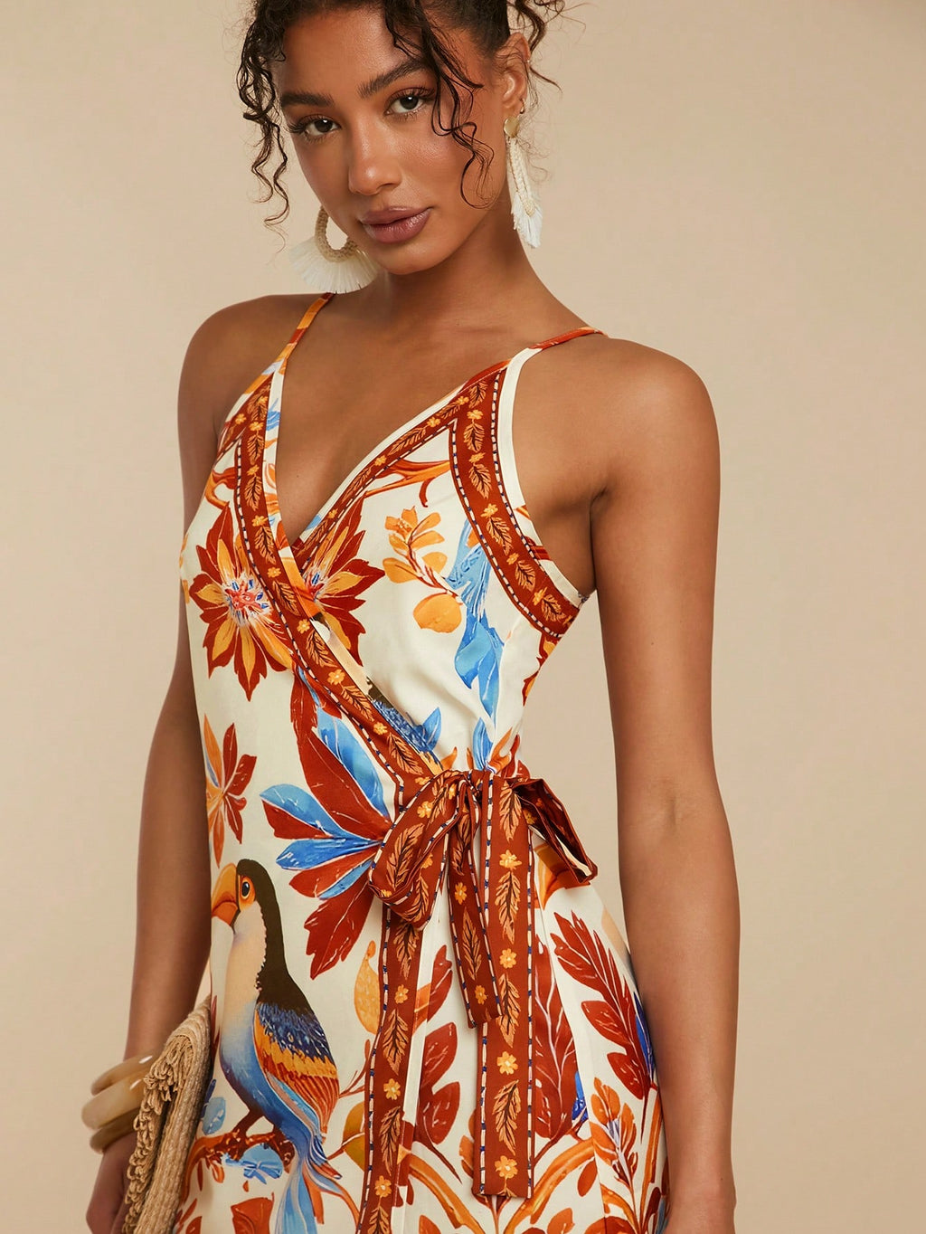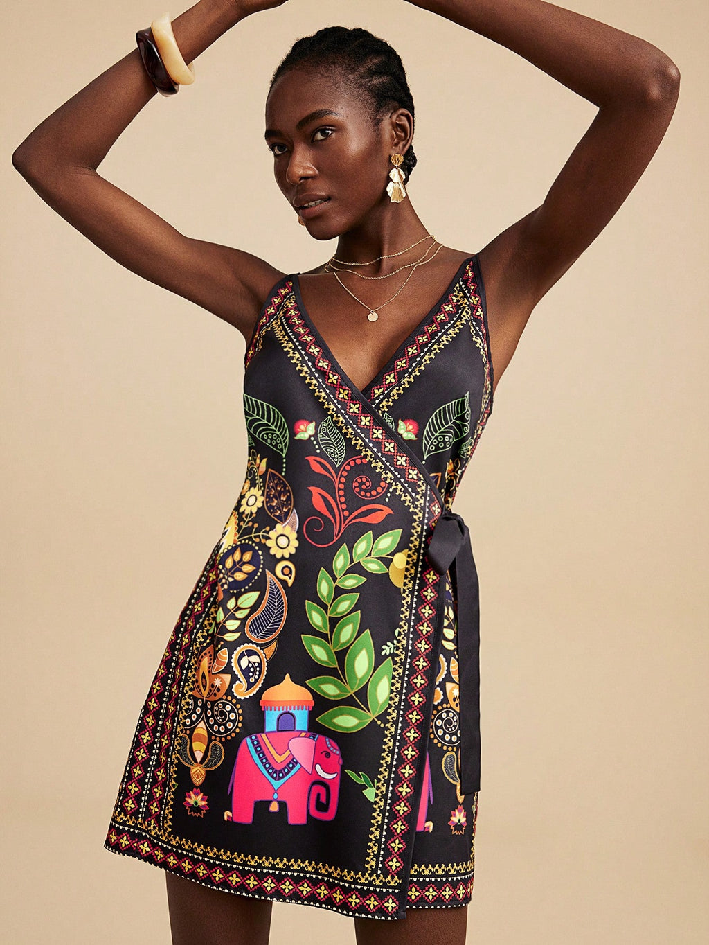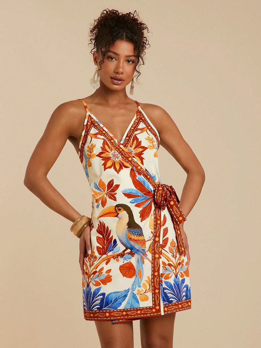 MIU Women's Wrap Tie Side Print Dress, Suitable For Holiday,Summer Dresses For Women,Women Summer Clothing,Vacation Style,For Beach Vacation