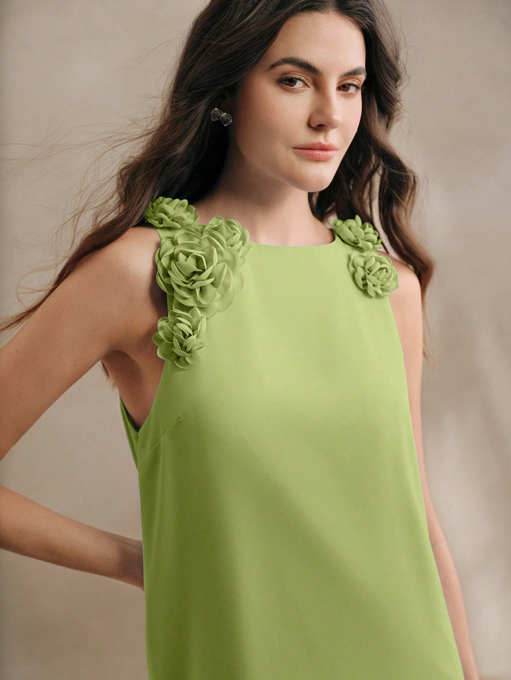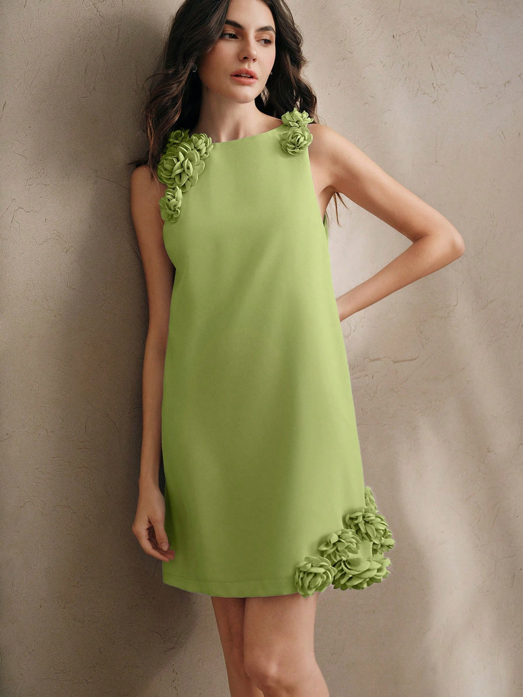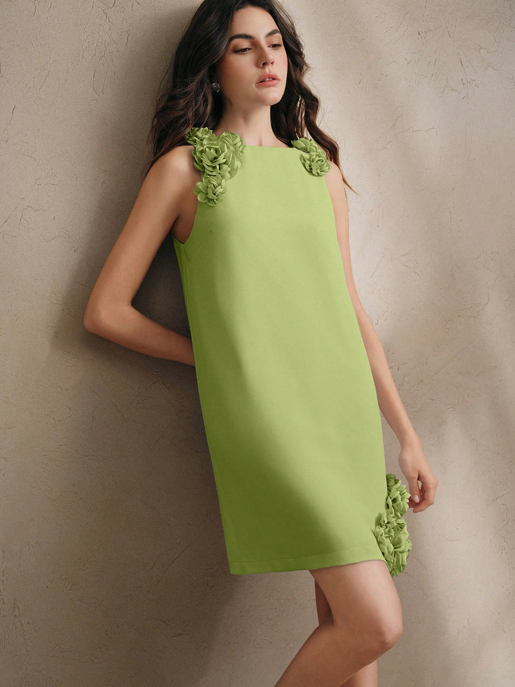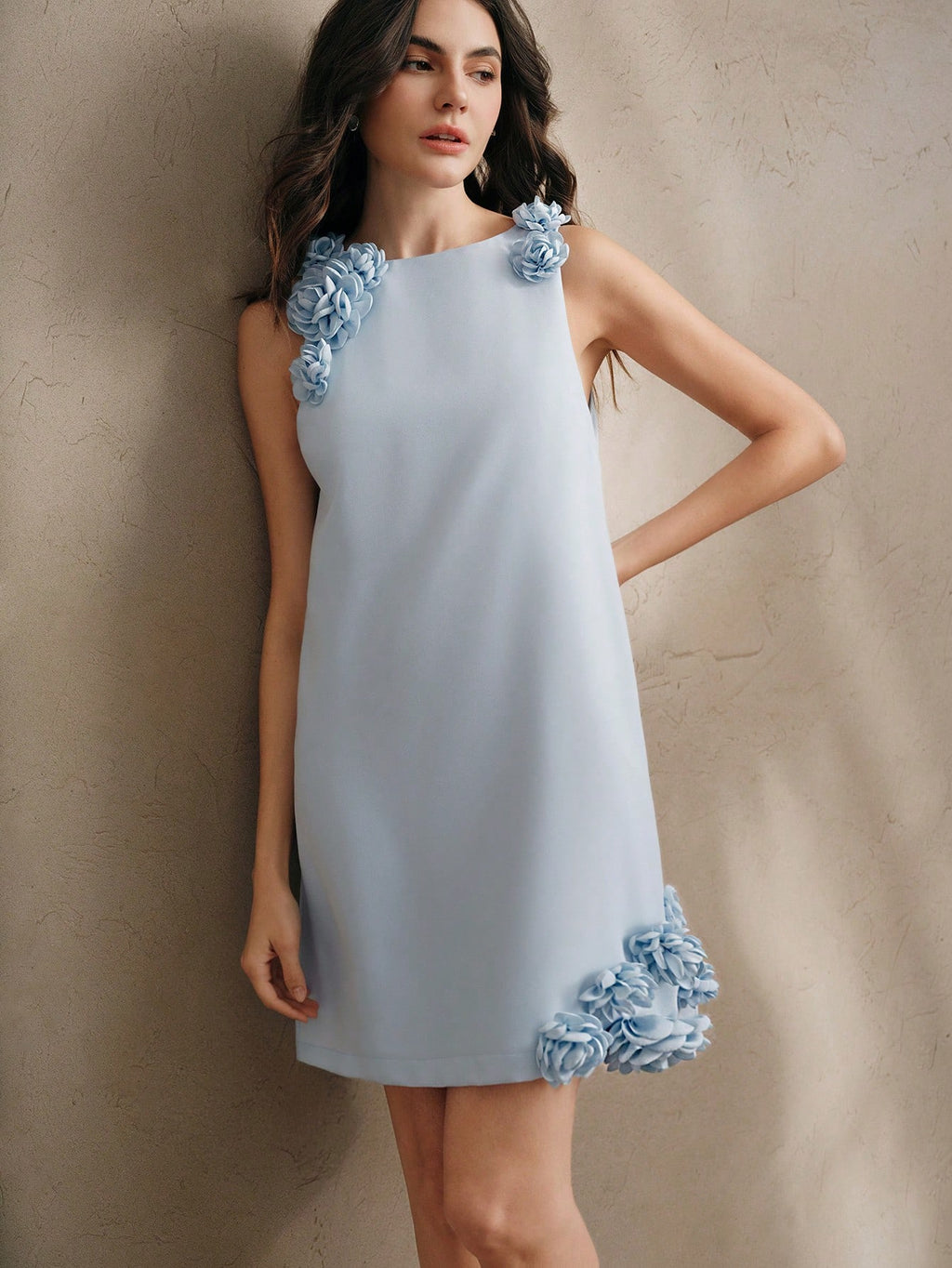 MiuVogue Elegant 3D Floral Decor A-Line Mini Dress For Party, Summer, Casual, Festival, Holiday, Vacation, Beach