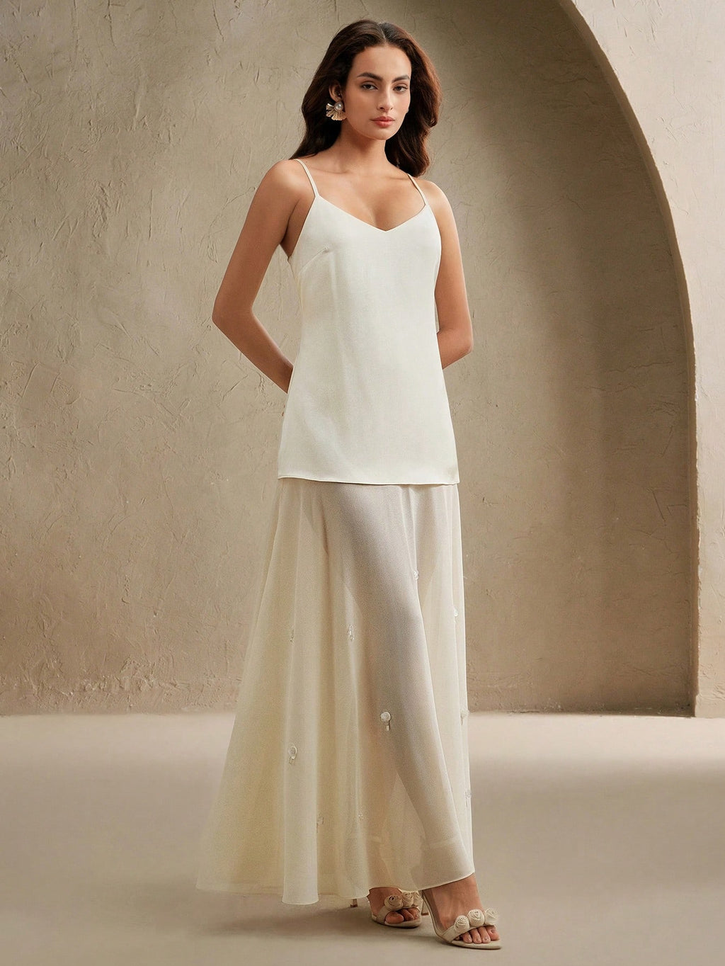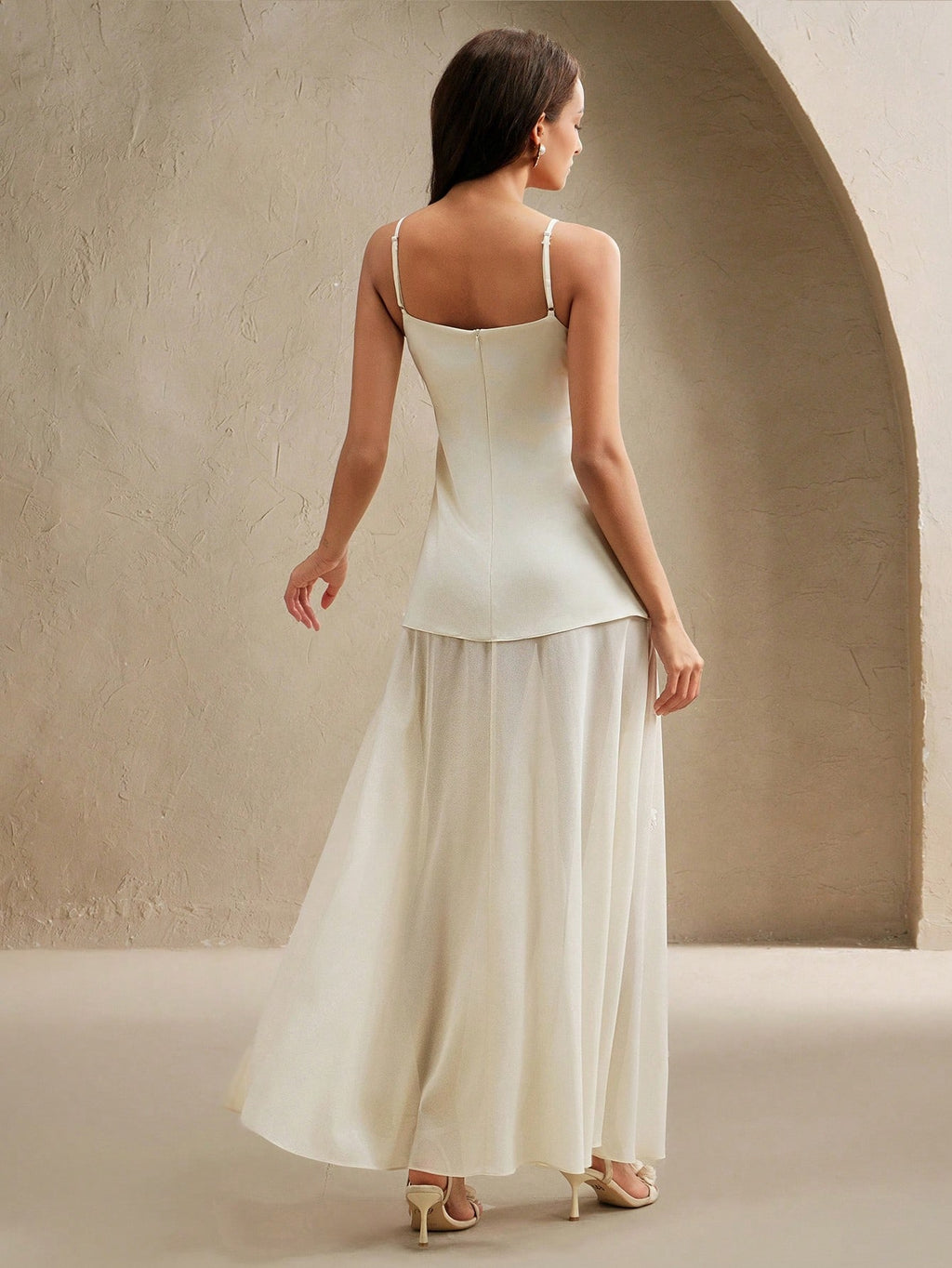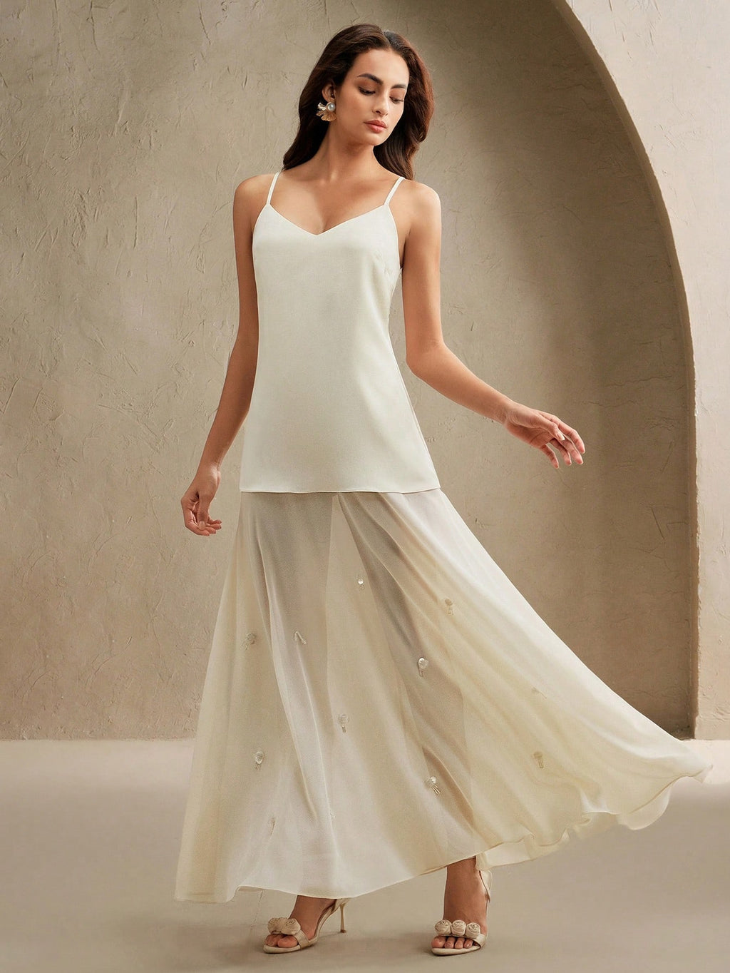 MiuVogue Fashionable V-Neck Sleeveless Semi-Sheer Beaded Mesh Panel Dress For Women, High-Quality Summer Party Dress