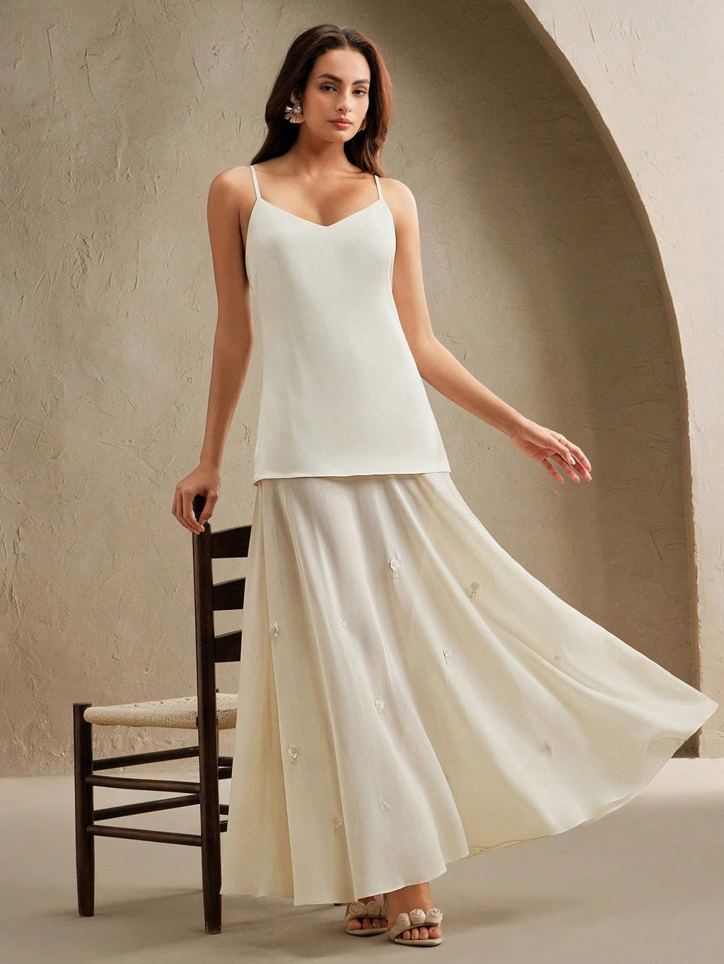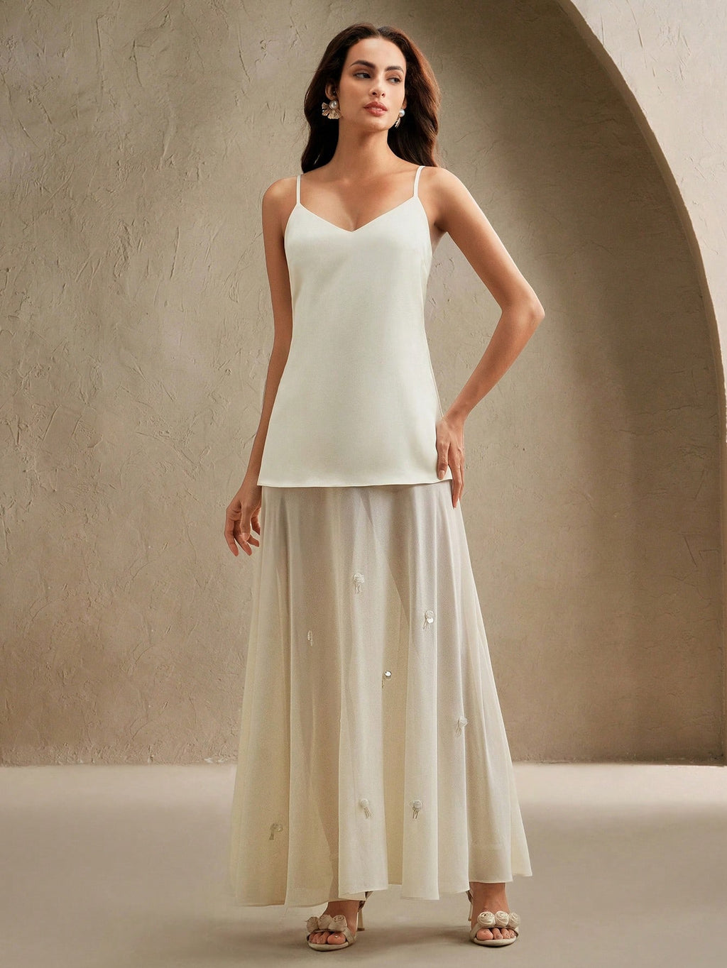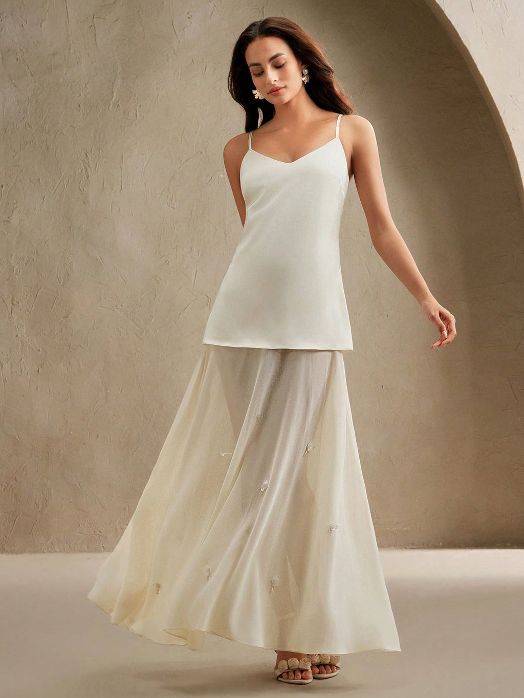 MiuVogue Fashionable V-Neck Sleeveless Semi-Sheer Beaded Mesh Panel Dress For Women, High-Quality Summer Party Dress