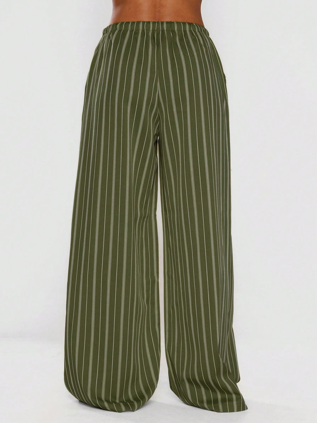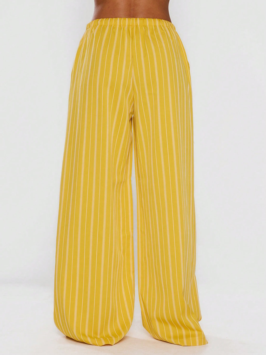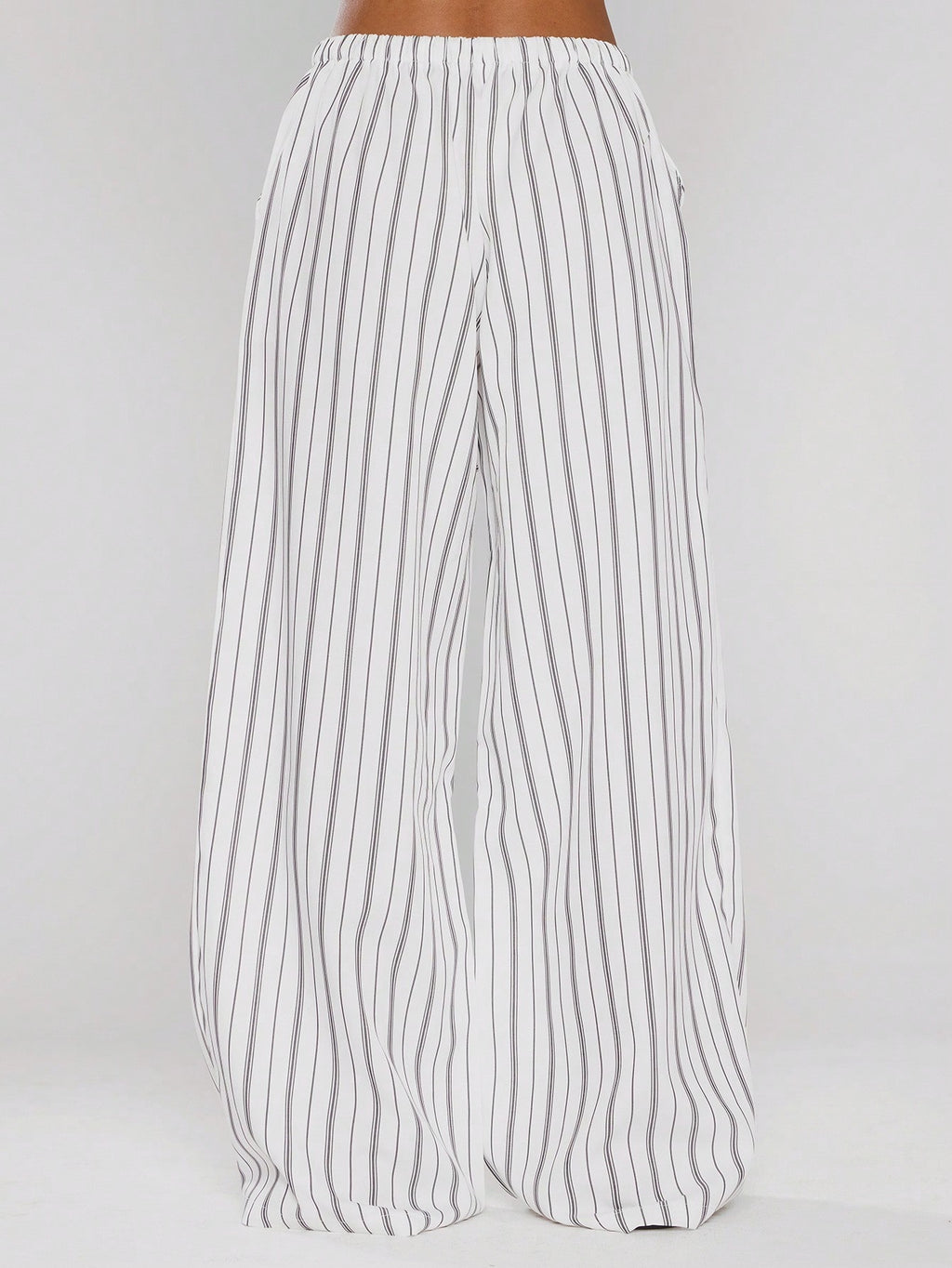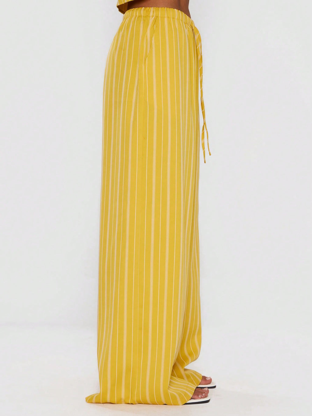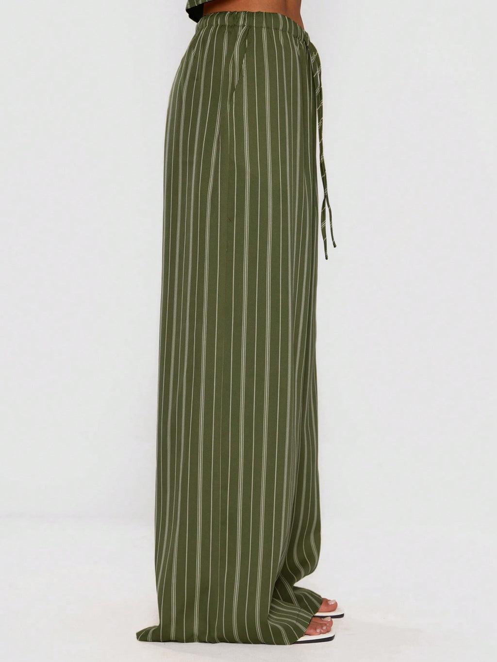 MiuVogue Mid Rise Drawstring Waist Wide Leg Trousers Only Spring Summer Cute Vacation Stripe Elegant, Cute Al Fresco