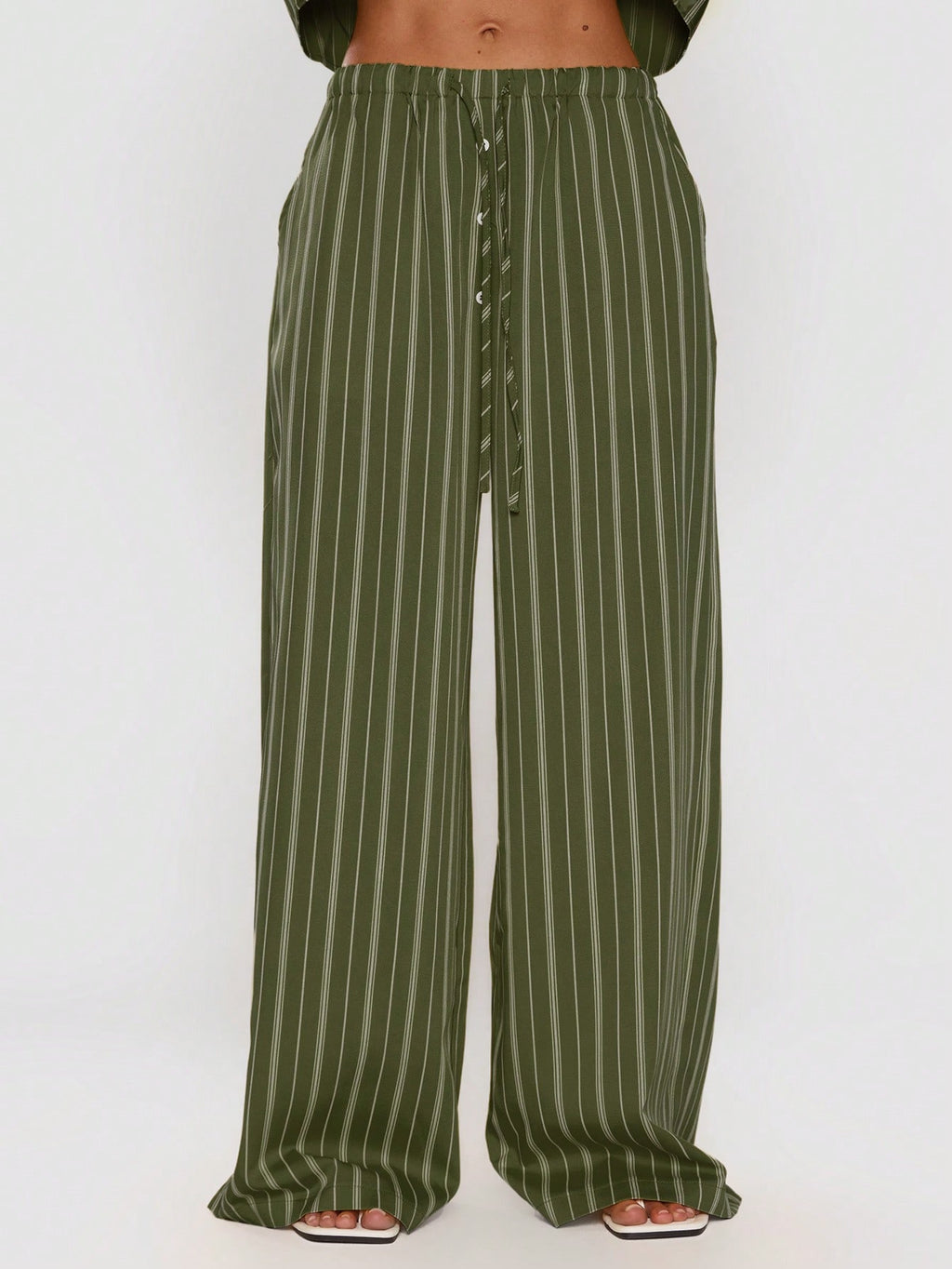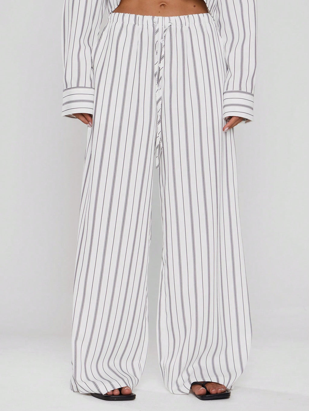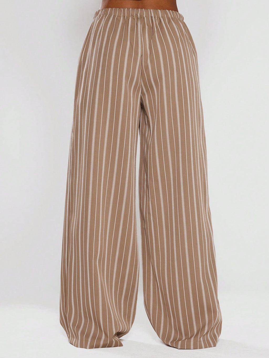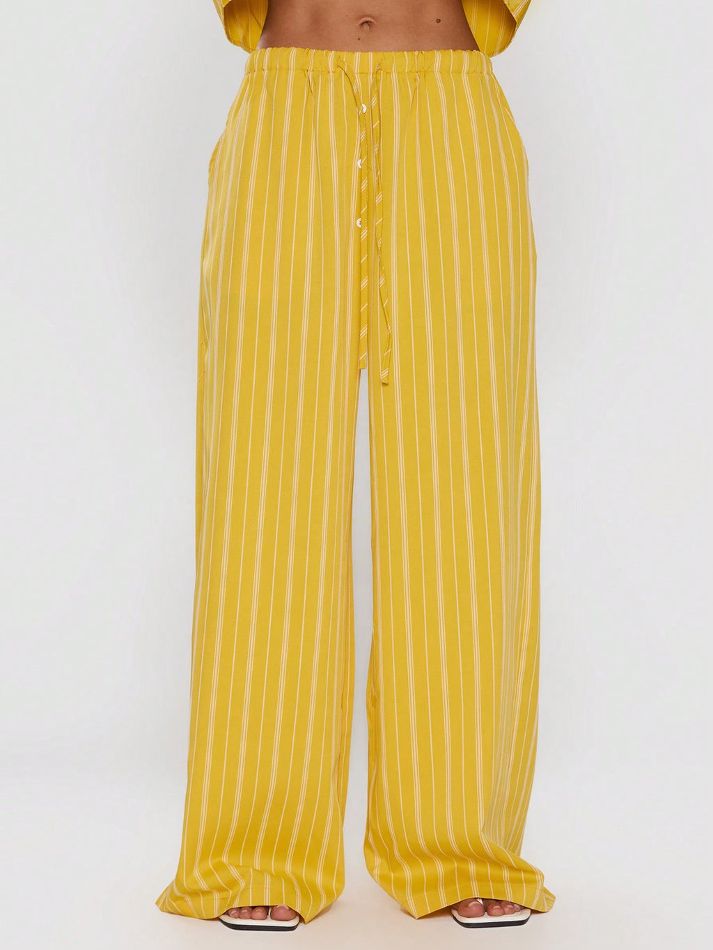 MiuVogue Mid Rise Drawstring Waist Wide Leg Trousers Only Spring Summer Cute Vacation Stripe Elegant, Cute Al Fresco