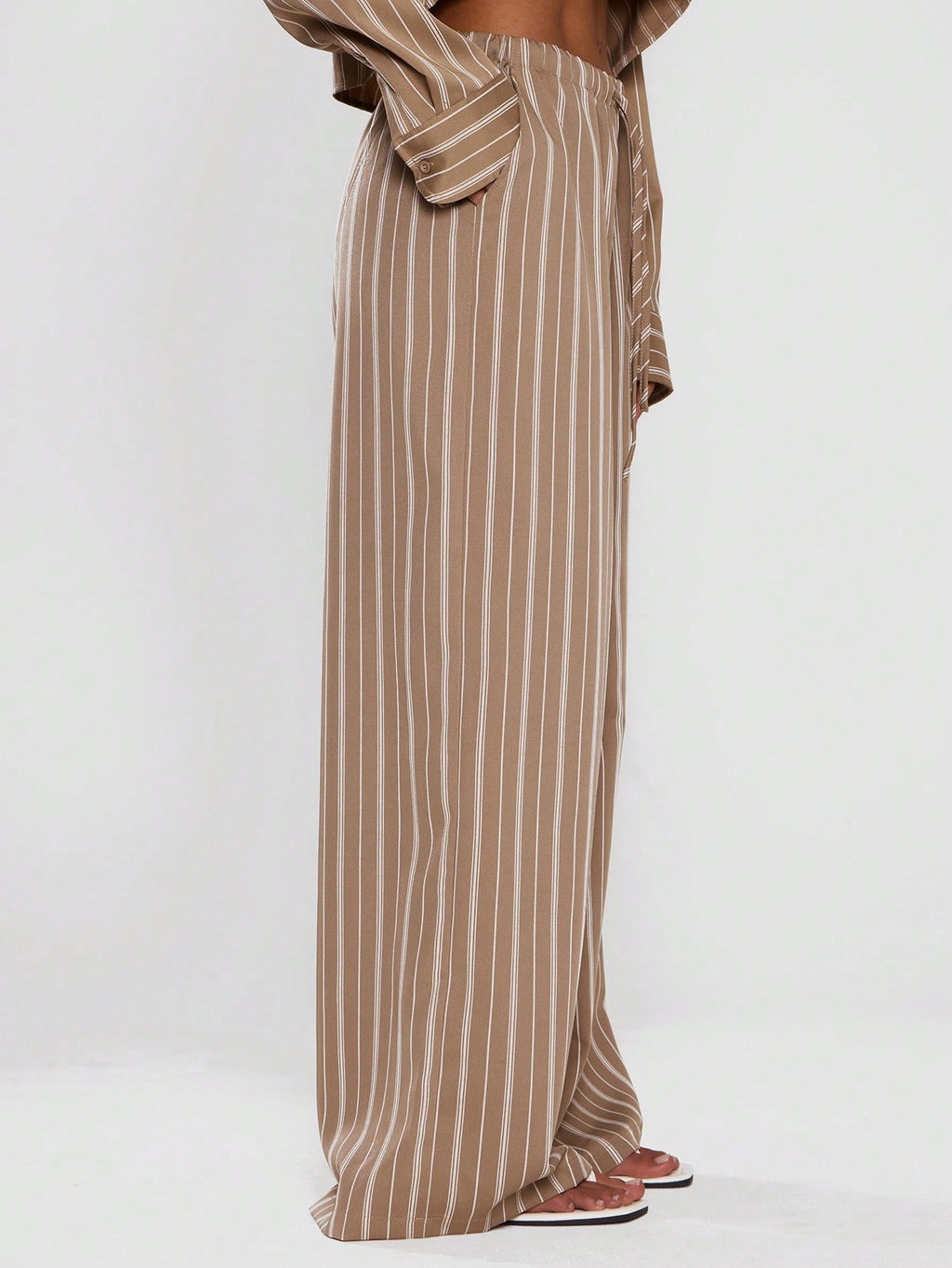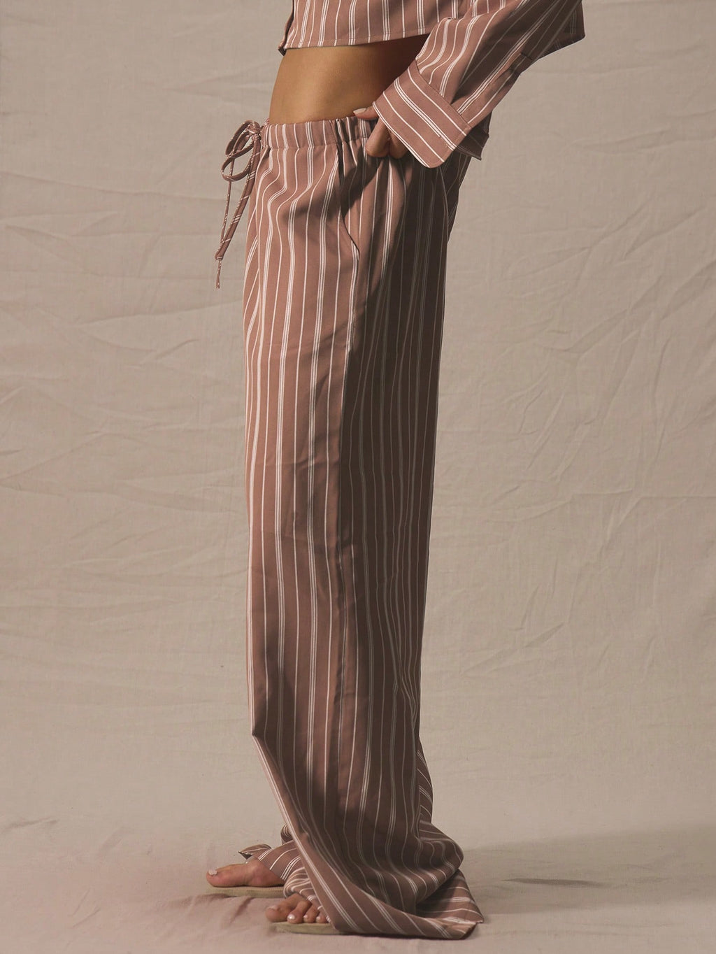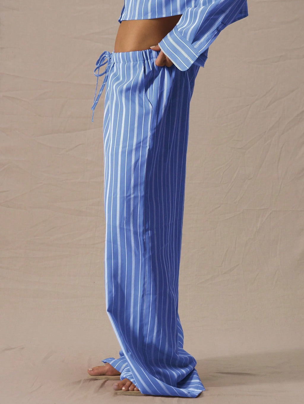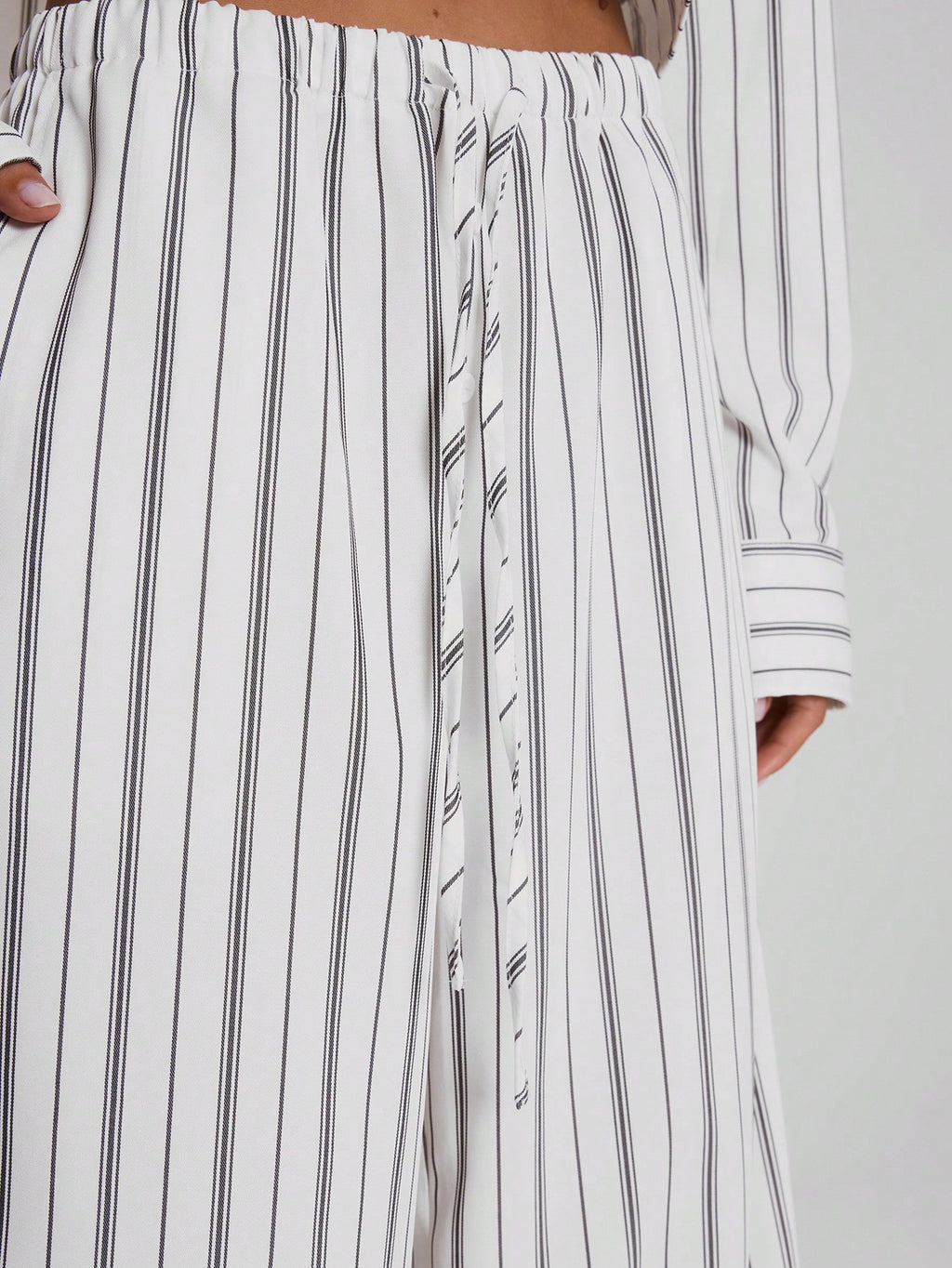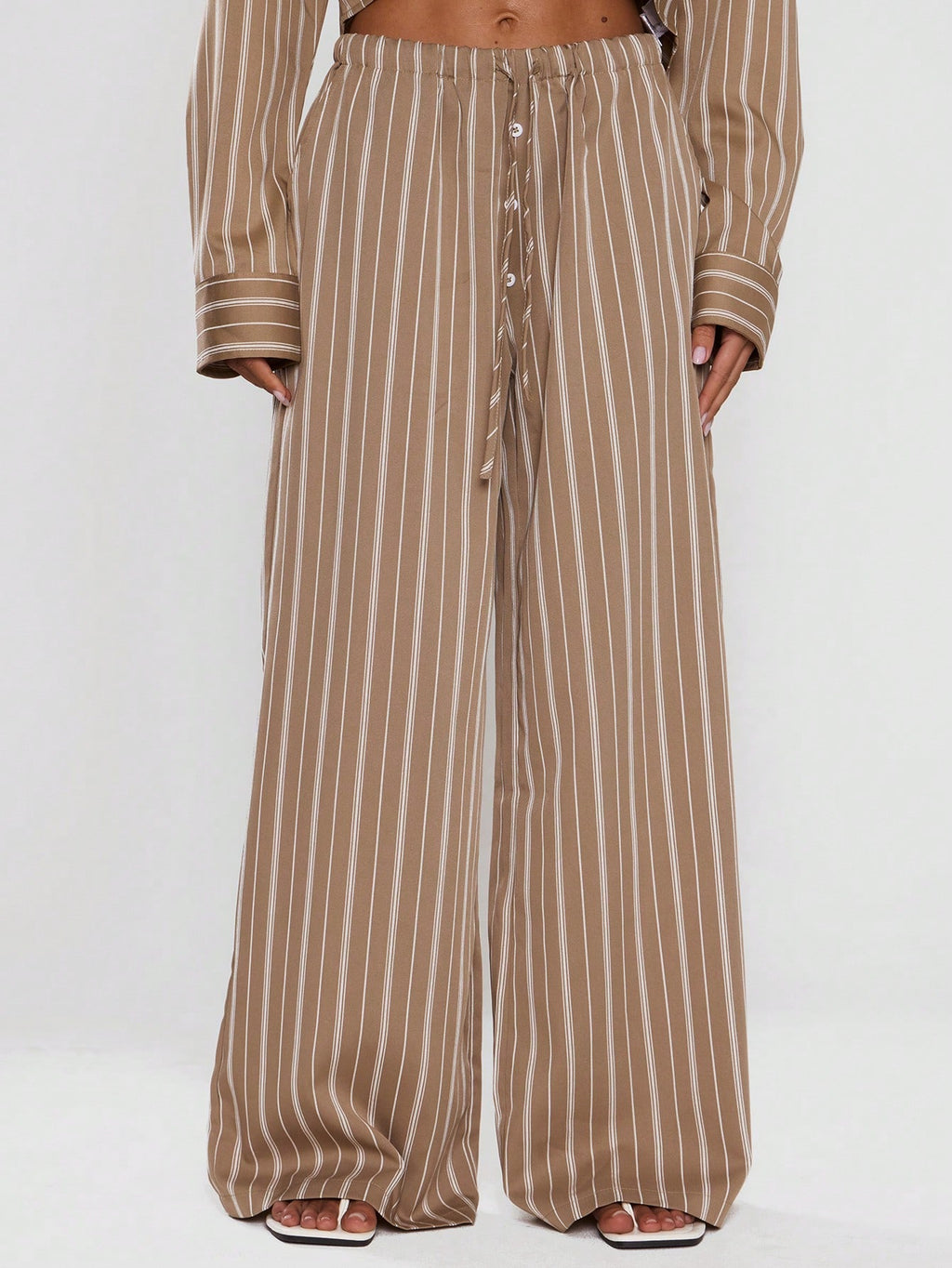 MiuVogue Mid Rise Drawstring Waist Wide Leg Trousers Only Spring Summer Cute Vacation Stripe Elegant, Cute Al Fresco