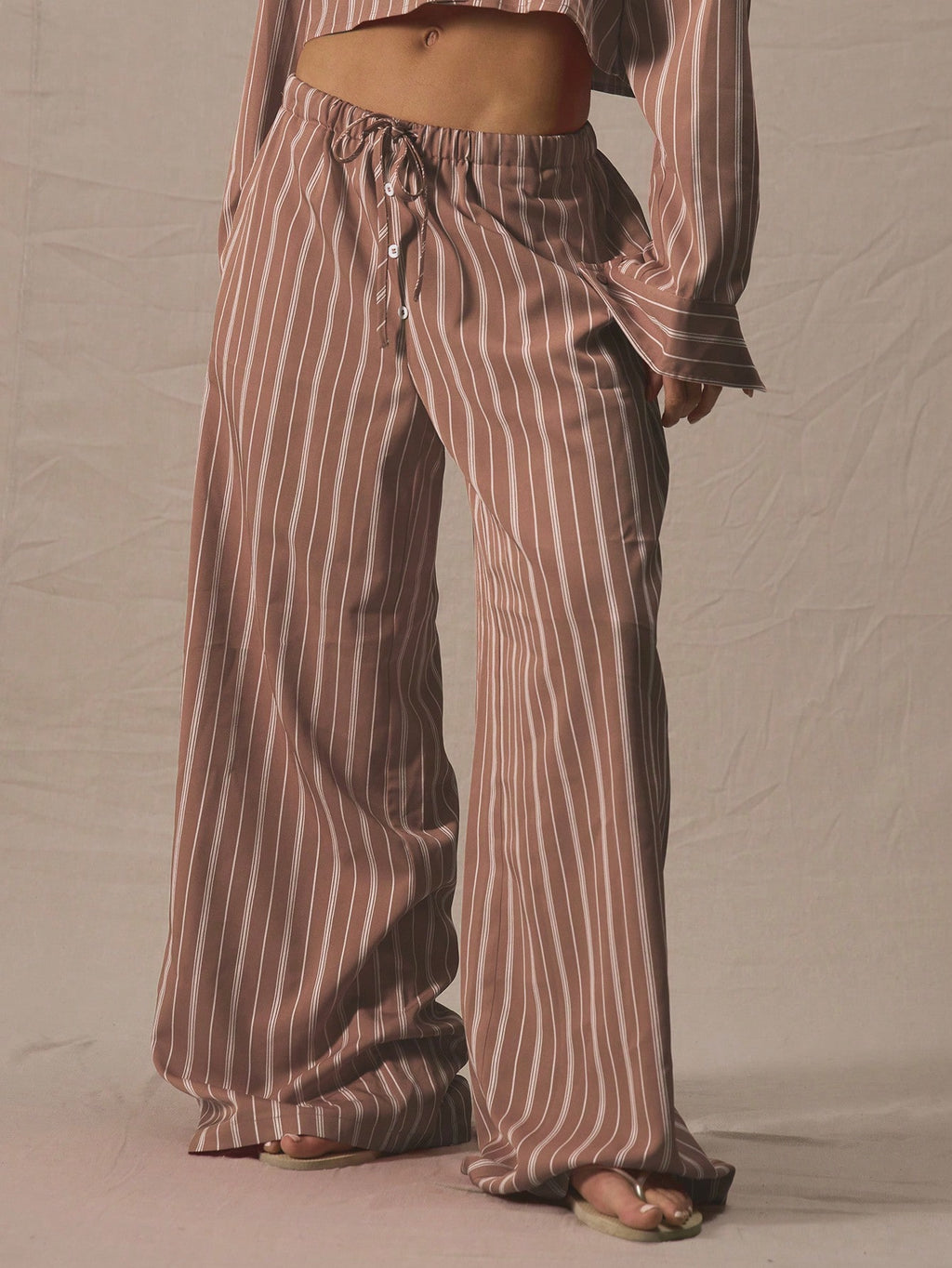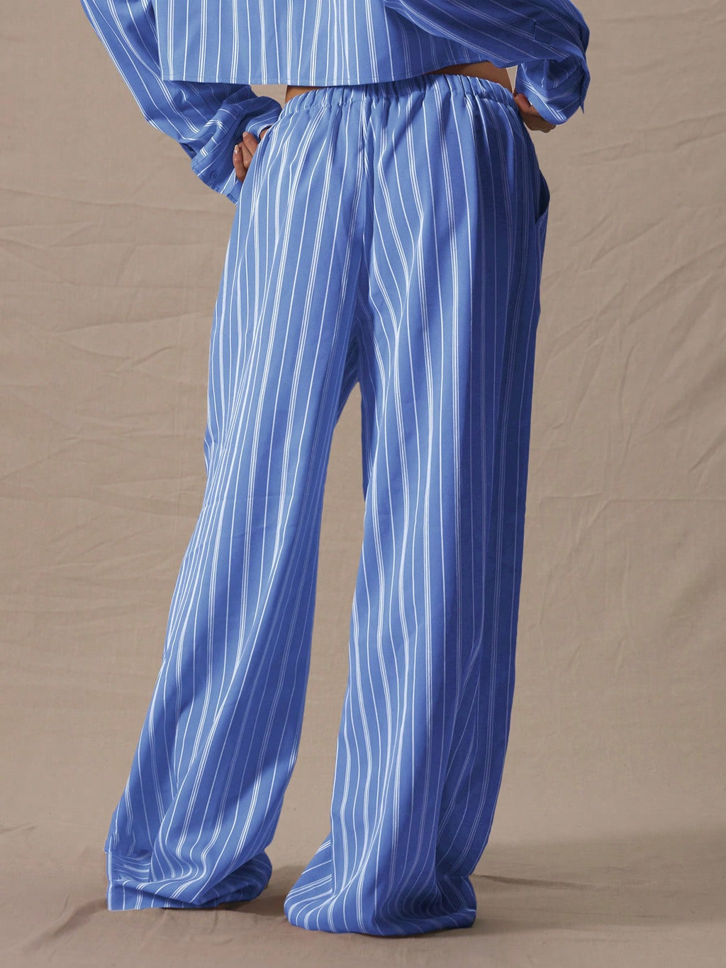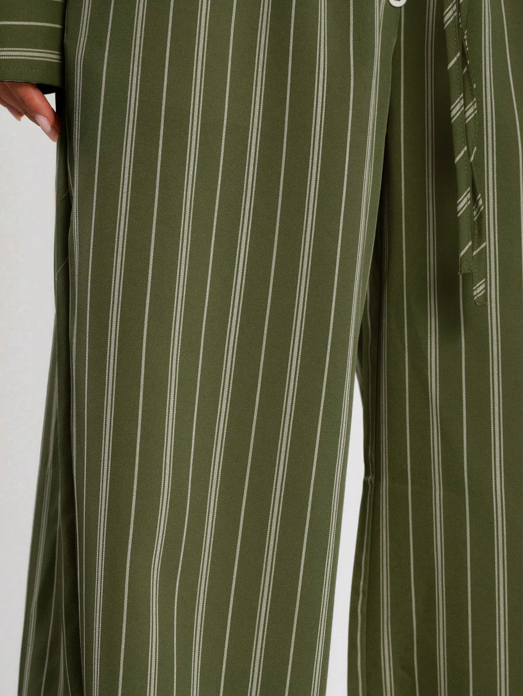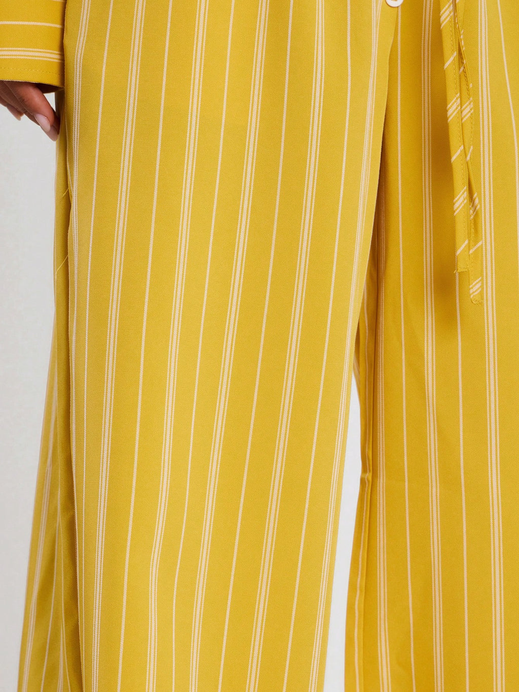 MiuVogue Mid Rise Drawstring Waist Wide Leg Trousers Only Spring Summer Cute Vacation Stripe Elegant, Cute Al Fresco