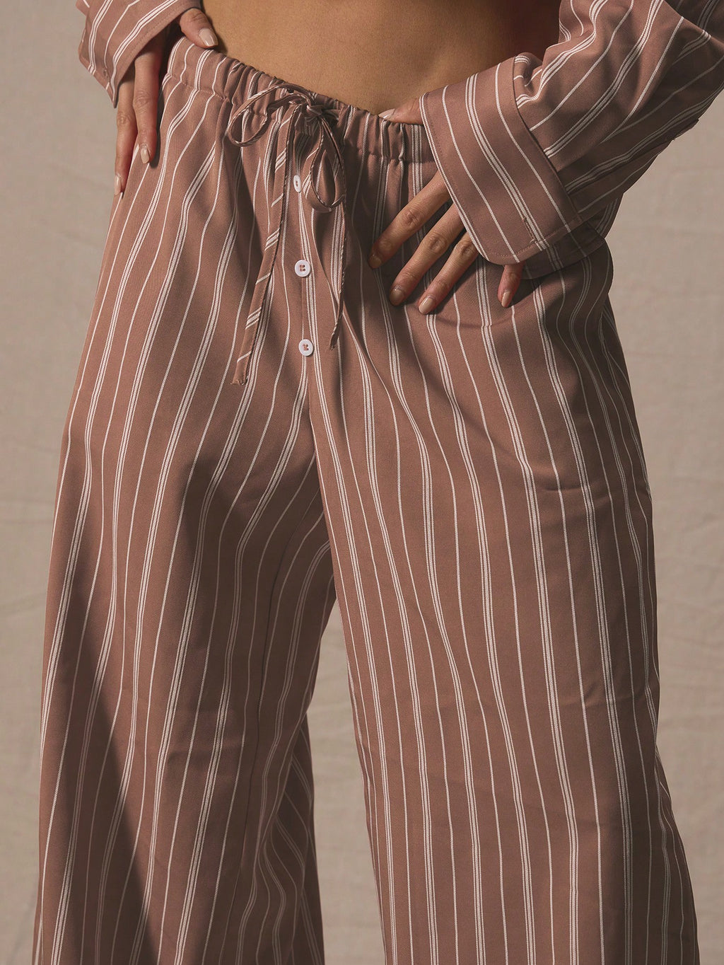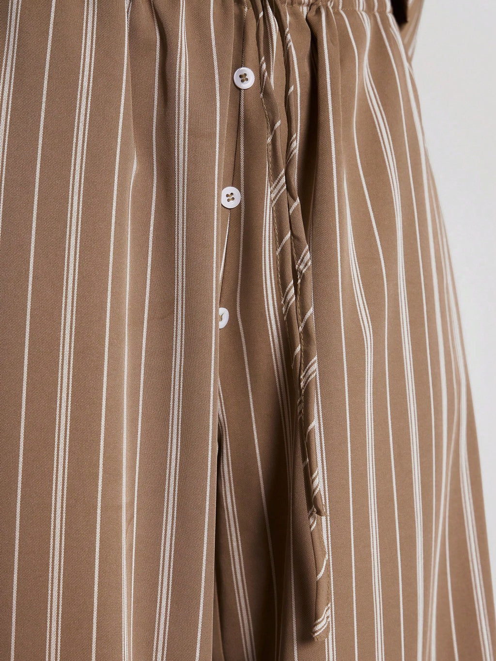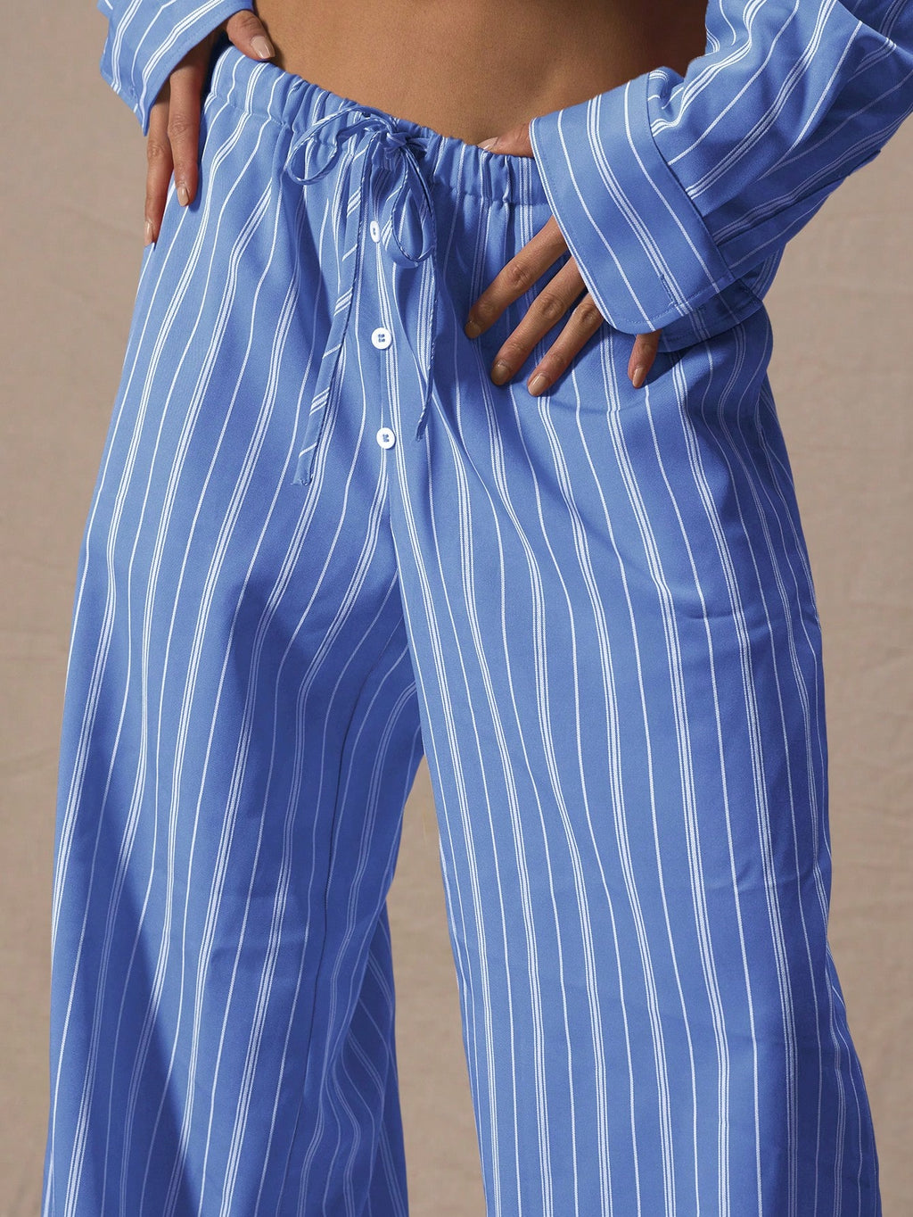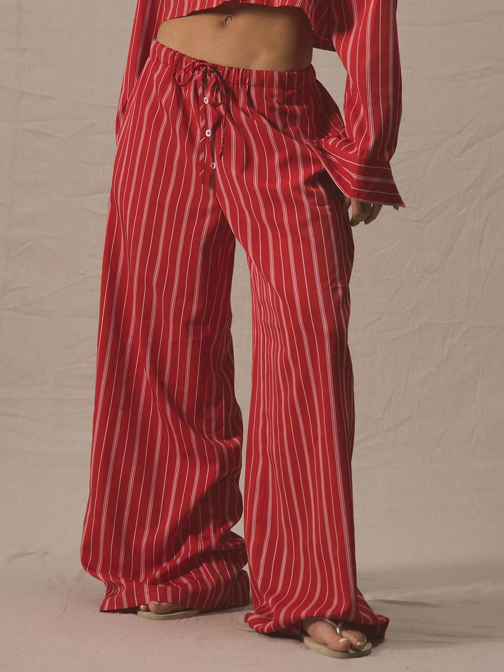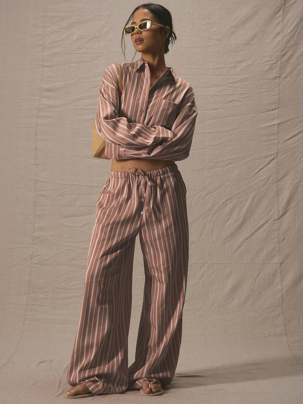 MiuVogue Mid Rise Drawstring Waist Wide Leg Trousers Only Spring Summer Cute Vacation Stripe Elegant, Cute Al Fresco