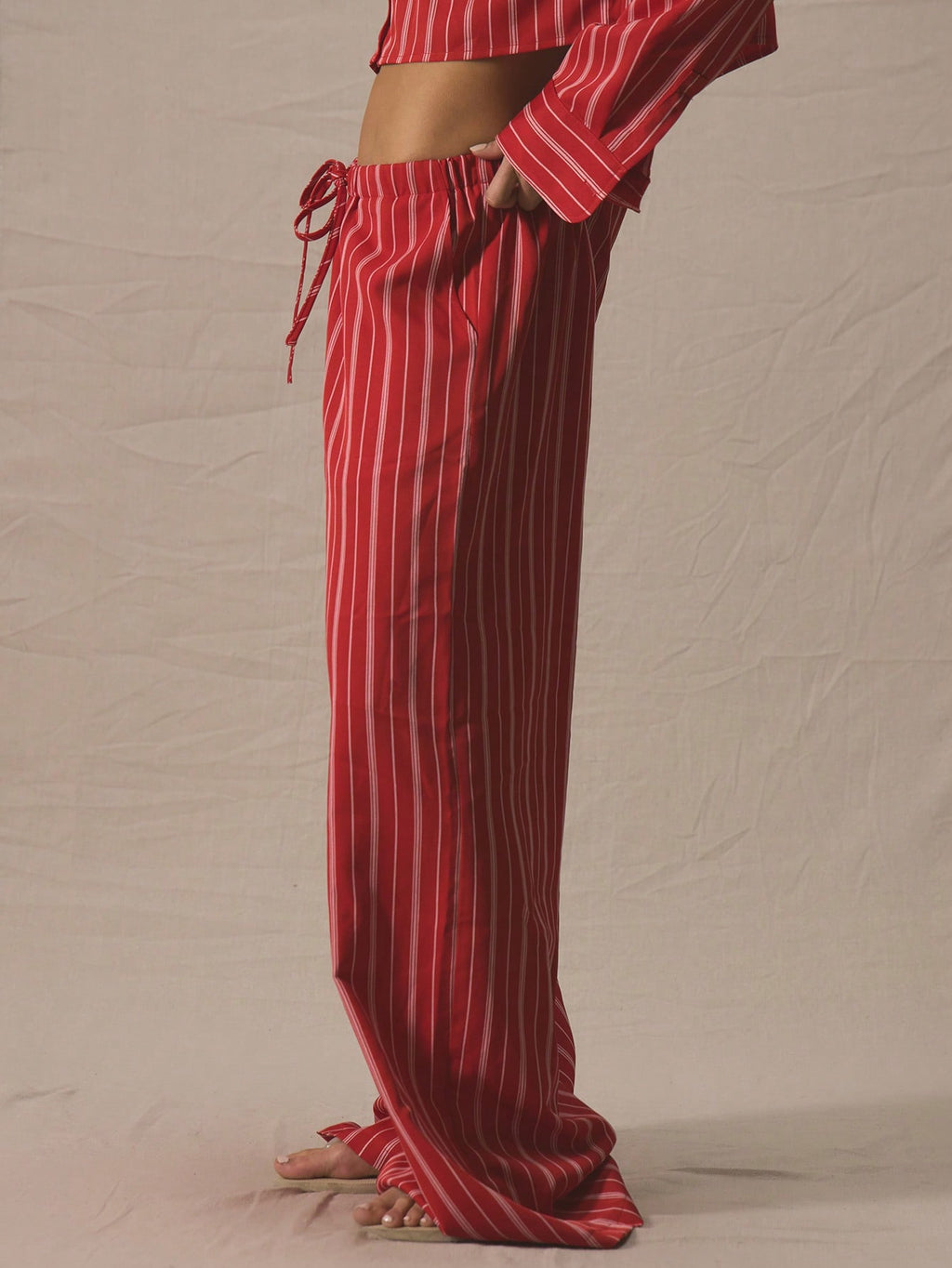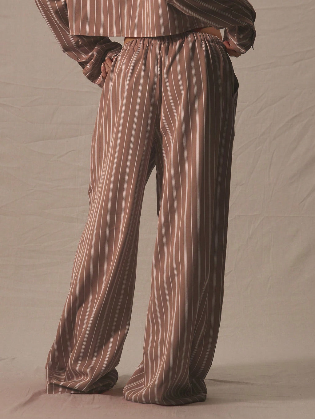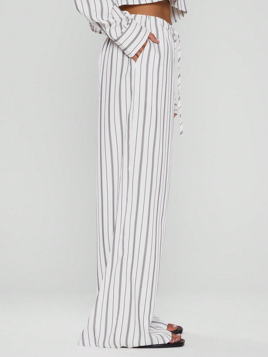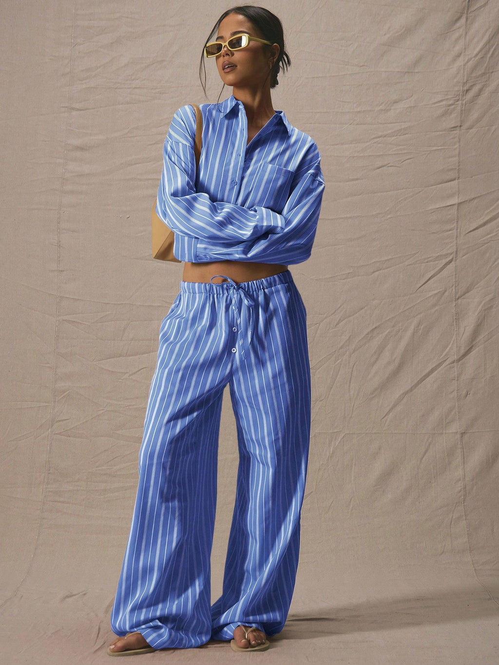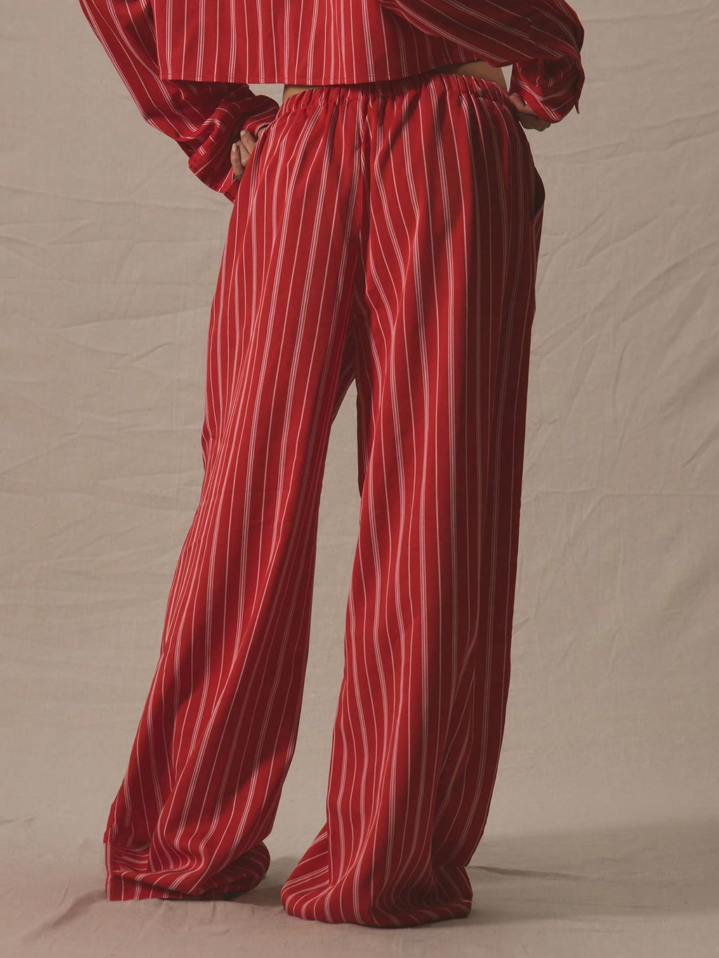 MiuVogue Mid Rise Drawstring Waist Wide Leg Trousers Only Spring Summer Cute Vacation Stripe Elegant, Cute Al Fresco