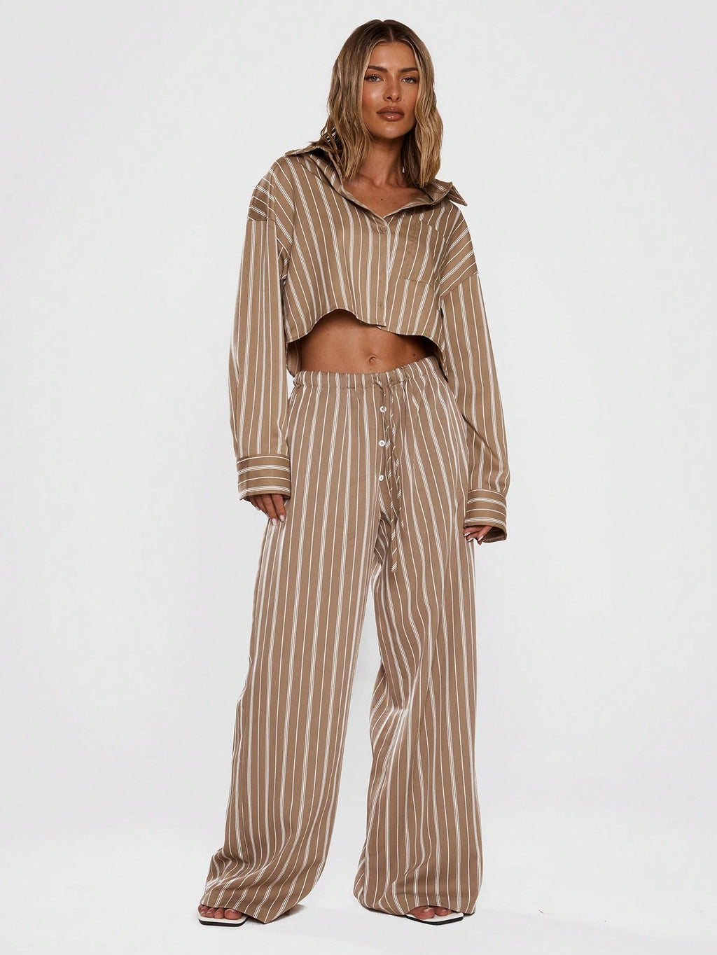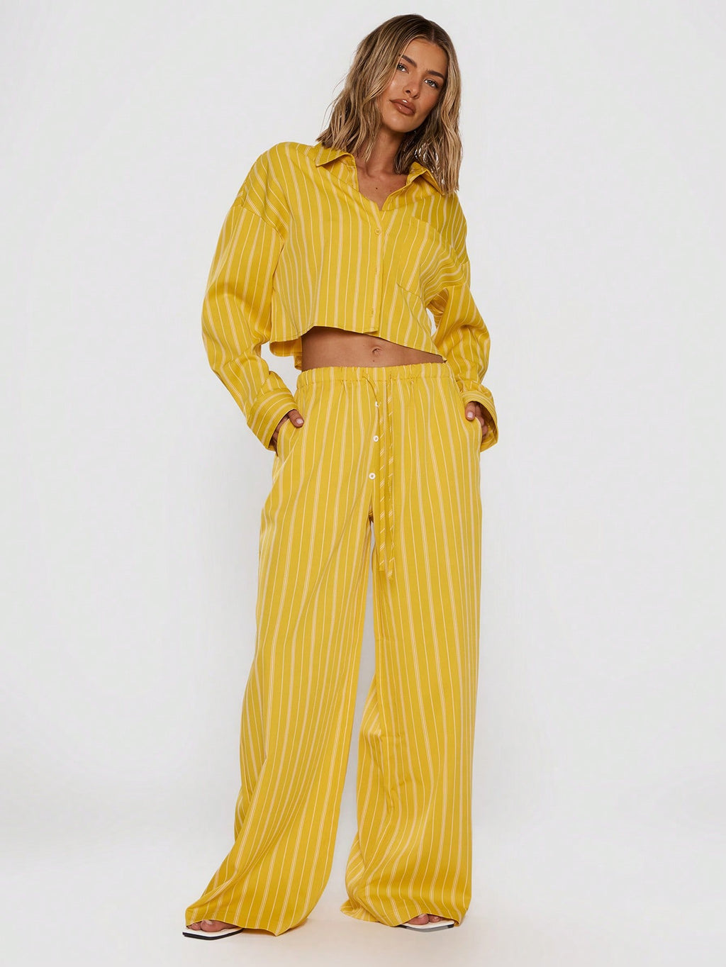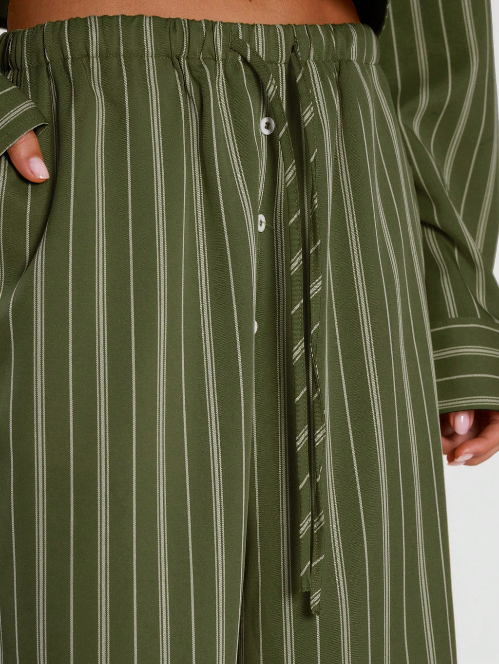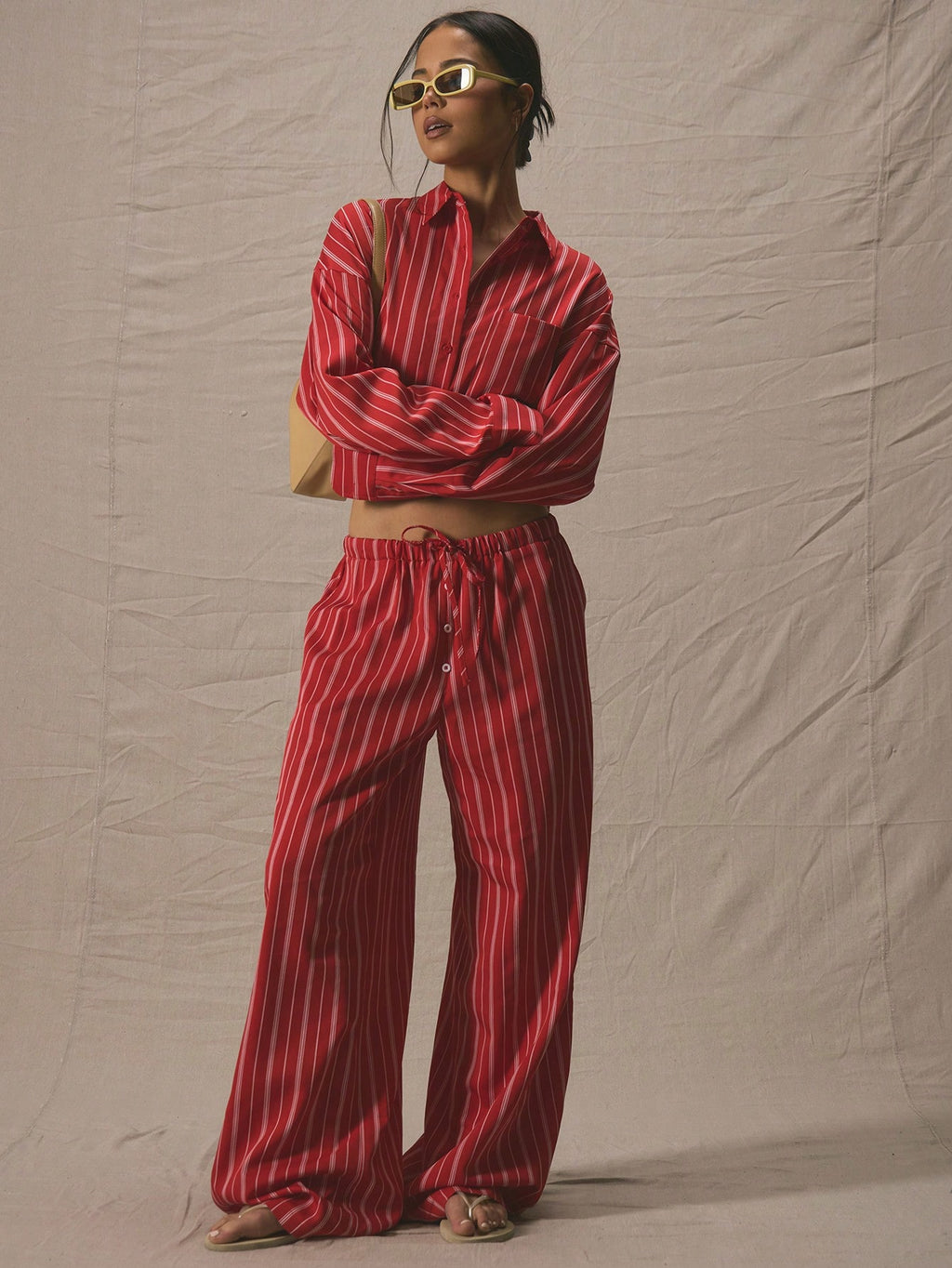 MiuVogue Mid Rise Drawstring Waist Wide Leg Trousers Only Spring Summer Cute Vacation Stripe Elegant, Cute Al Fresco