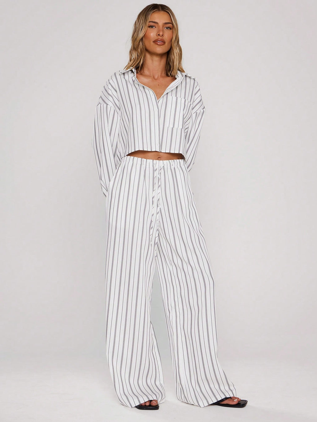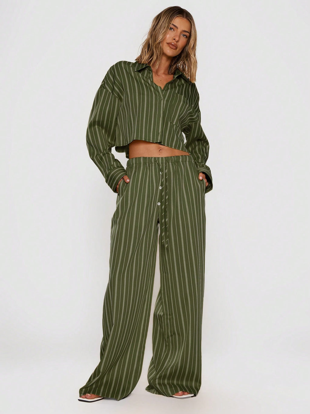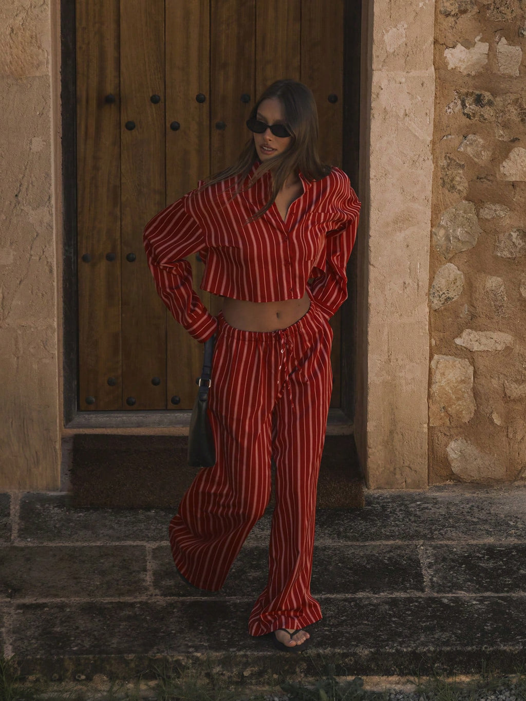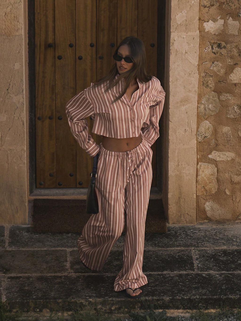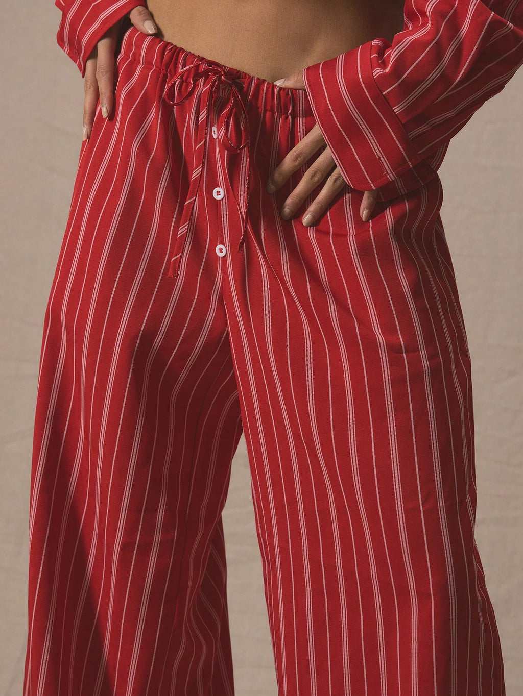 MiuVogue Mid Rise Drawstring Waist Wide Leg Trousers Only Spring Summer Cute Vacation Stripe Elegant, Cute Al Fresco