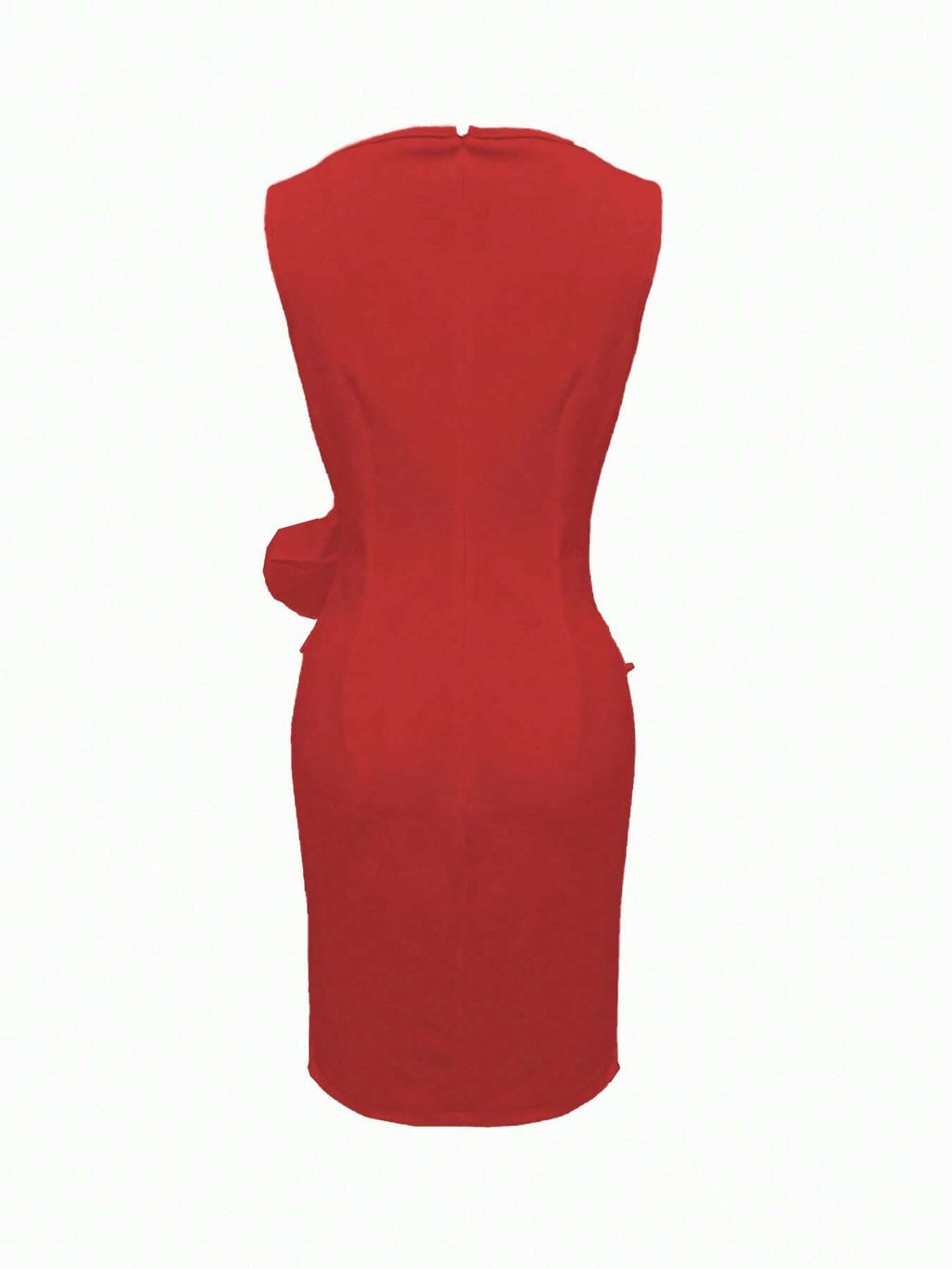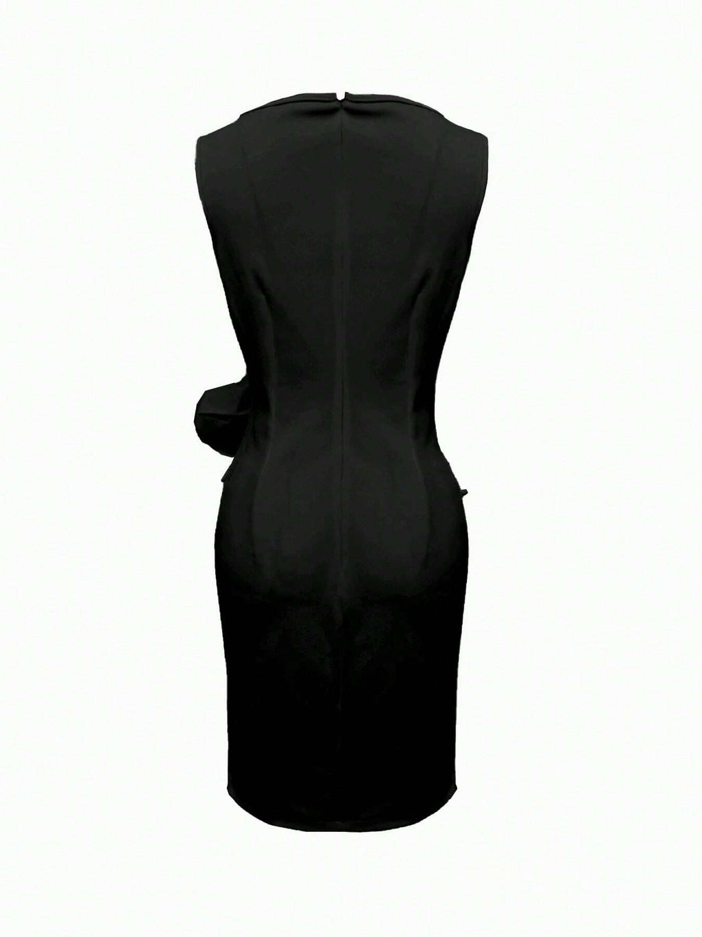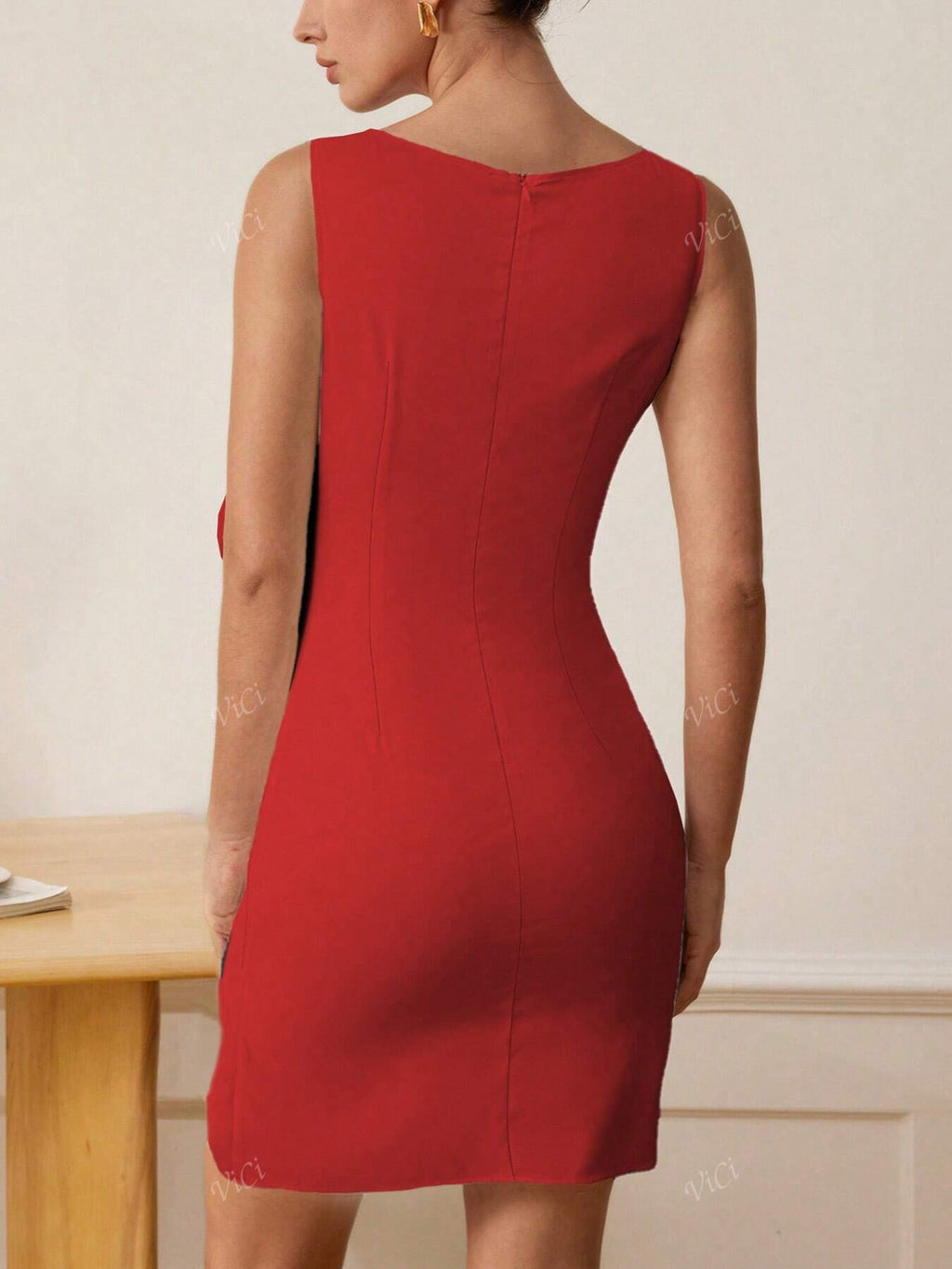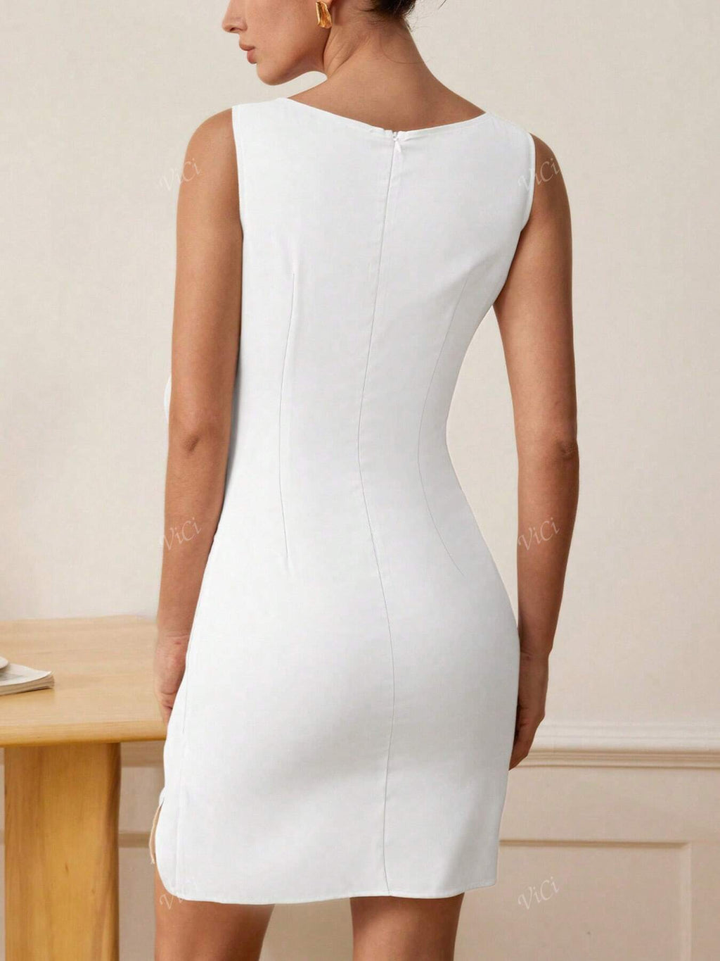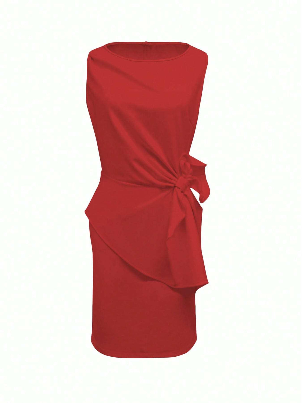 MiuVogue New Arrival Women's Solid Color Bow Decor Round Neck Sleeveless Slit Hem Elegant French Style Bodycon Dress