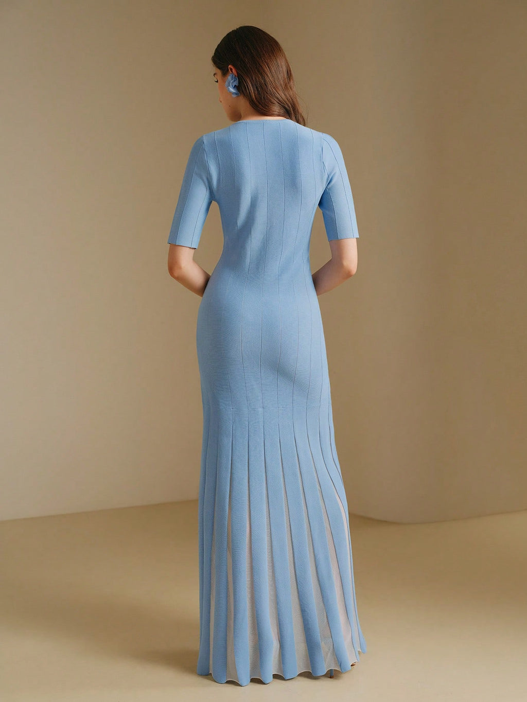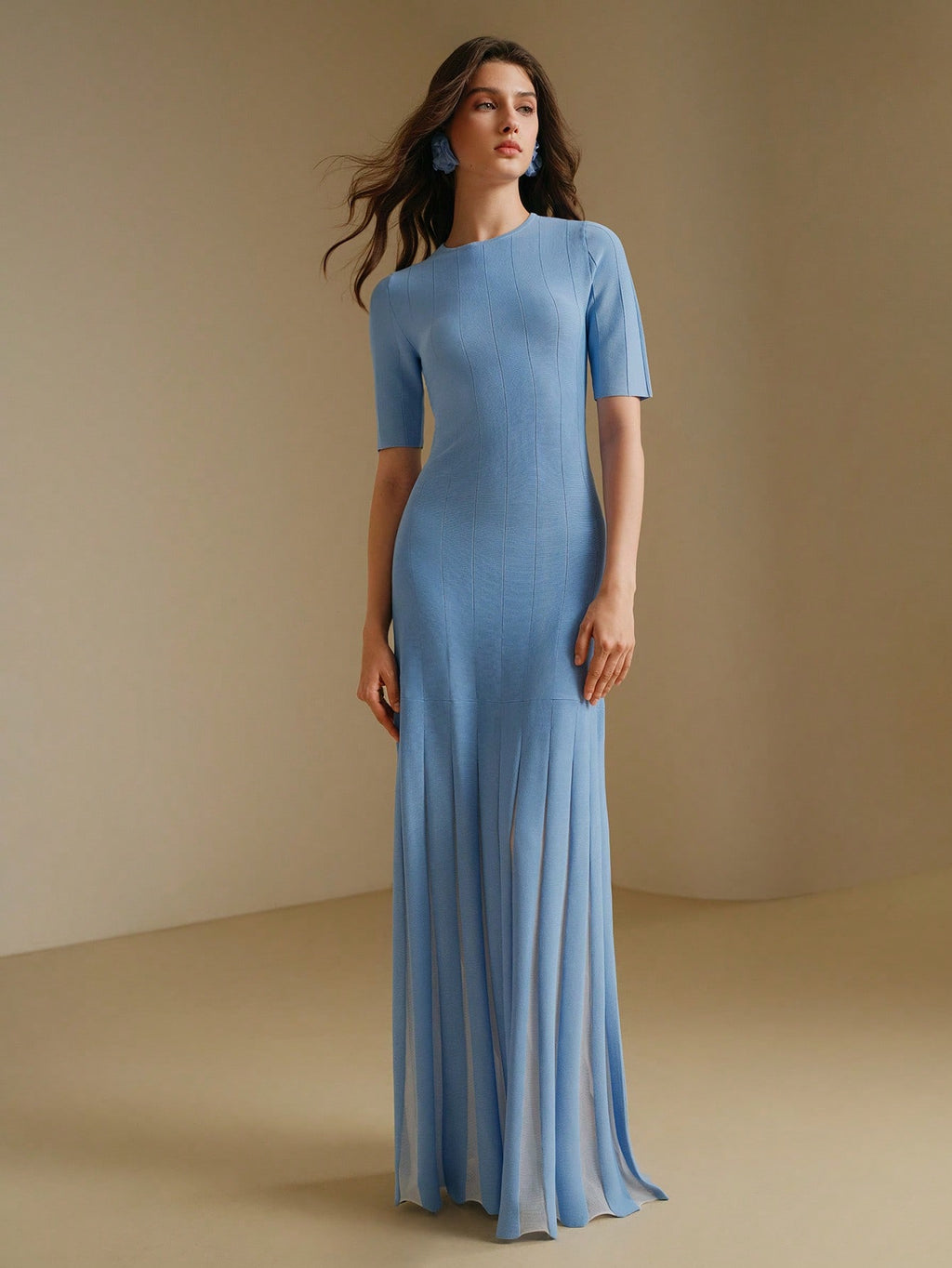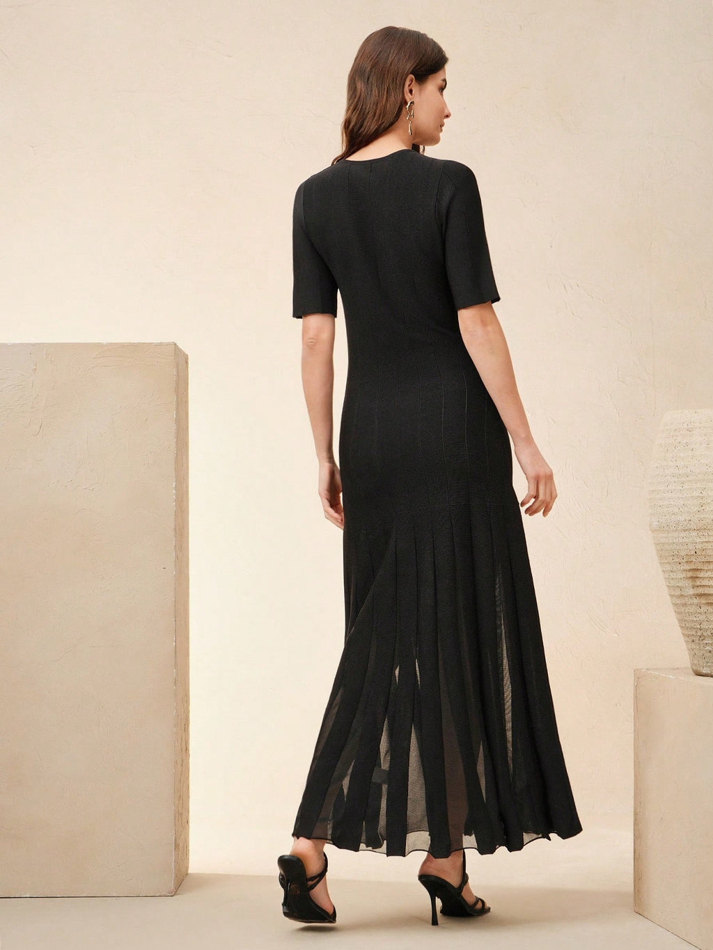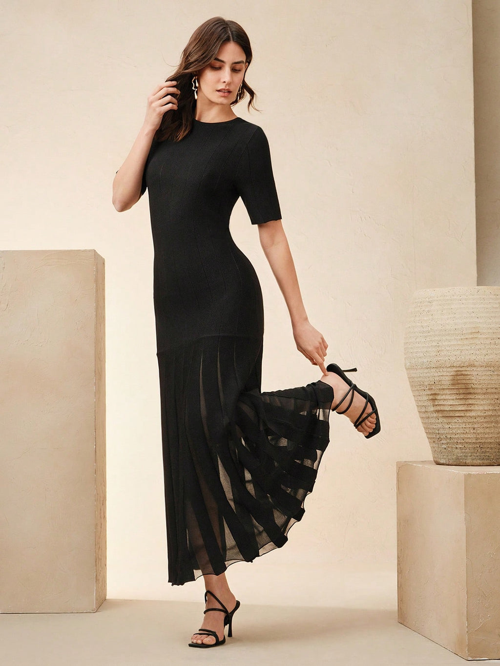 MiuVogue New Design Sense Semi-Sheer Body-Conscious Round Neck Short Sleeve Knit Dress