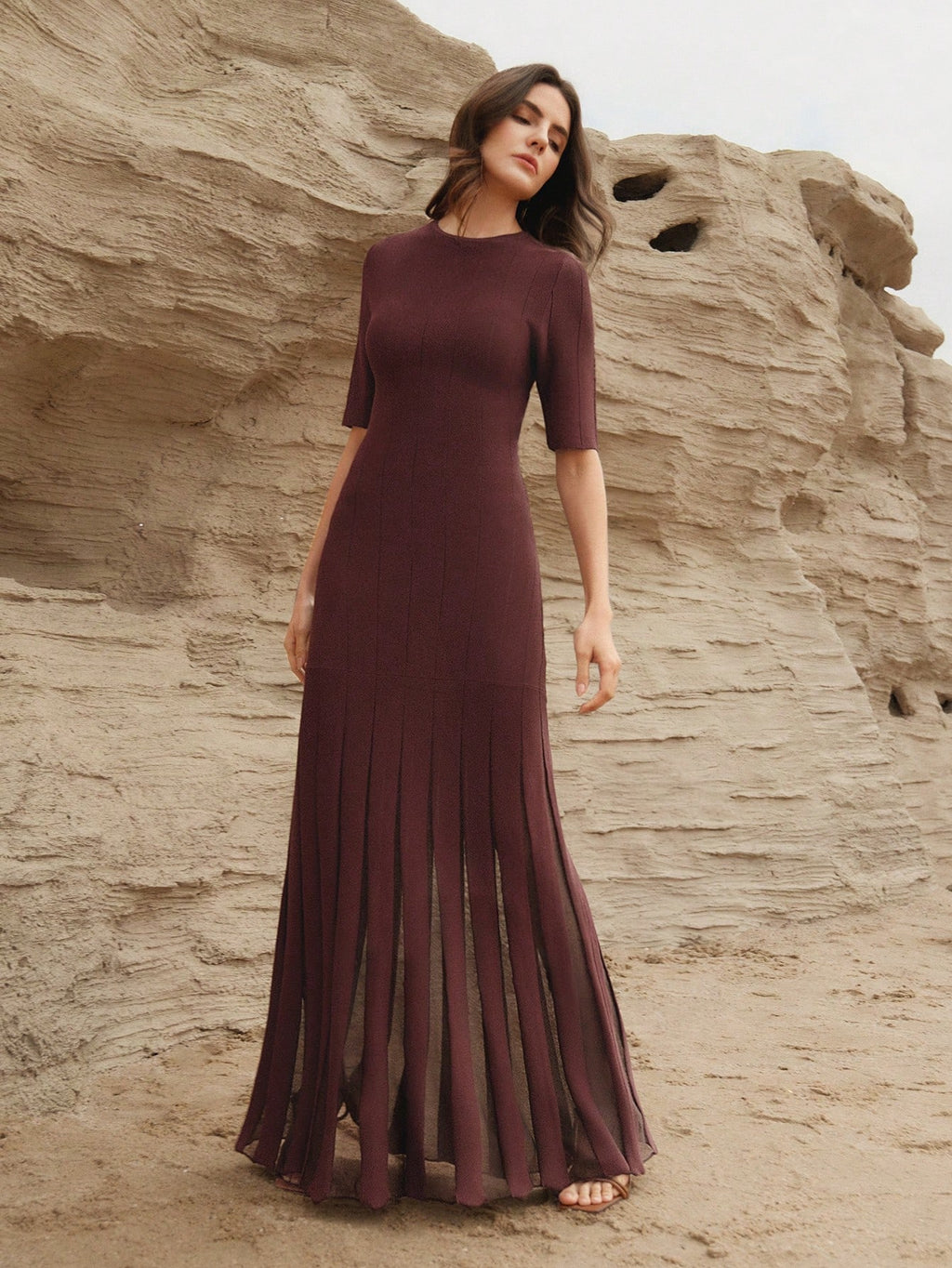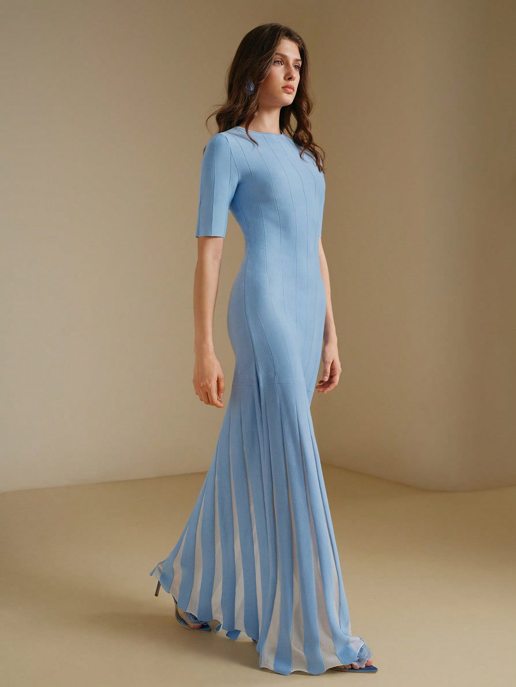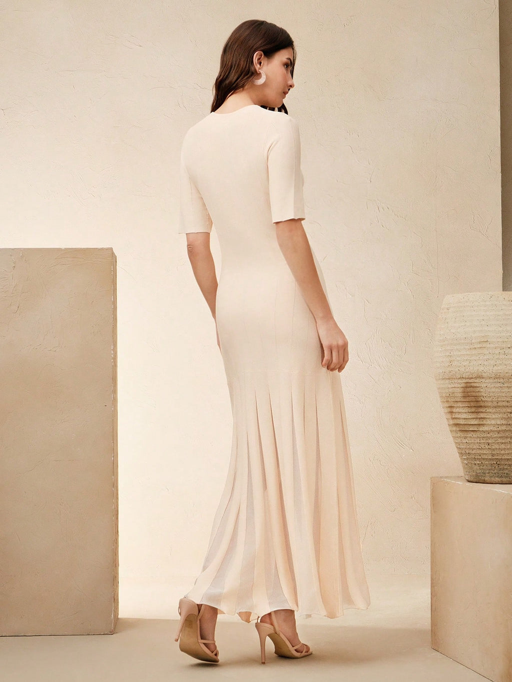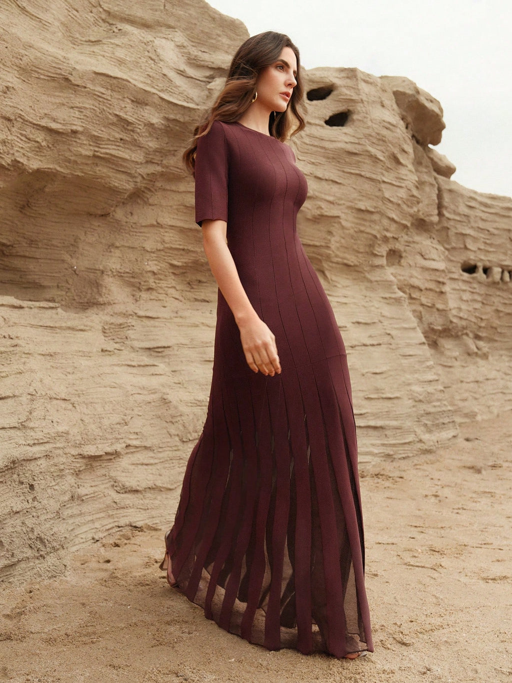 MiuVogue New Design Sense Semi-Sheer Body-Conscious Round Neck Short Sleeve Knit Dress